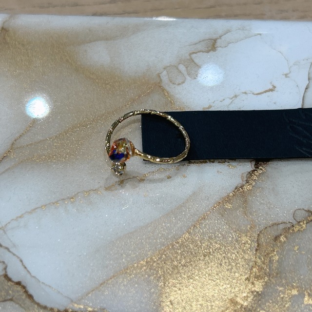**〜サイズ調整可 琉球ガラスk16gpリング オレンジ×ブルー〜** オレンジ×ブルーの琉球ガラスをあしらった美しいリングが登場です!すっきりとしたシルエットが特徴で、普段使いにもぴったりのアクセサリーです。ゴールドベースで大人な印象を与え、指元を華やかに演出し、見る人の目を惹きつけます。 このリングは、自分でサイズ調整が可能なので、お好みのフィット感を大切にしたい方にもおすすめです。自分へのご褒美や、大切な方へのギフトに最適です。琉球の美を感じられる特別なリングで、あなたの魅力を引き立ててください。 作家名 ARIA ※ハンドメイドのため、写真と実物では若干の色味や形状の違いがある場合がございます。予めご了承ください。 #琉球ガラス #リング #サイズ調整可 #ハンドメイド #アクセサリー 琉球ガラスの煌めきを纏ったハンドメイド作品です。あなたの指元に、特別な輝きをもたらすアイテムとしてお迎えください…〜。* ※こちらは全て1点もの作品です。同商品を店頭でもお取り扱いしておりますので、ご購入のタイミングにより売り切れとなる場合がございます。 *ーーーーーーーーーーーーーーーーーーーーーーーー* webに掲載されております 『ご購入の前に』 こちらの投稿をご確認しご購入をお願い致します *ーーーーーーーーーーーーーーーーーーーーーーーー*