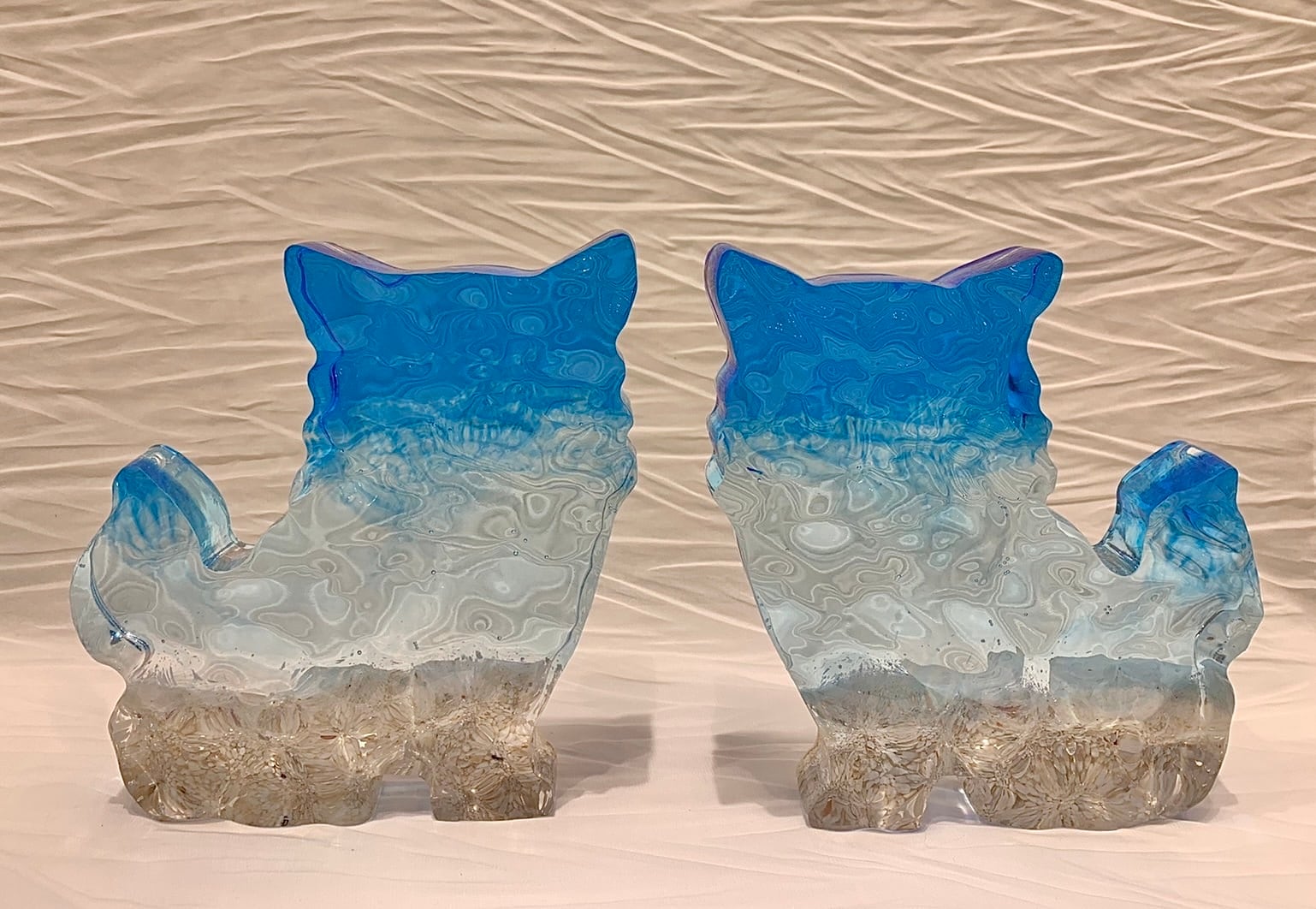 沖縄の海をイメージさせ特殊技術を施した波紋アートシーサー。シーサーは、沖縄で昔から家の魔物の侵入を防ぎ幸福をもたらすアイテムとして親しまれています。オスとメスのペアで飾ることが一般的です。
