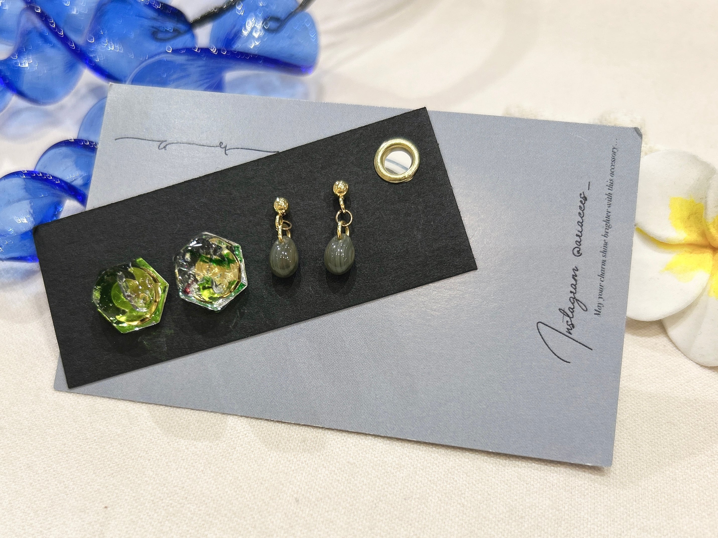 琉球ガラスとチェコビーズを組み合わせた、魅力あふれるピアスが登場しました!沖縄の鮮やかな色合いを持つ琉球ガラスは、光を受けて美しく輝き、あなたの耳元を華やかに彩ります。チェコビーズとのコラボレーションにより、独特な質感と深みが感じられ、個性的なスタイルを楽しむことができます。このピアスはサージカルピアスを使用しており、敏感肌の方にも安心してご利用いただけるデザインとなっています。