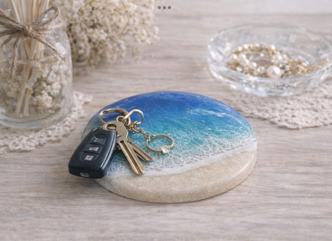 【送料込】波アートコースター 1枚入り(エメラルドグリーン)