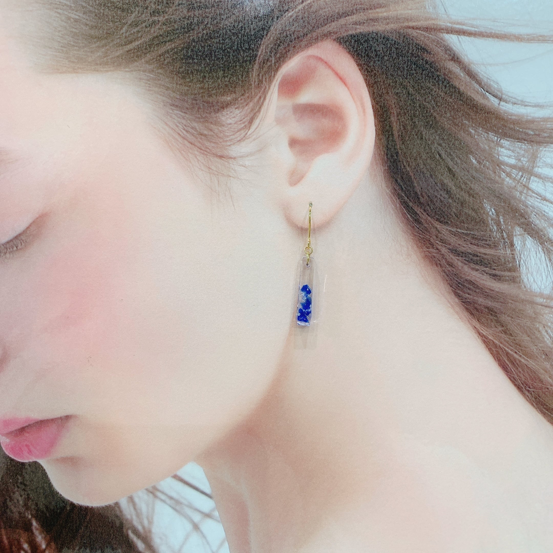 ブルーの琉球ガラスのカケラを使用した素敵なピアスが登場です!