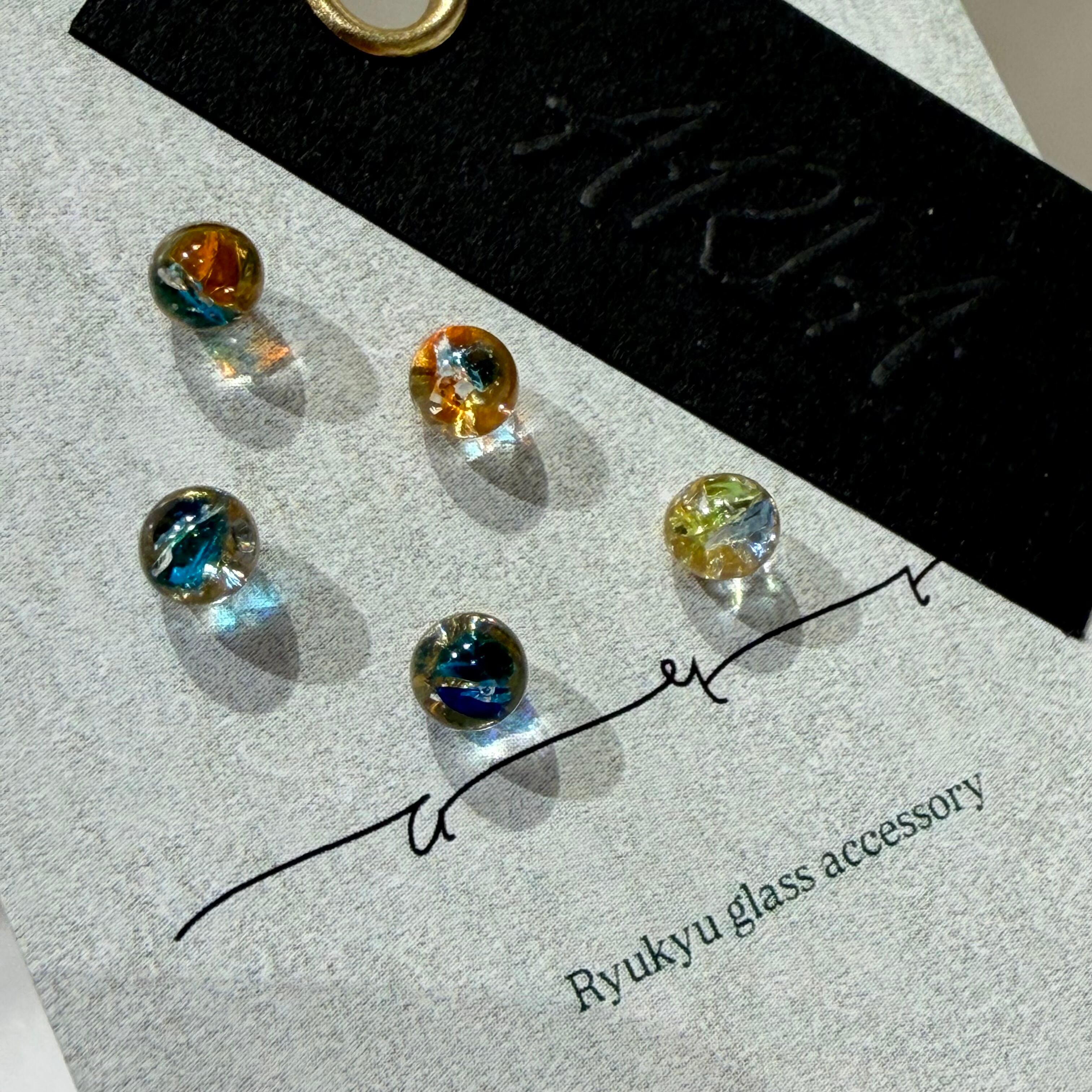 極小ながらも存在感のあるピアスが登場しました。琉球ガラスのカケラを使用!