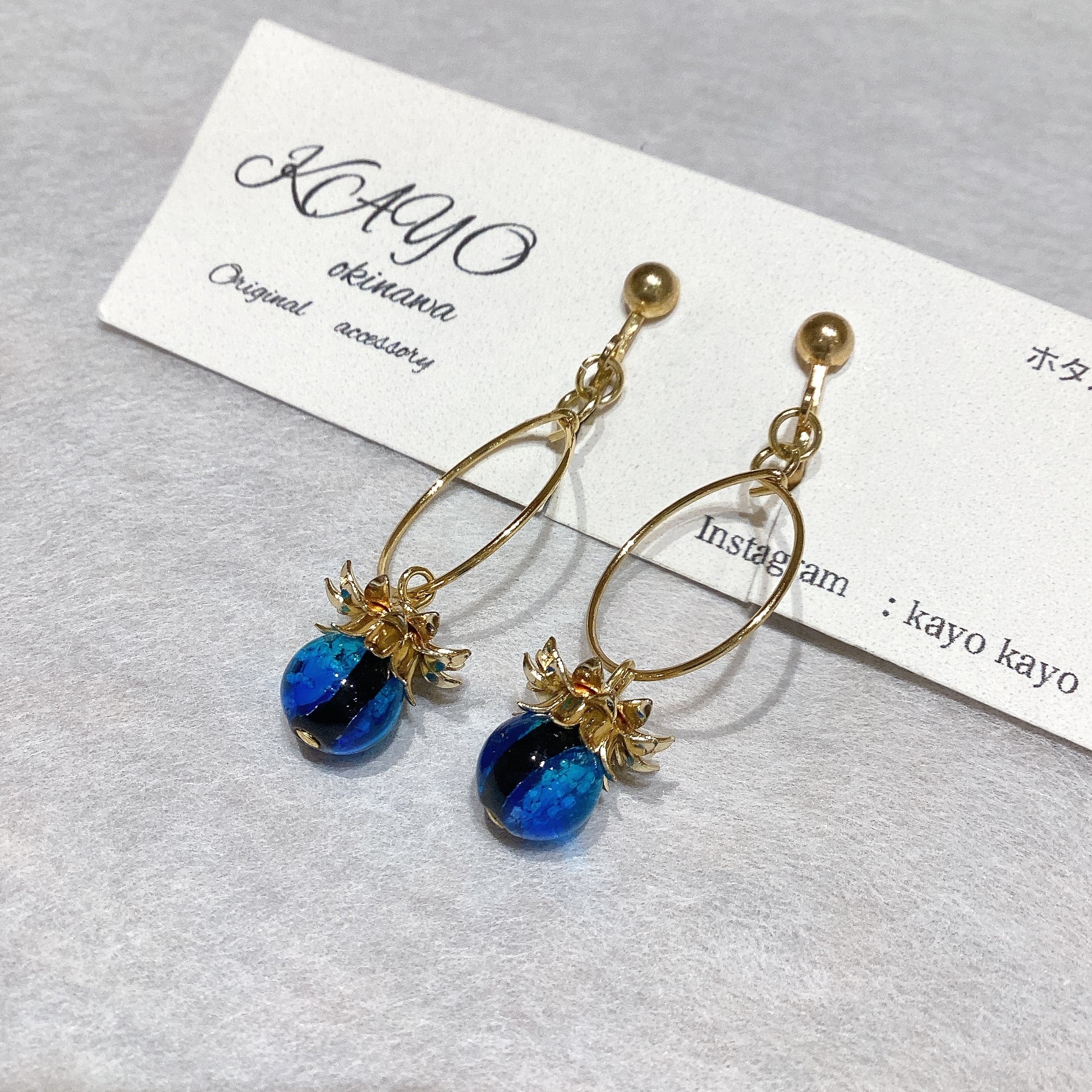 上品に揺れるホタルガラスの輝きが耳元を華やかに彩ってくれます。グラデーションに煌めく美しいデザインは日常使いから特別なシーンまでも幅広くお使いいただけます。