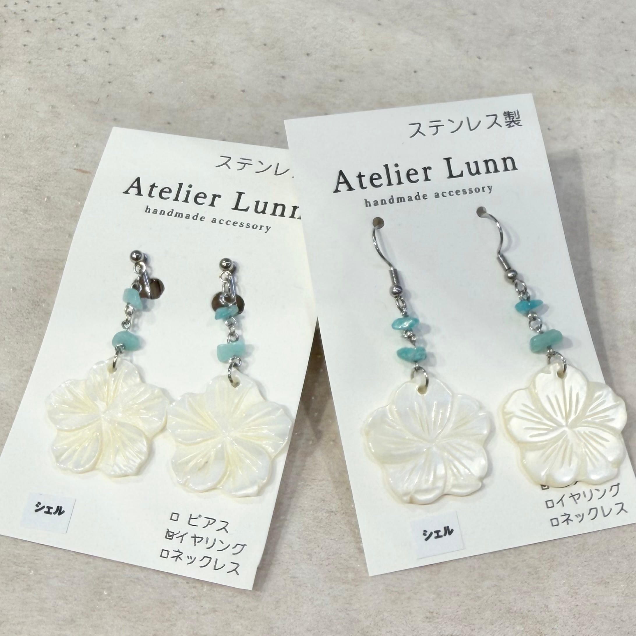 シェル ハイビスカス ピアス/イヤリング(T-A73-6) (T-A73-8)
