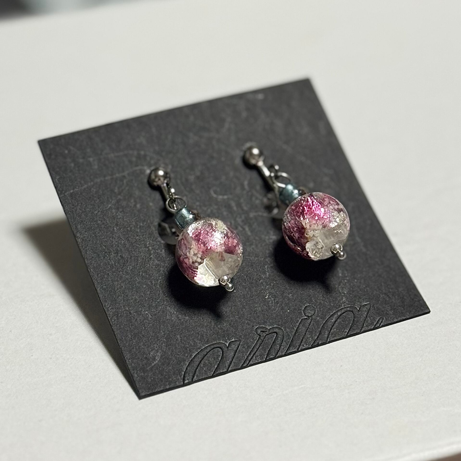 美しいピンクのホタルガラスを使用した、ロマンティックで上品なイヤリングが登場しました!
