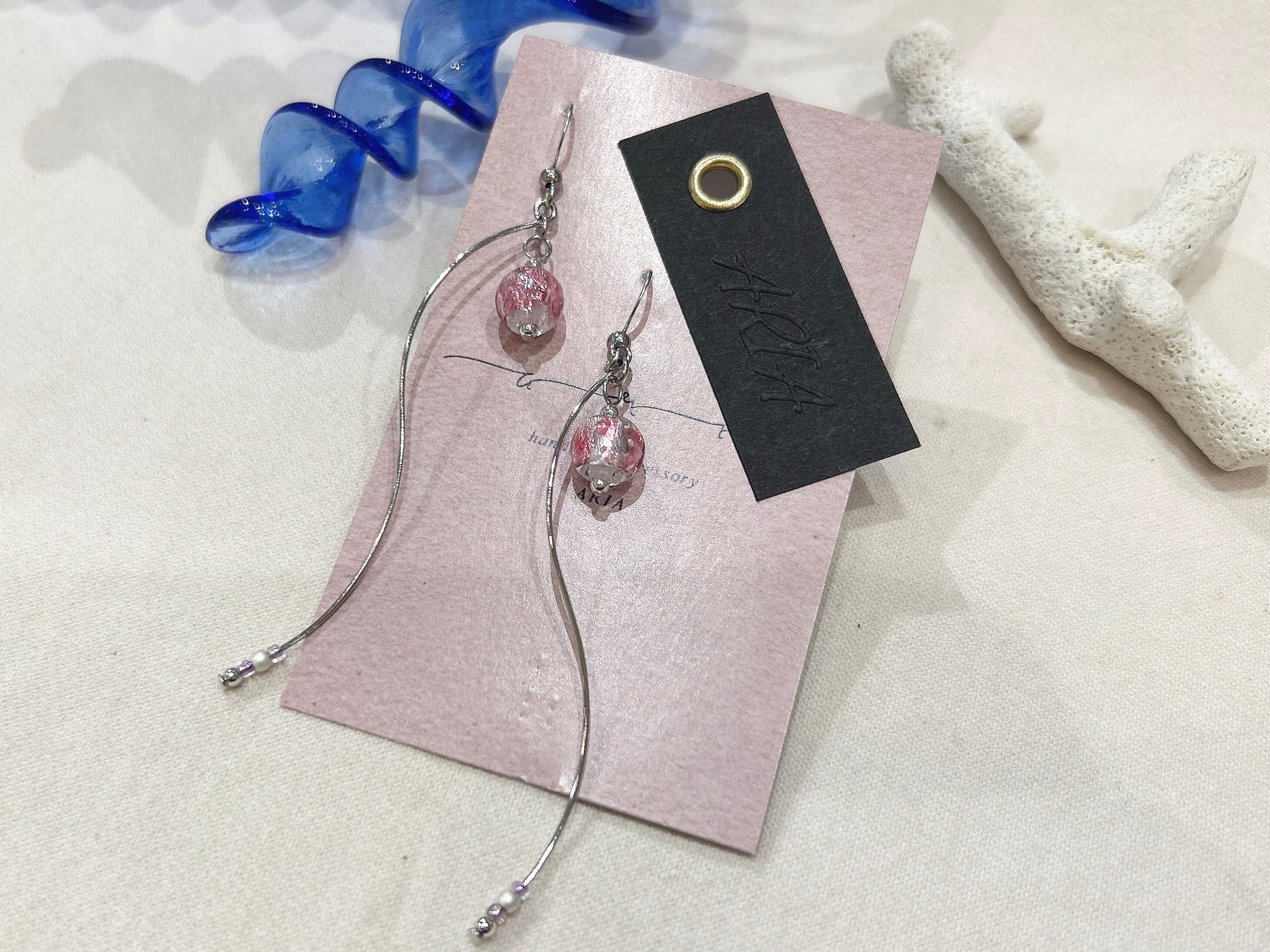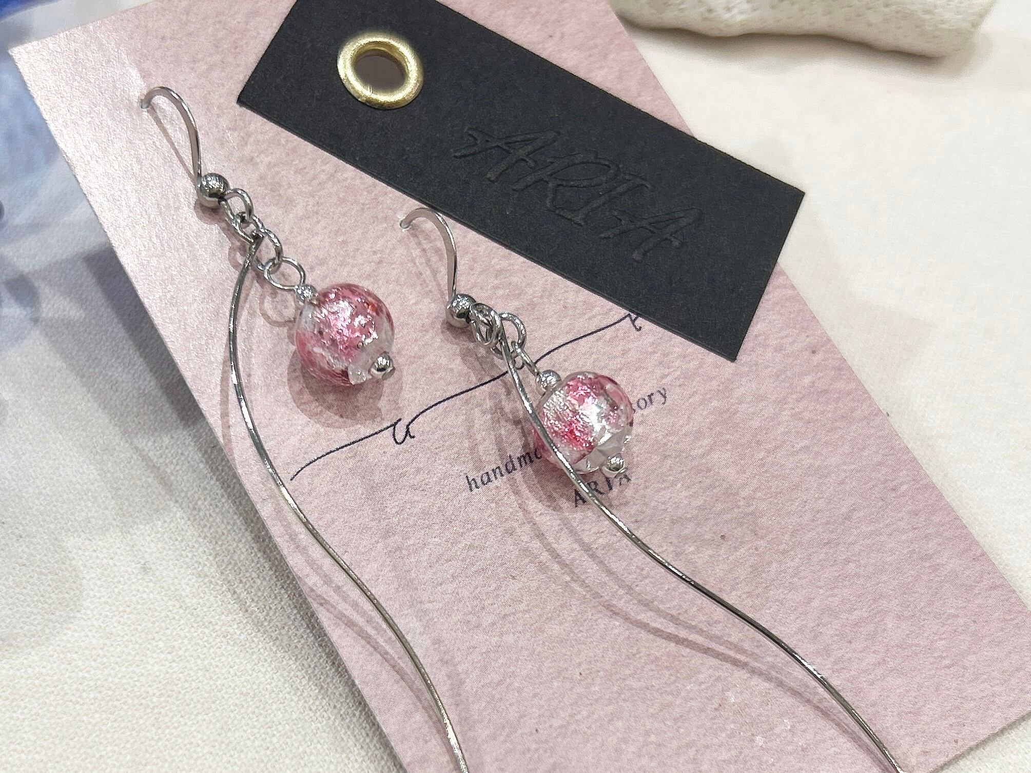 美しいピンクのホタルガラスを用いたサージカルピアスが登場しました!耳元で揺れるこのピアスは、まるで柔らかな陽射しを受けた花びらのような、優しい色合いが特徴です。ホタルガラスならではの透明感と光の反射が、あなたの魅力を引き立て、特別な瞬間を演出します。