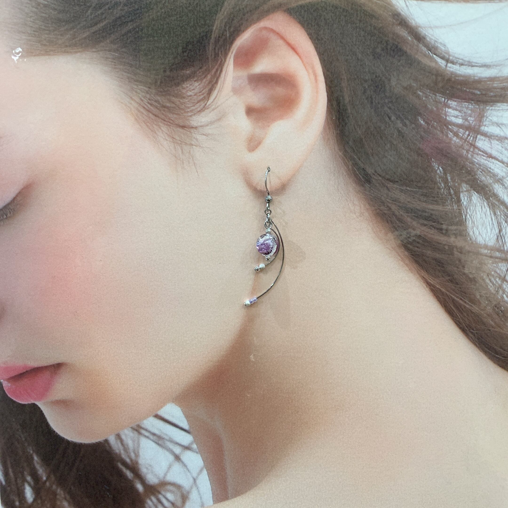 #ホタルガラスピアス #パープルピアス #サージカルステンレス #ハンドメイド #耳飾り