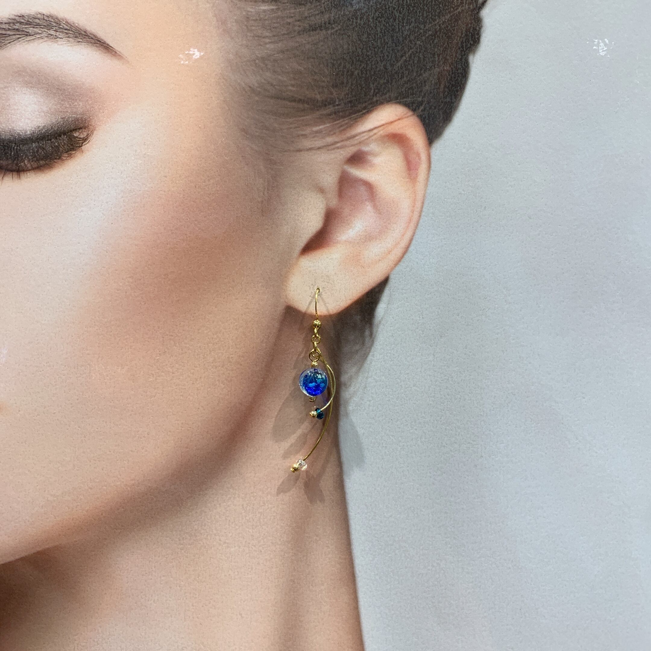 幻想的な光を耳元に運ぶ、ホタルガラスのピアスが登場しました!深い青色のホタルガラスが、まるで夜空に輝く星のような美しさを演出し、軽やかに揺れ動く姿が魅力的です。サージカルステンレスを使用しているため、デイリーユースにも最適で、肌に優しく安心してご利用いただけます。