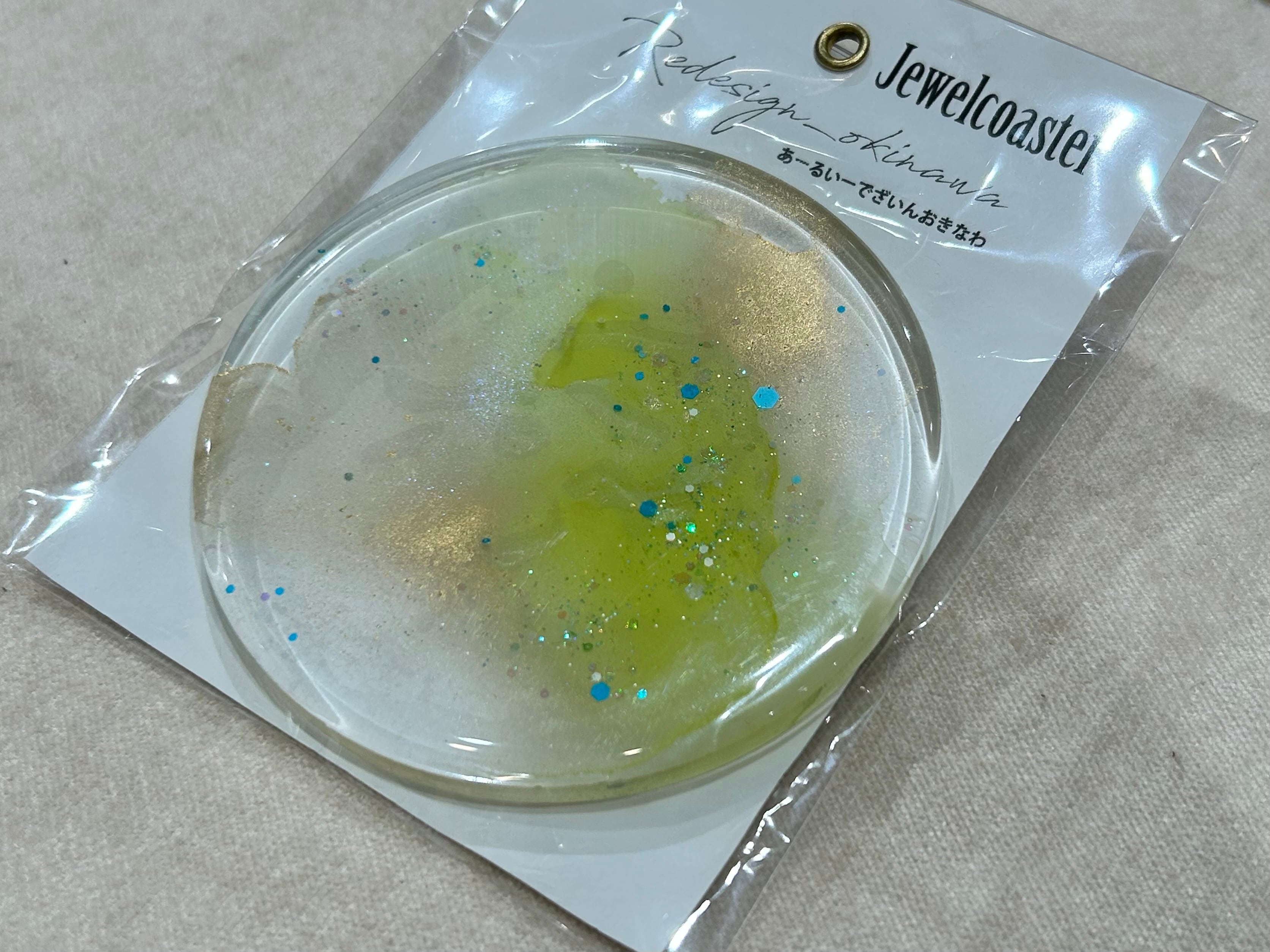 黄色ジュエルコースターラメは、おしゃれで洗練されたデザインが特徴のアイテムです。キラキラと輝くラメが、飲み物を引き立てるだけでなく、テーブル全体に華やかな雰囲気を演出します。特別な場面や日常のひとときを格上げしてくれる、魅力的なコースターです。