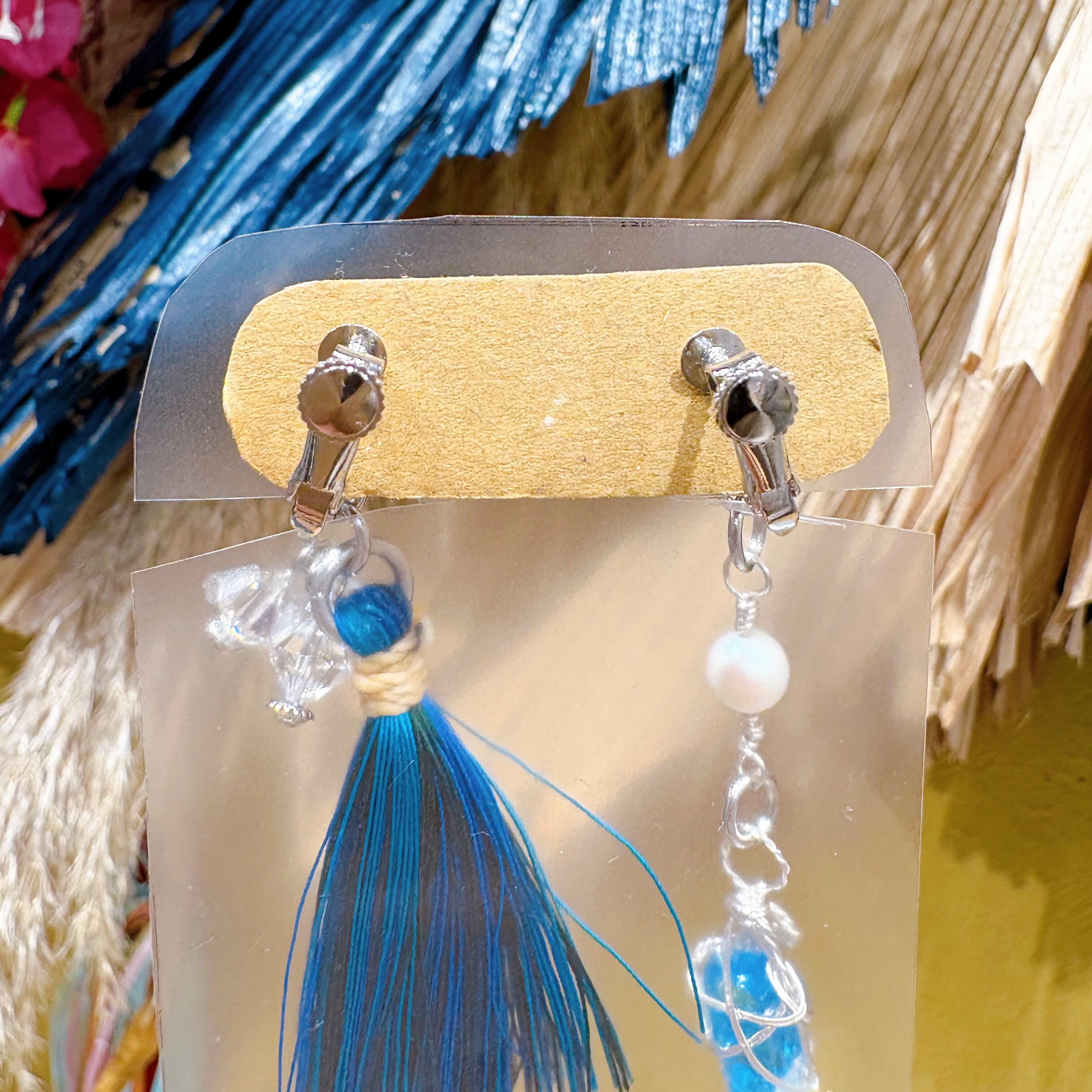琉球ガラスの美しいイヤリングは、鮮やかな青色が特徴的で、まるで透明な海のさざ波を思わせるデザインです。ひとつひとつ手作りで仕上げられたこのアクセサリーは、あなたの耳元を華やかに彩り、特別な瞬間を演出します!シルバーの輝きがガラスの色合いを引き立て、いつでも魅力的な存在感を放ちます。