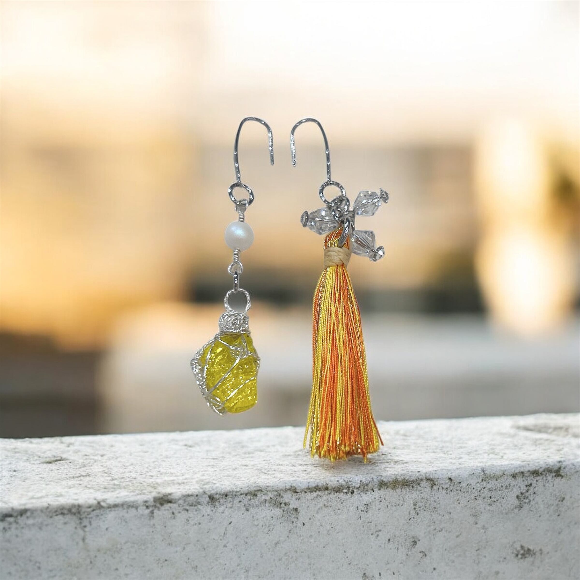 琉球ガラスの美しさを感じさせるピアスは、鮮やかなオレンジと黄色が華やかな印象を与えるデザインです。手作りで仕上げられたこのアクセサリーは、個性豊かで、耳元を明るく彩り、特別な瞬間を演出します!シルバーのパーツがガラスの色合いを引き立て、日常のコーディネートに華を添えます。