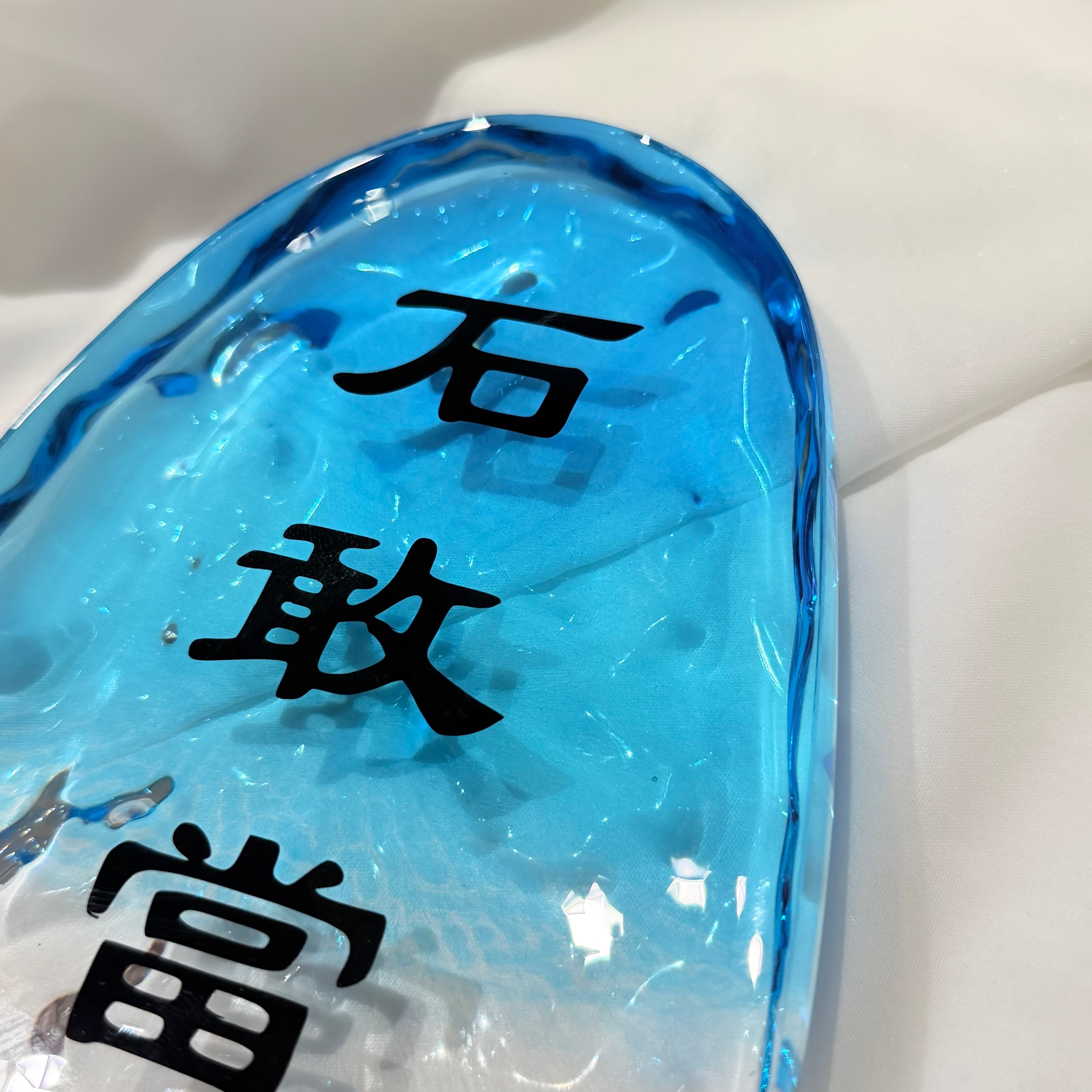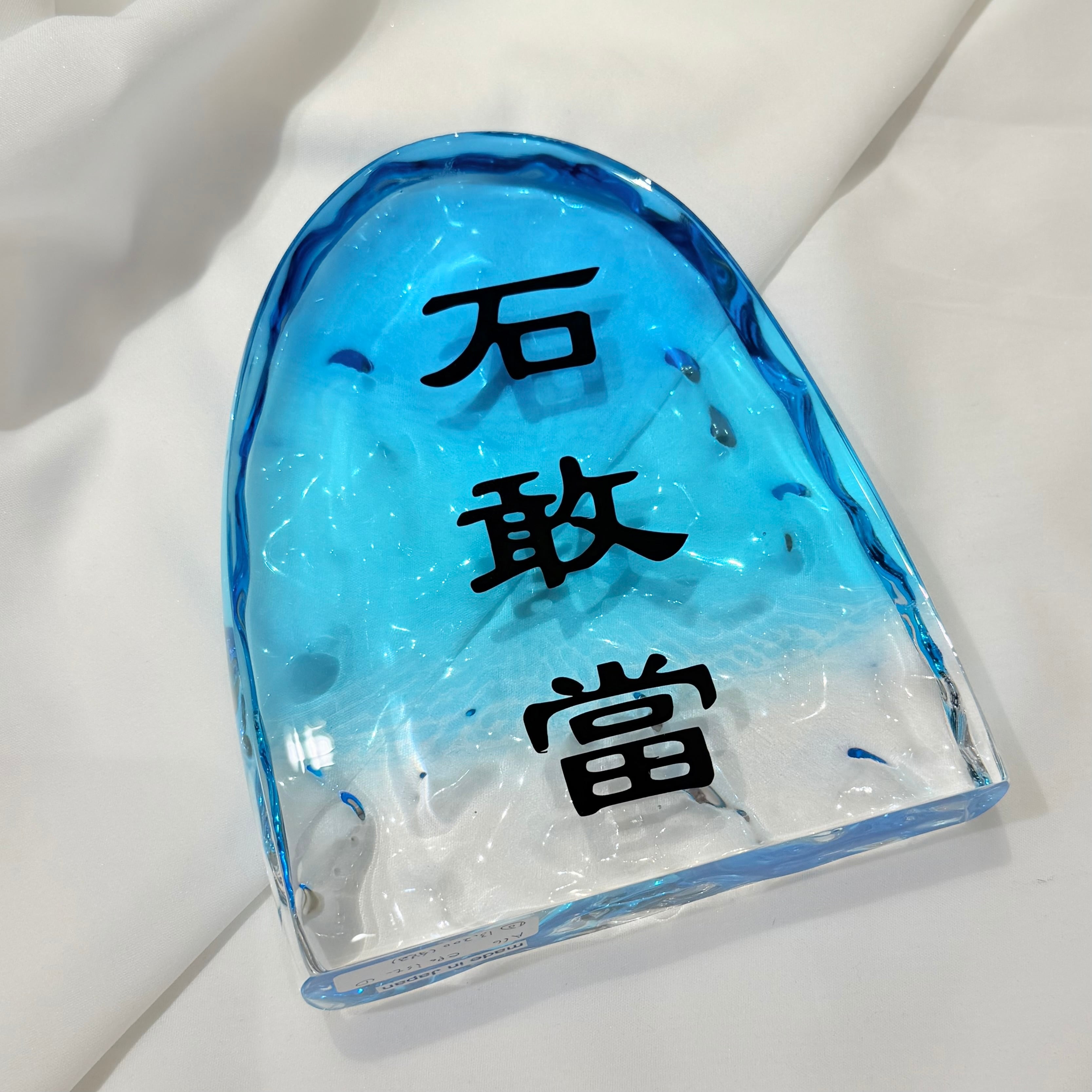 沖縄の自然を感じさせる波紋アート石敢當は、まるで海の波が寄せては返すような凹凸と幻想的な色合いが特徴です。見るたびに沖縄の風景を思い出し日常に彩りを加えてくれます。