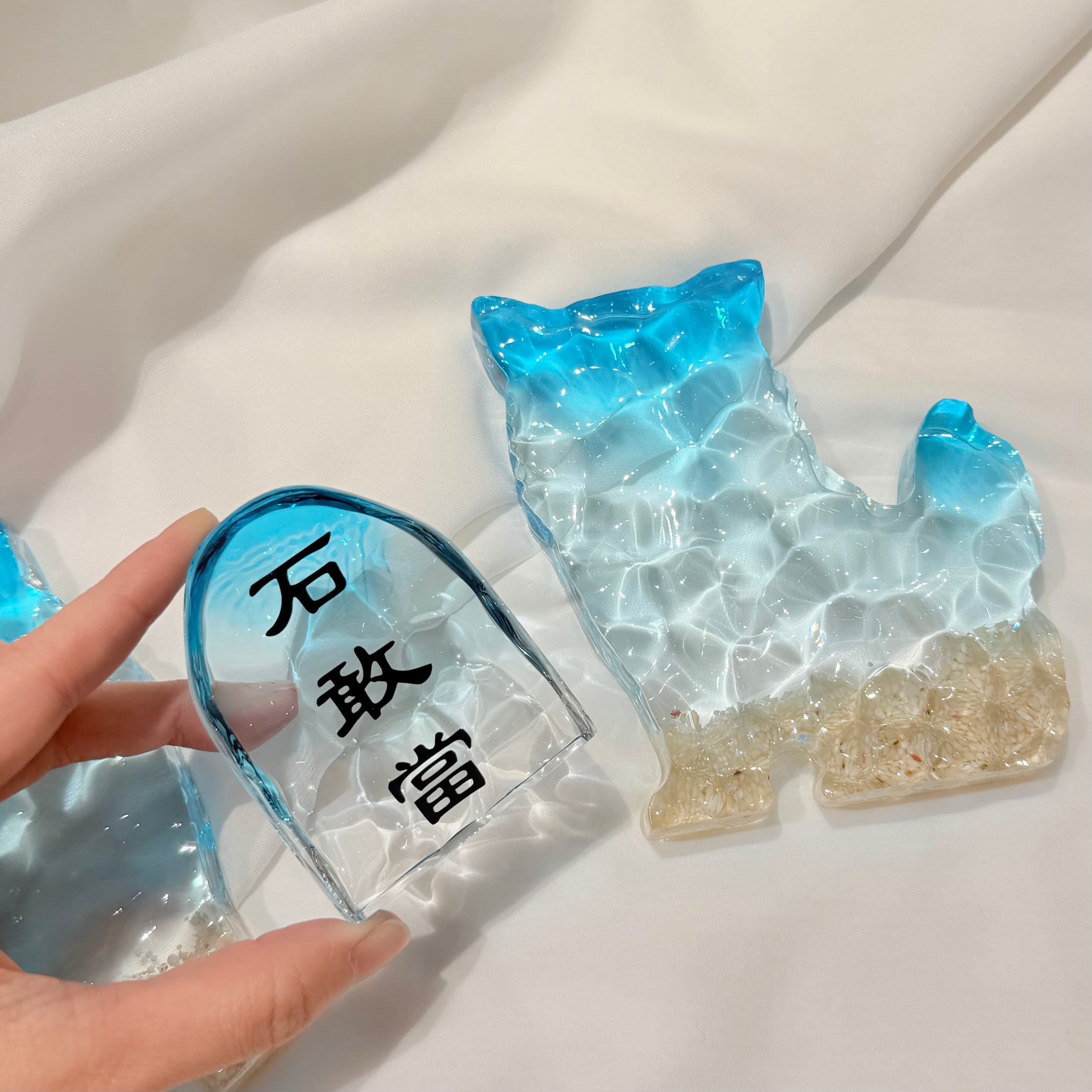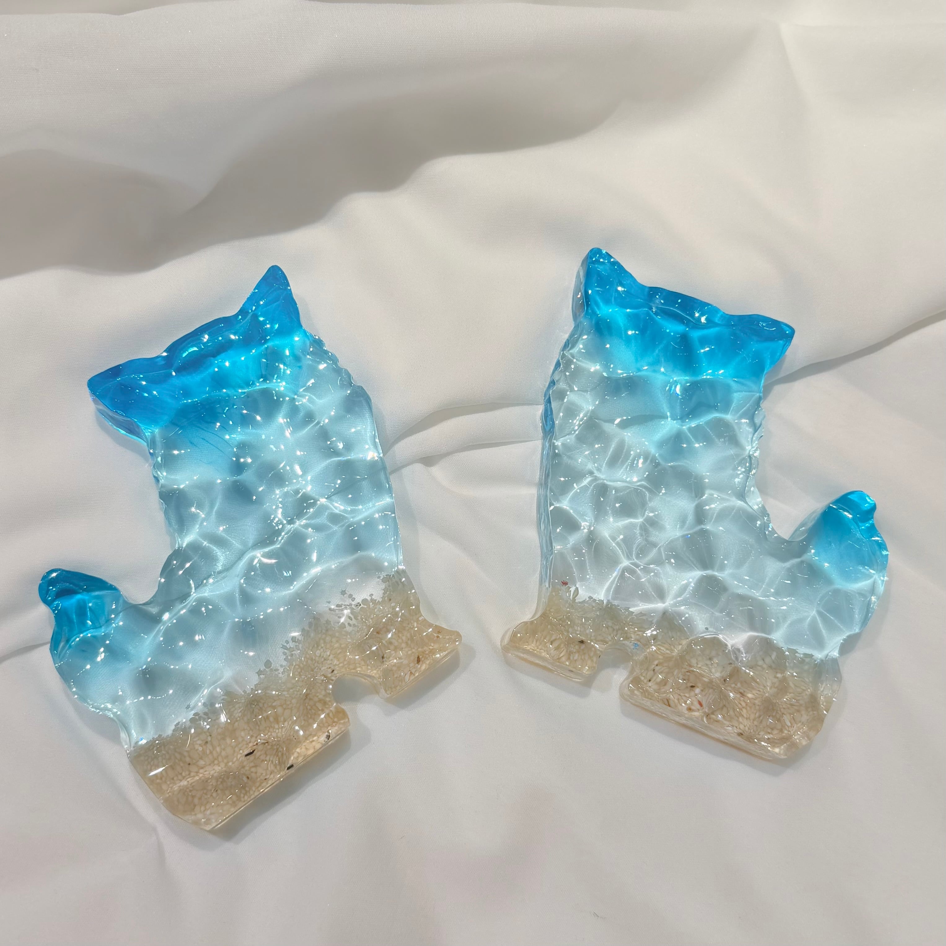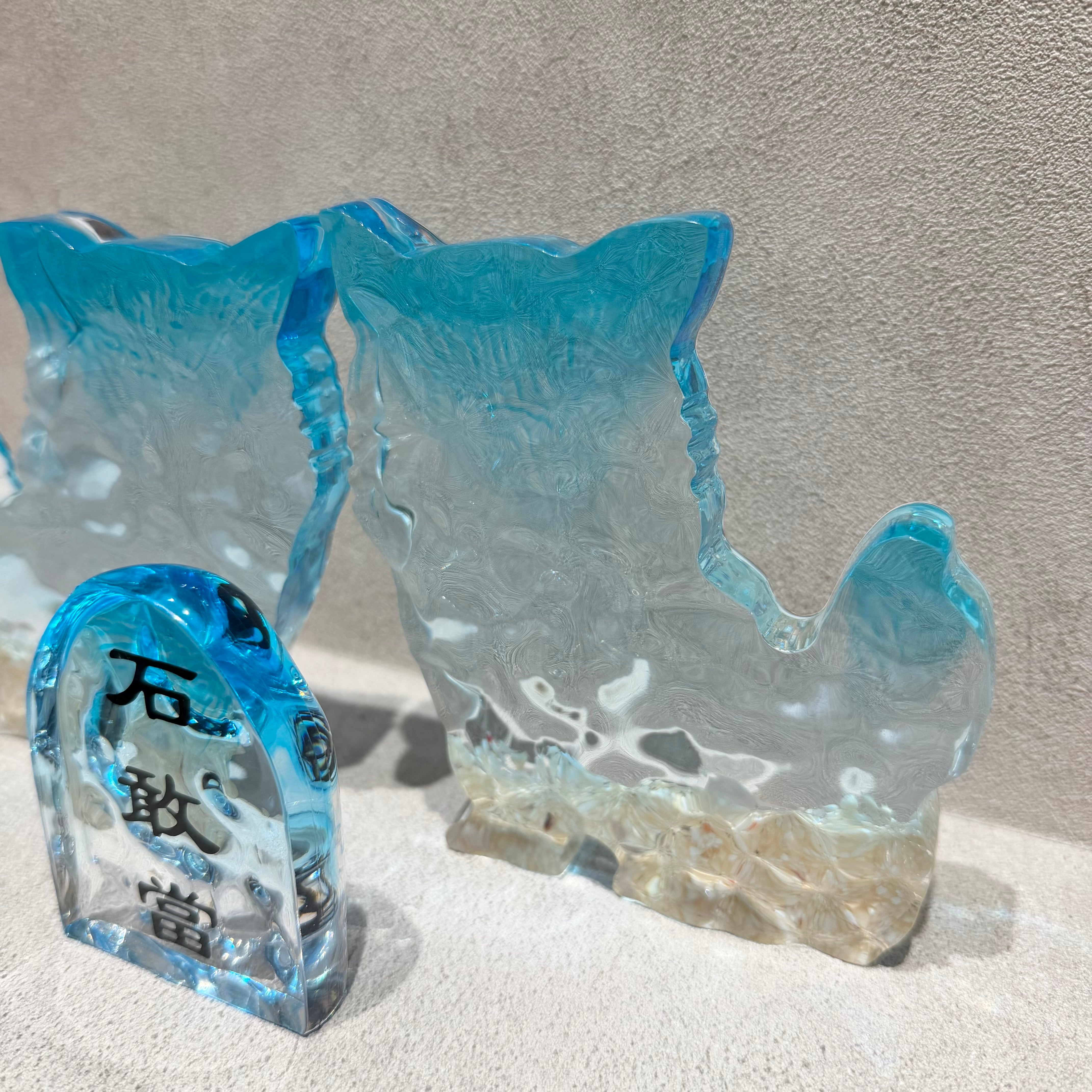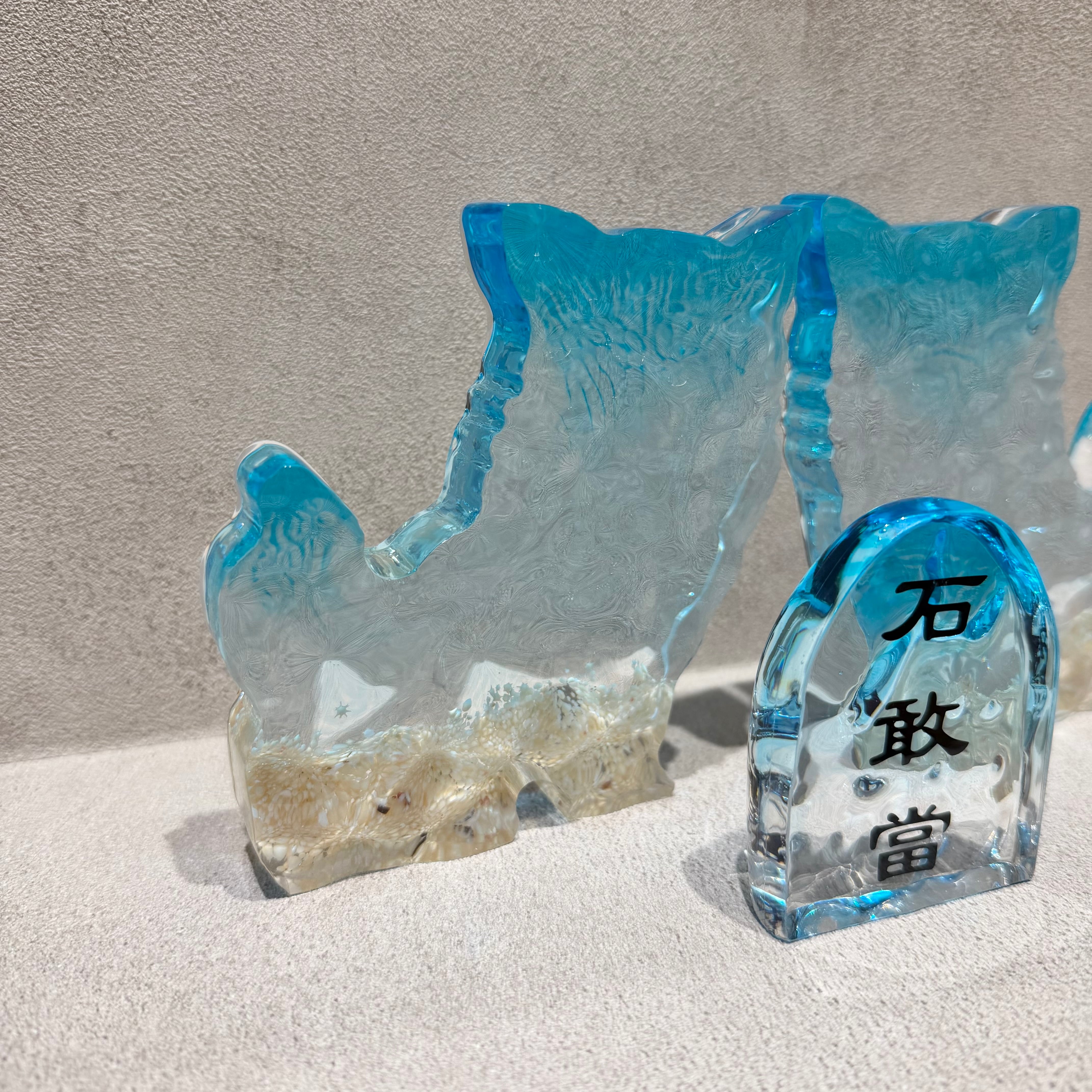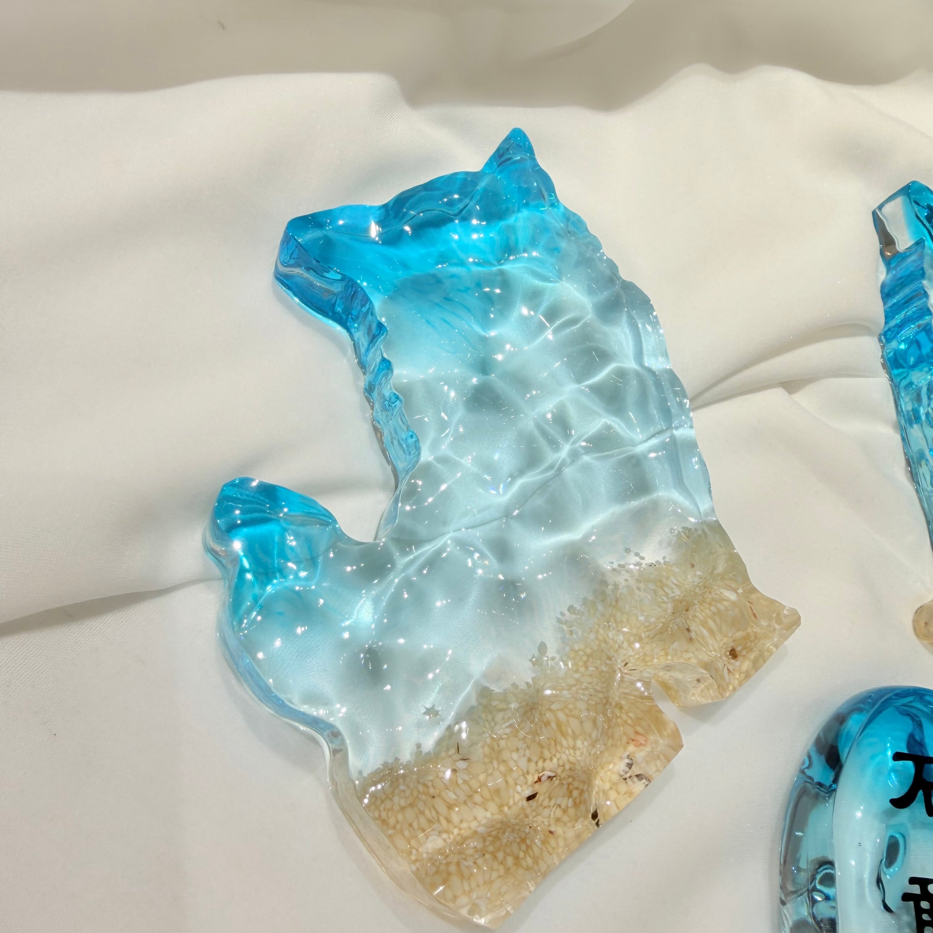 表面の凹凸はまるで本物の海のような立体感を表現。透き通るシーサーは壁の色味に合わせて表情を変えます。重みがあり、しっかりとしたレジン加工で耐久性にも優れています。