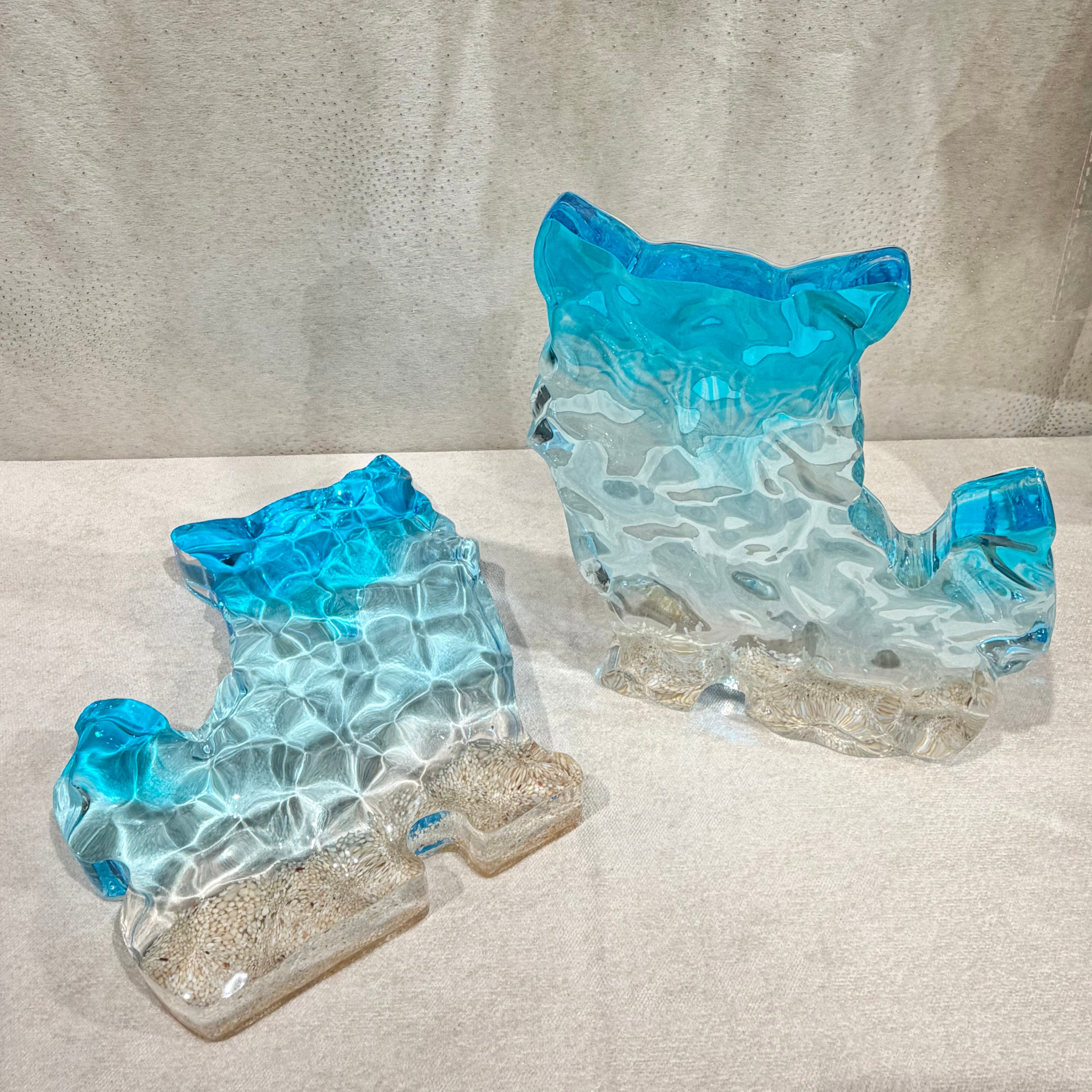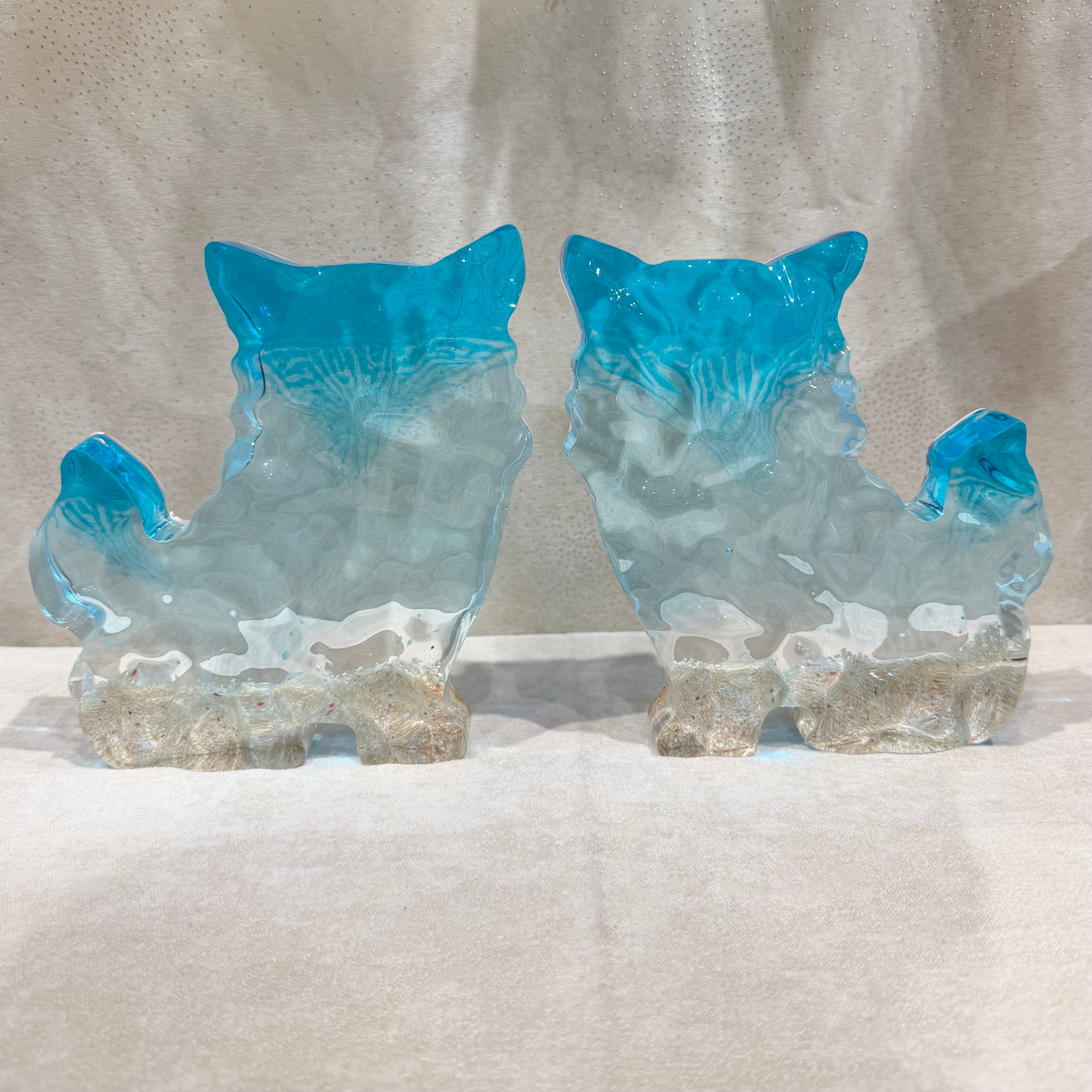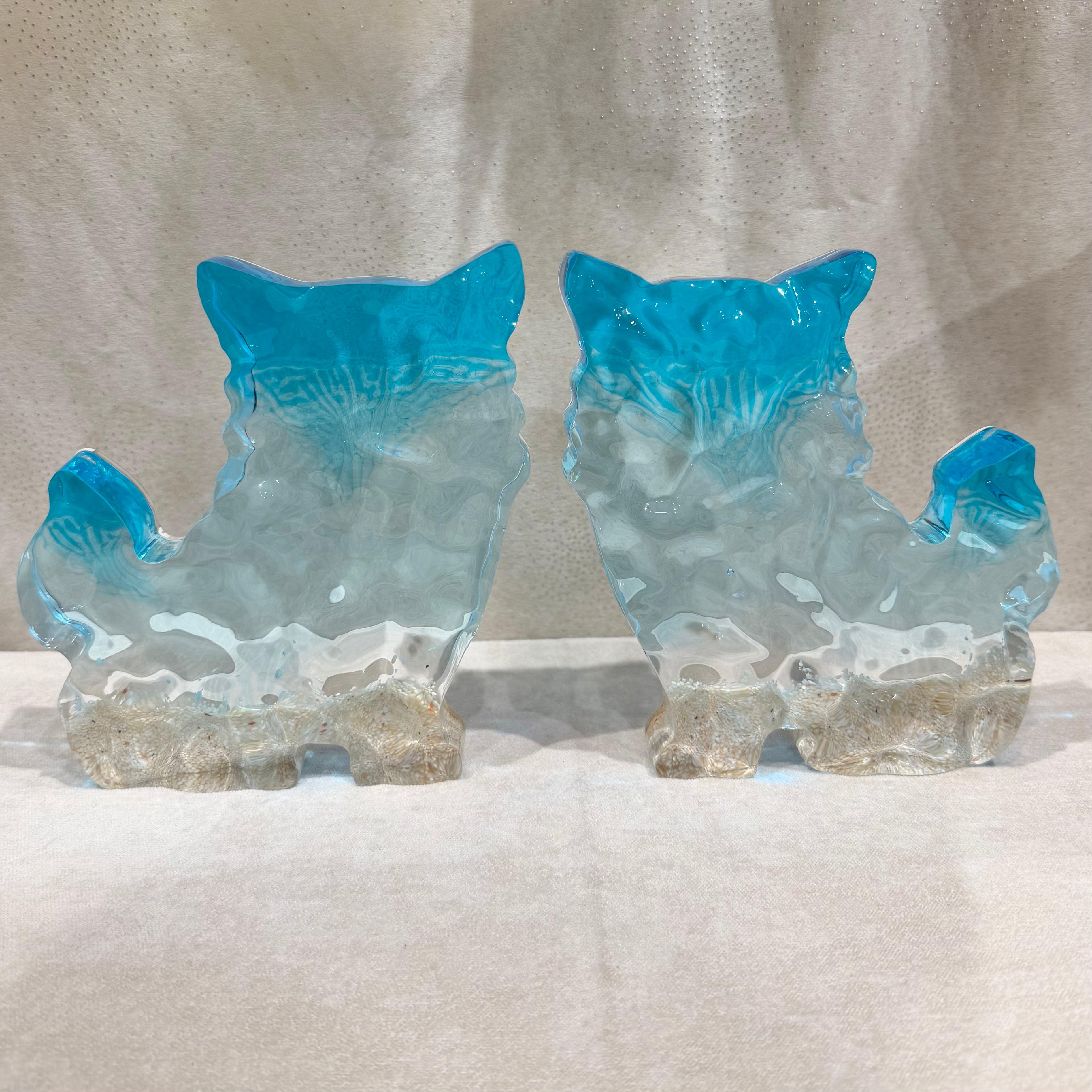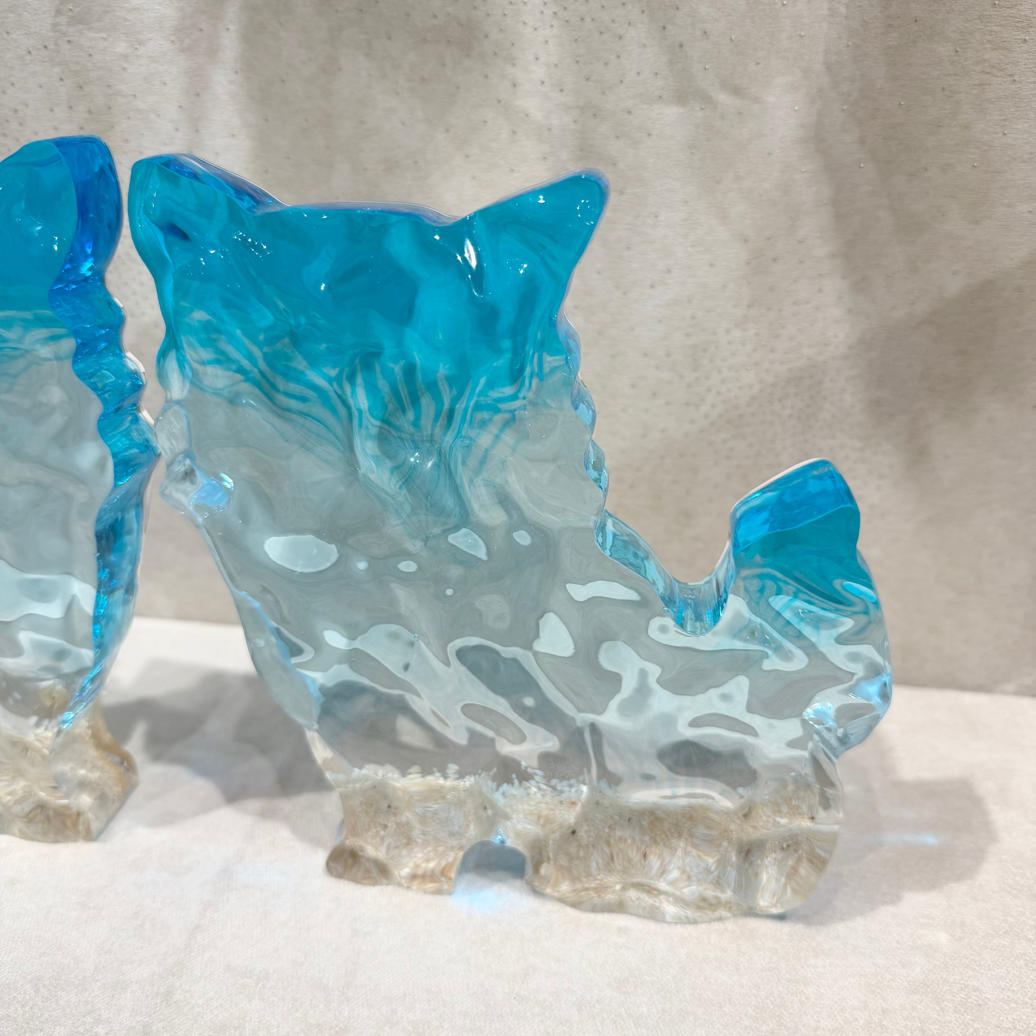 表面の凹凸はまるで本物の海のような立体感を表現。透き通るシーサーは壁の色味に合わせて表情を変えます。重みがあり、しっかりとしたレジン加工で耐久性にも優れています。