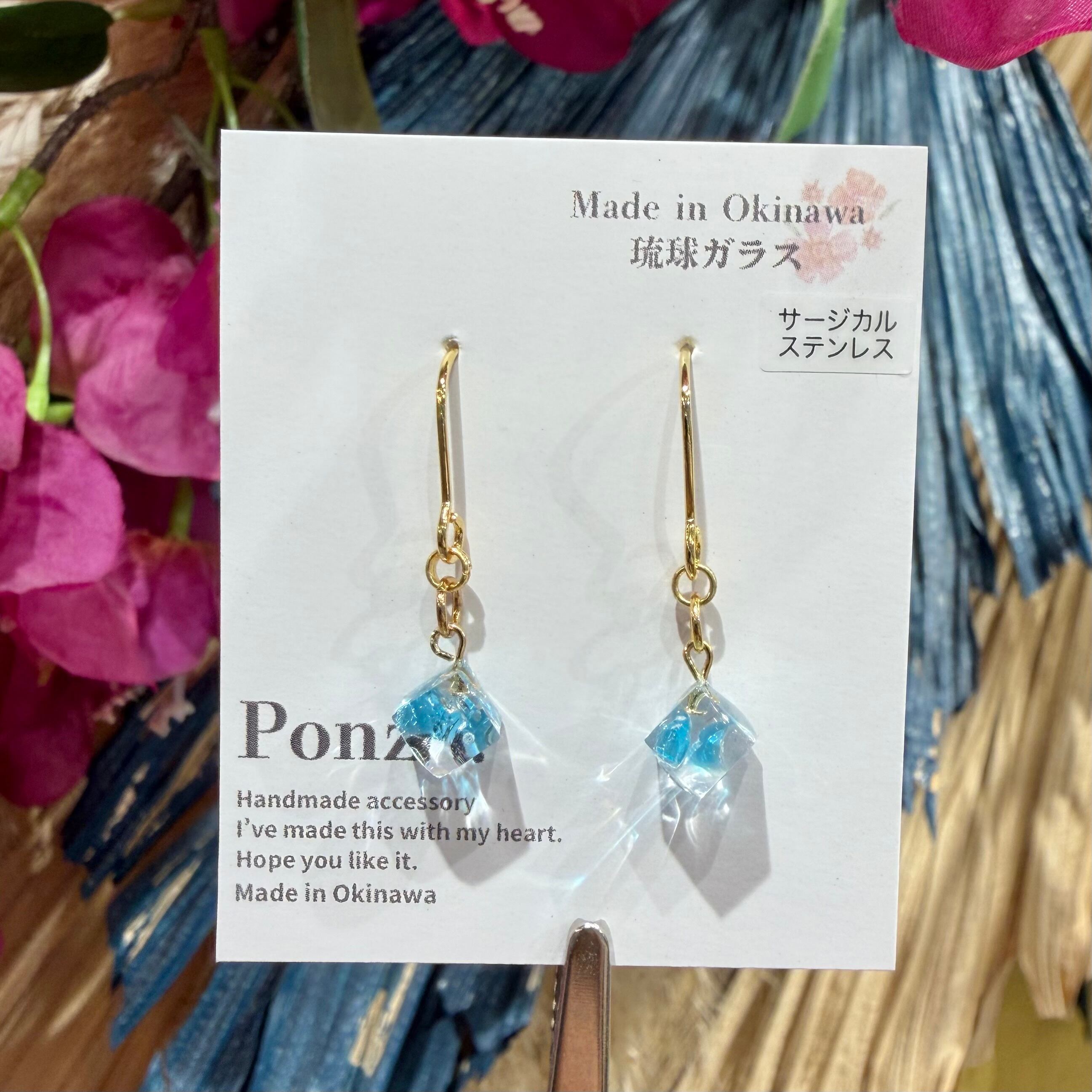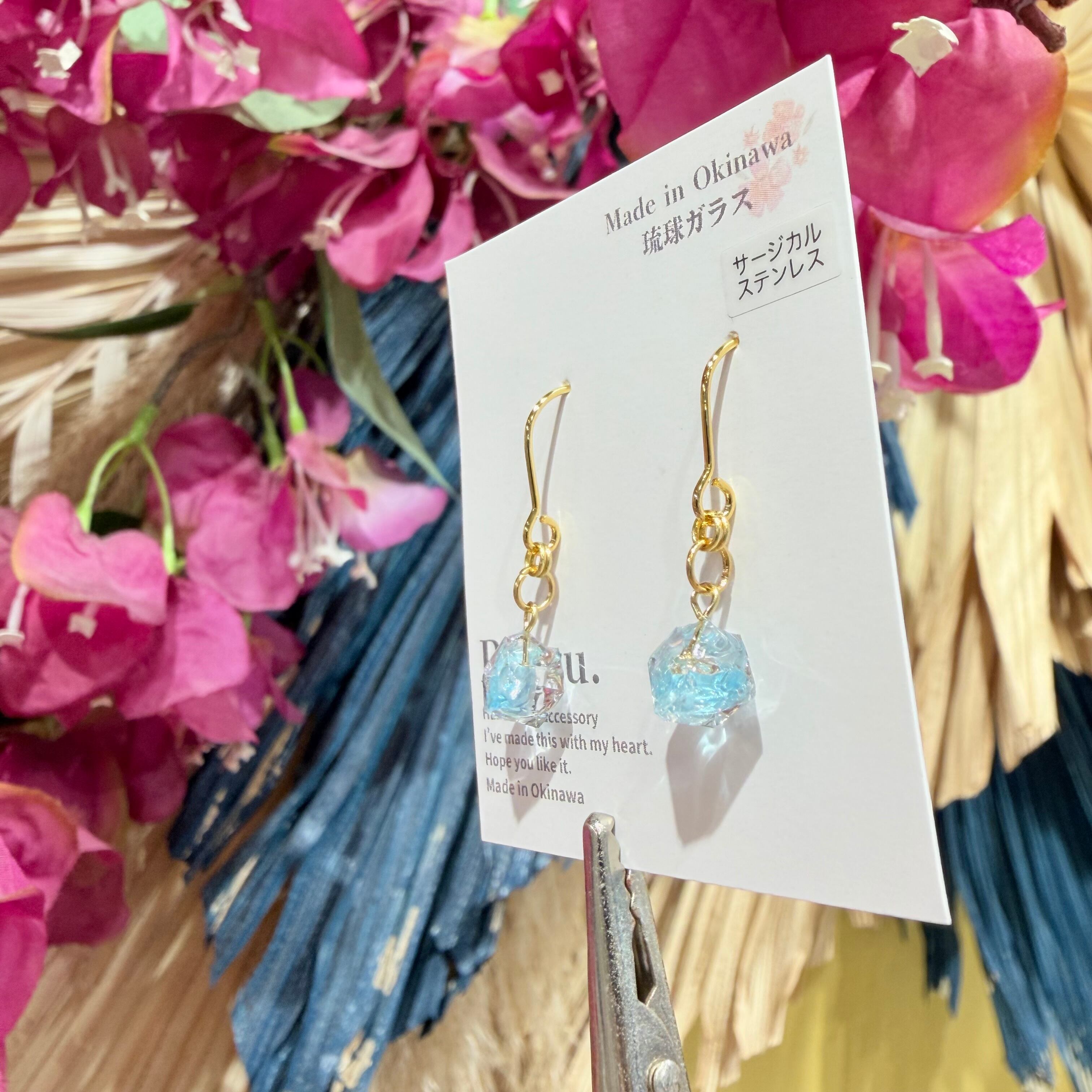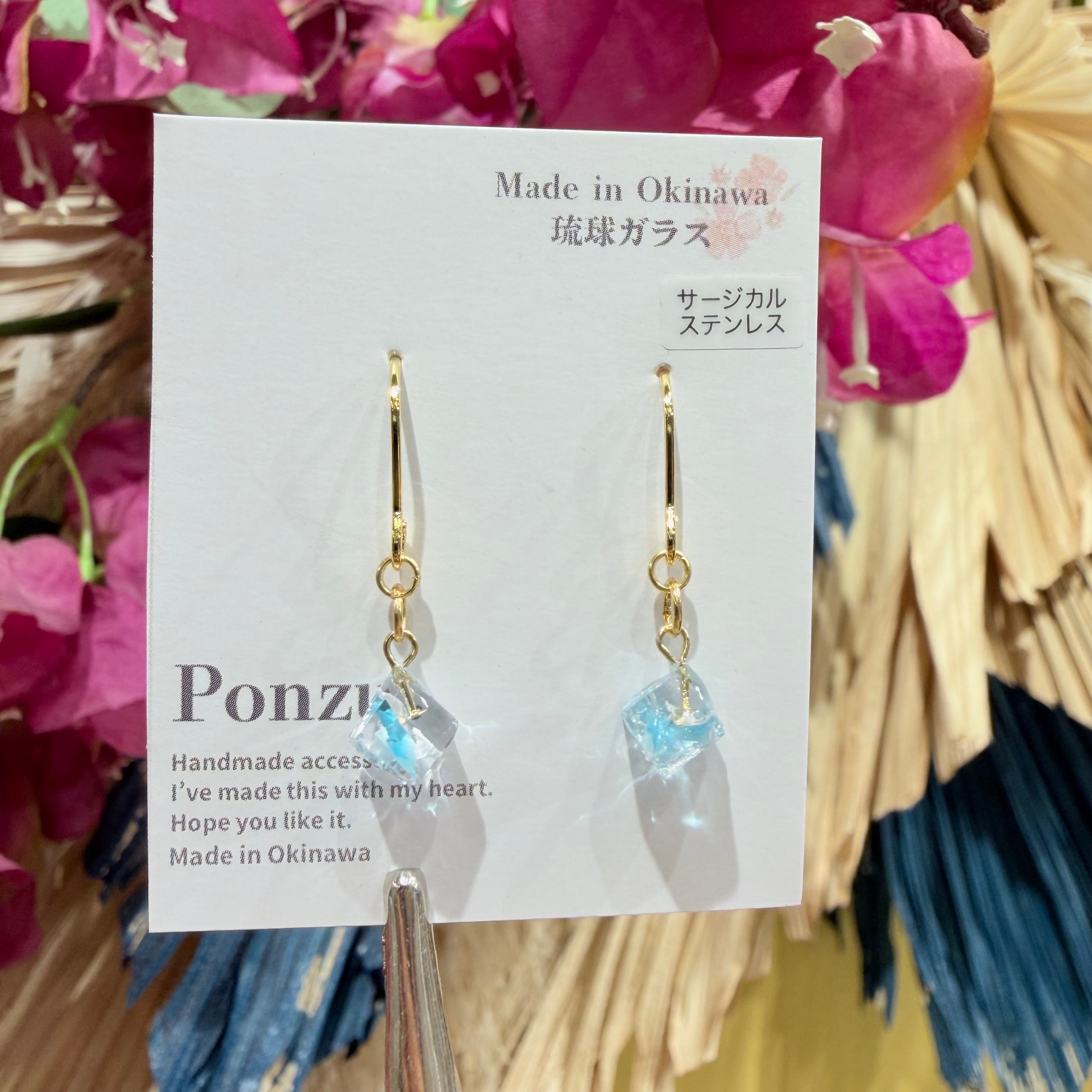 【琉球ガラス使用】ピアス light blue(T-A27-216)