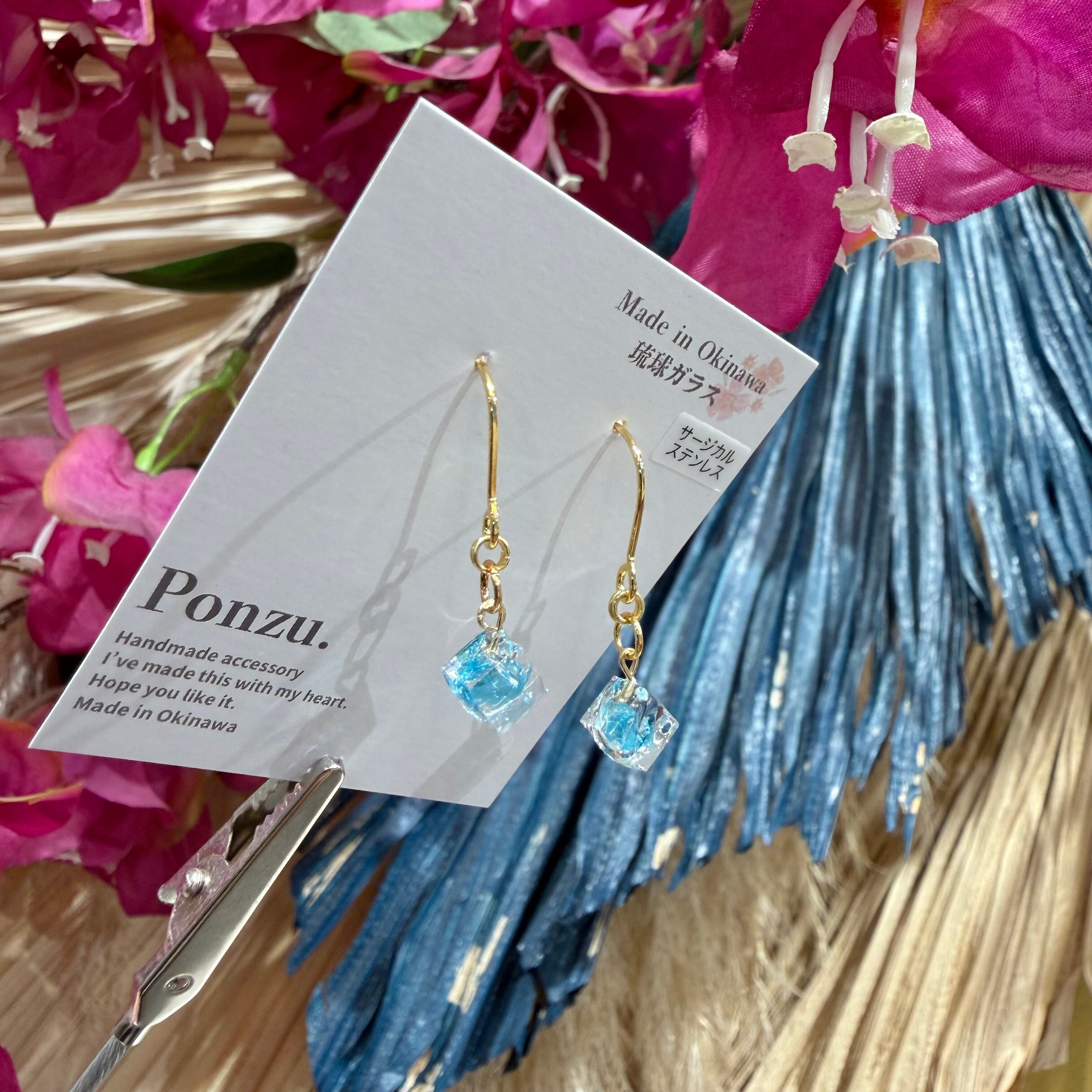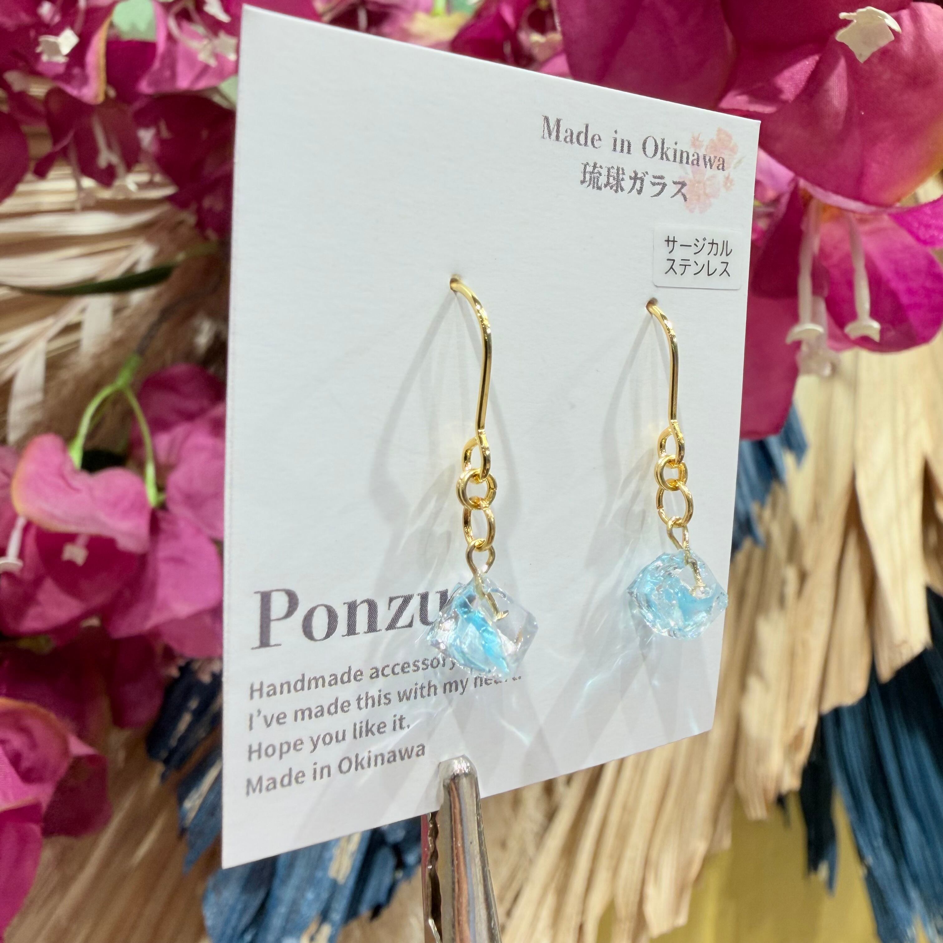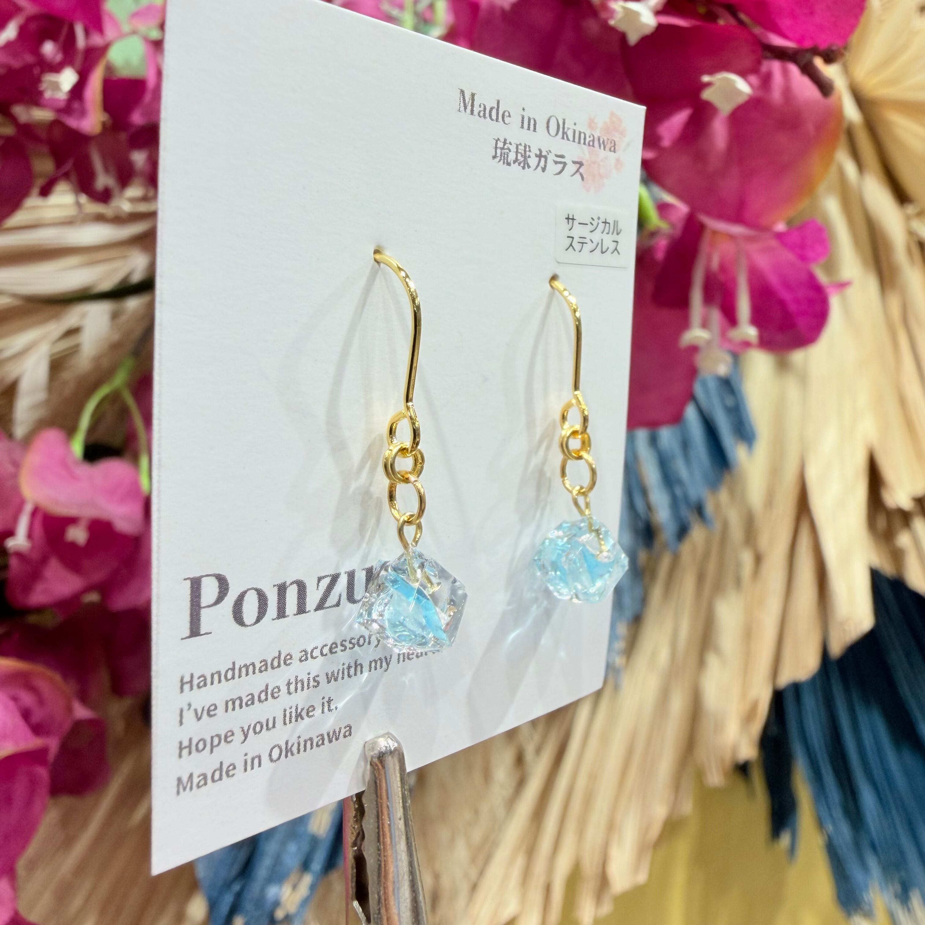 【琉球ガラス使用】ピアス light blue(T-A27-216)