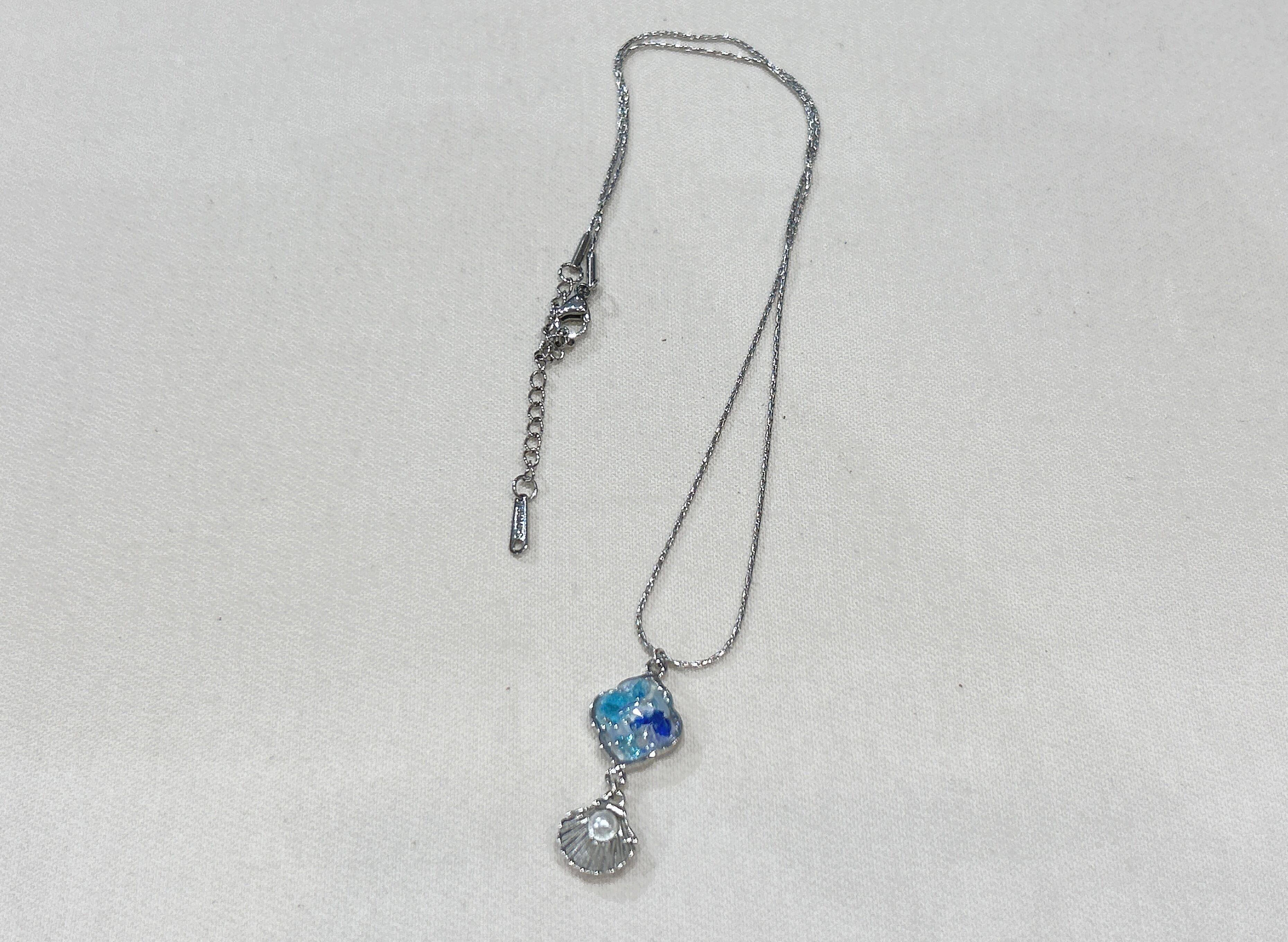沖縄の海からインスパイアを受けたこの琉球ガラス&シェルネックレスは、あなたのスタイルに爽やかさと個性をプラスします!シェルチャームと琉球ガラスが絶妙に組み合わさり、様々なコーディネートにフィットする魅力的なアイテムです。