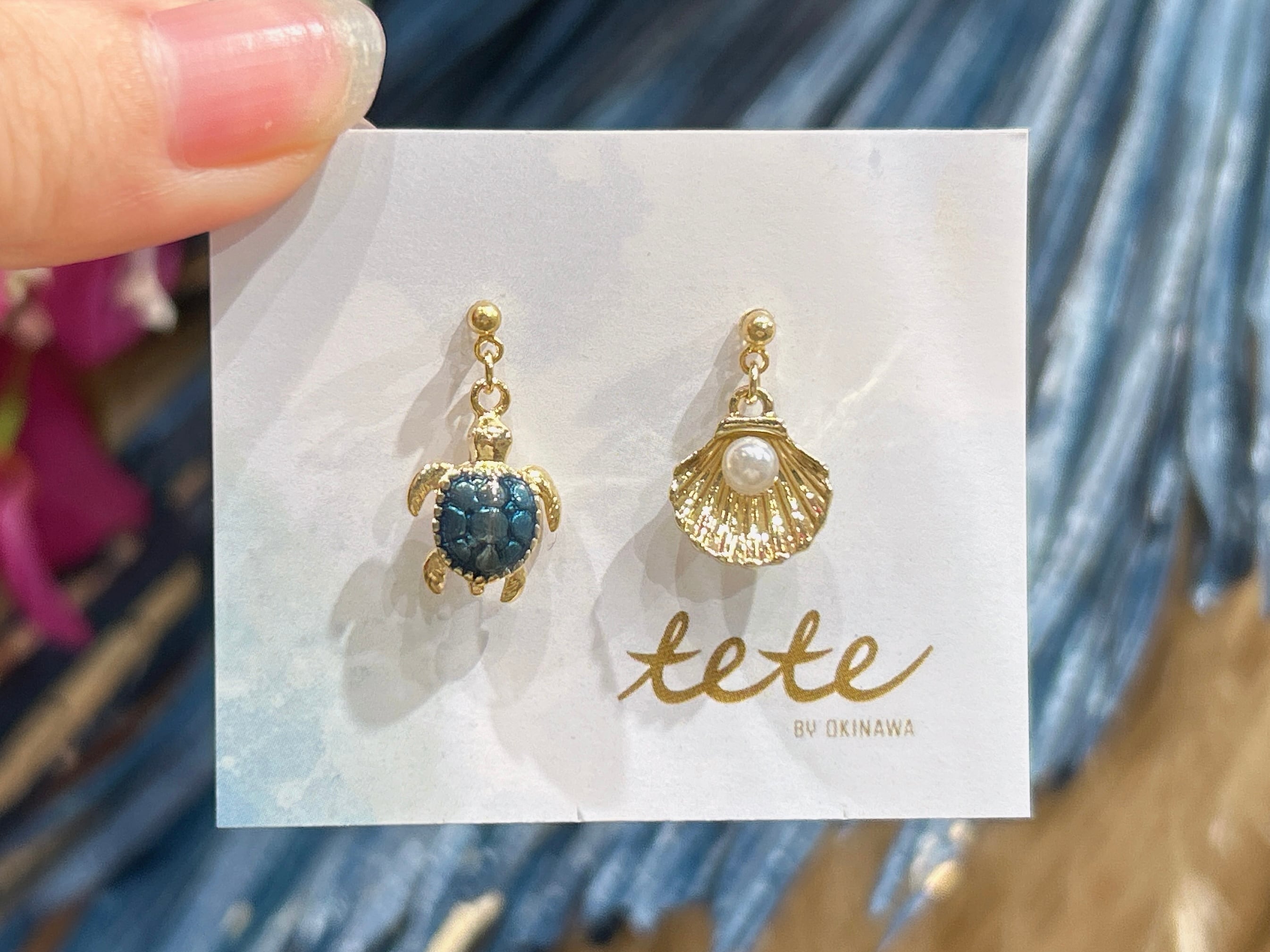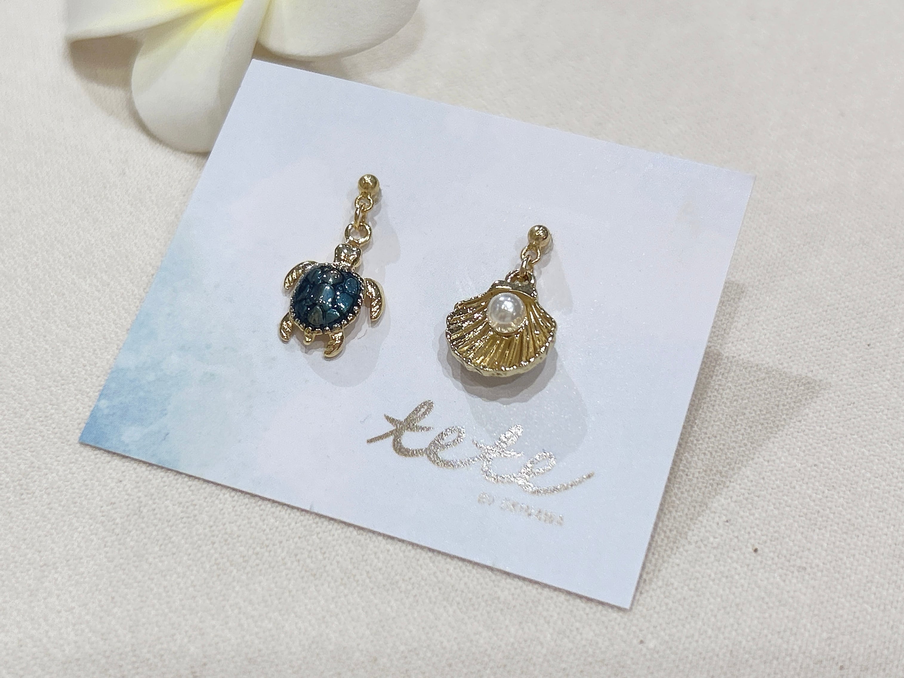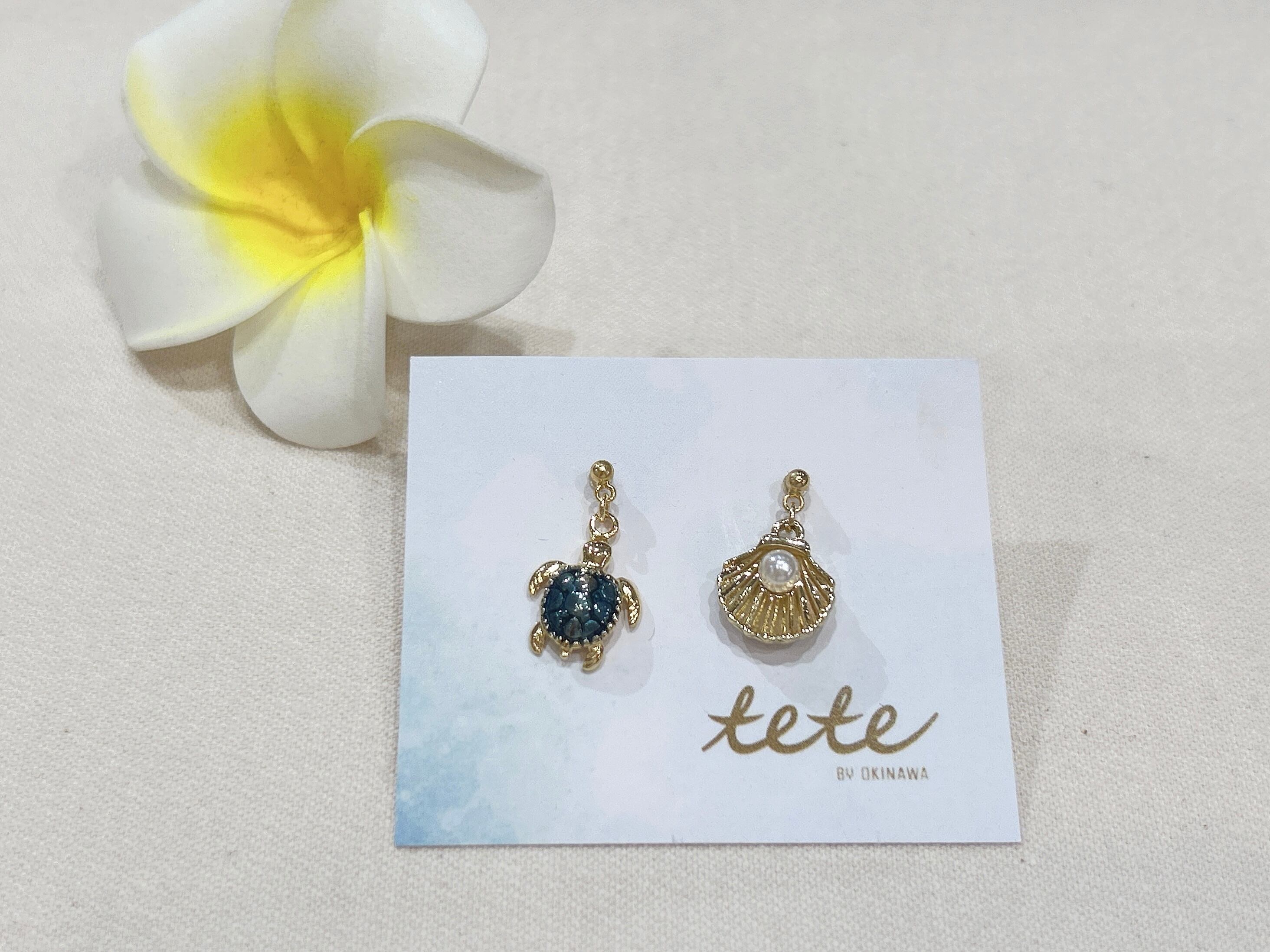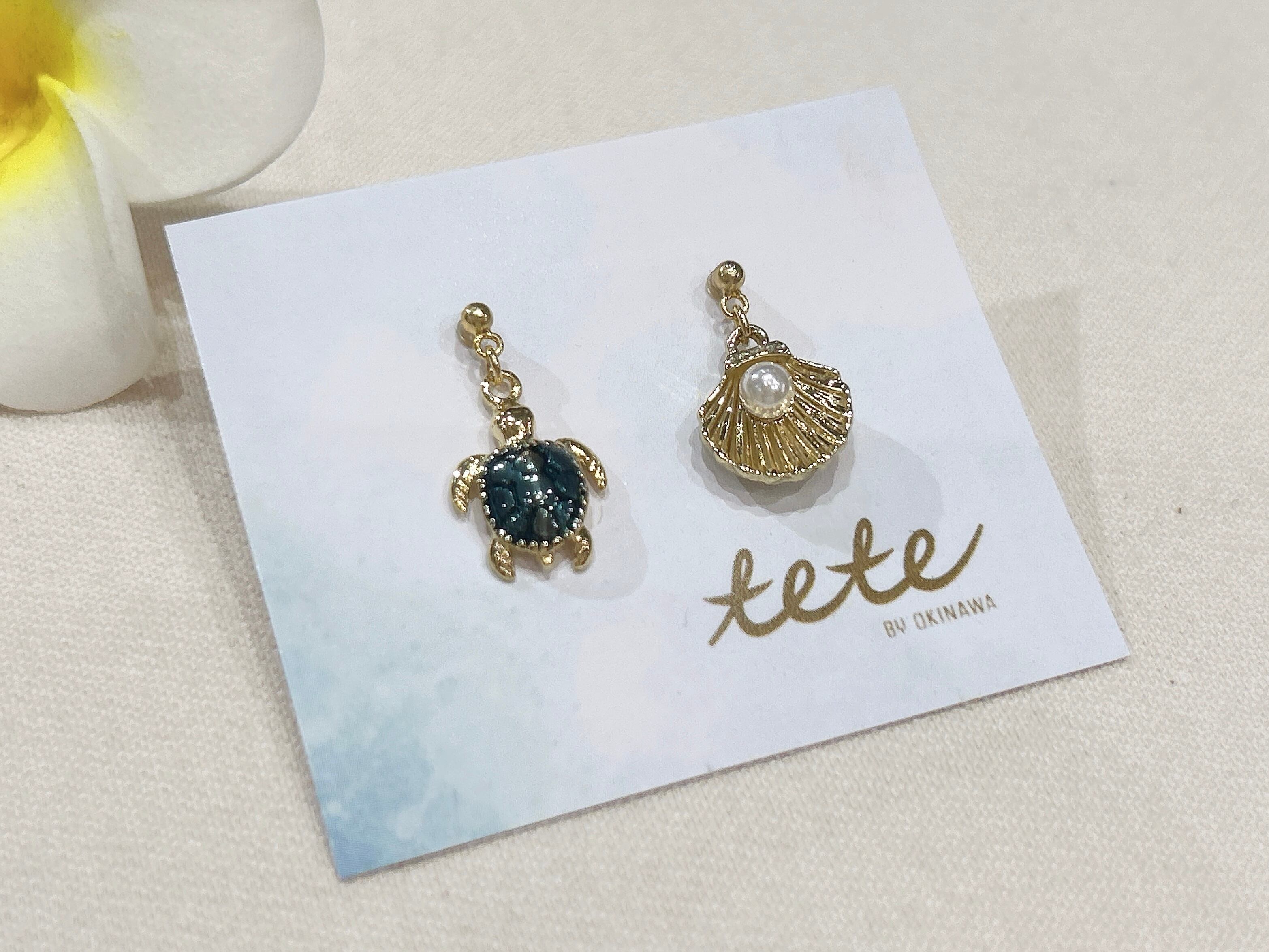 琉球ガラスを使用した美しいホヌ(ウミガメ)とシェルチャームピアスは、あなたのスタイルに自然の魅力と沖縄の風を取り入れます!