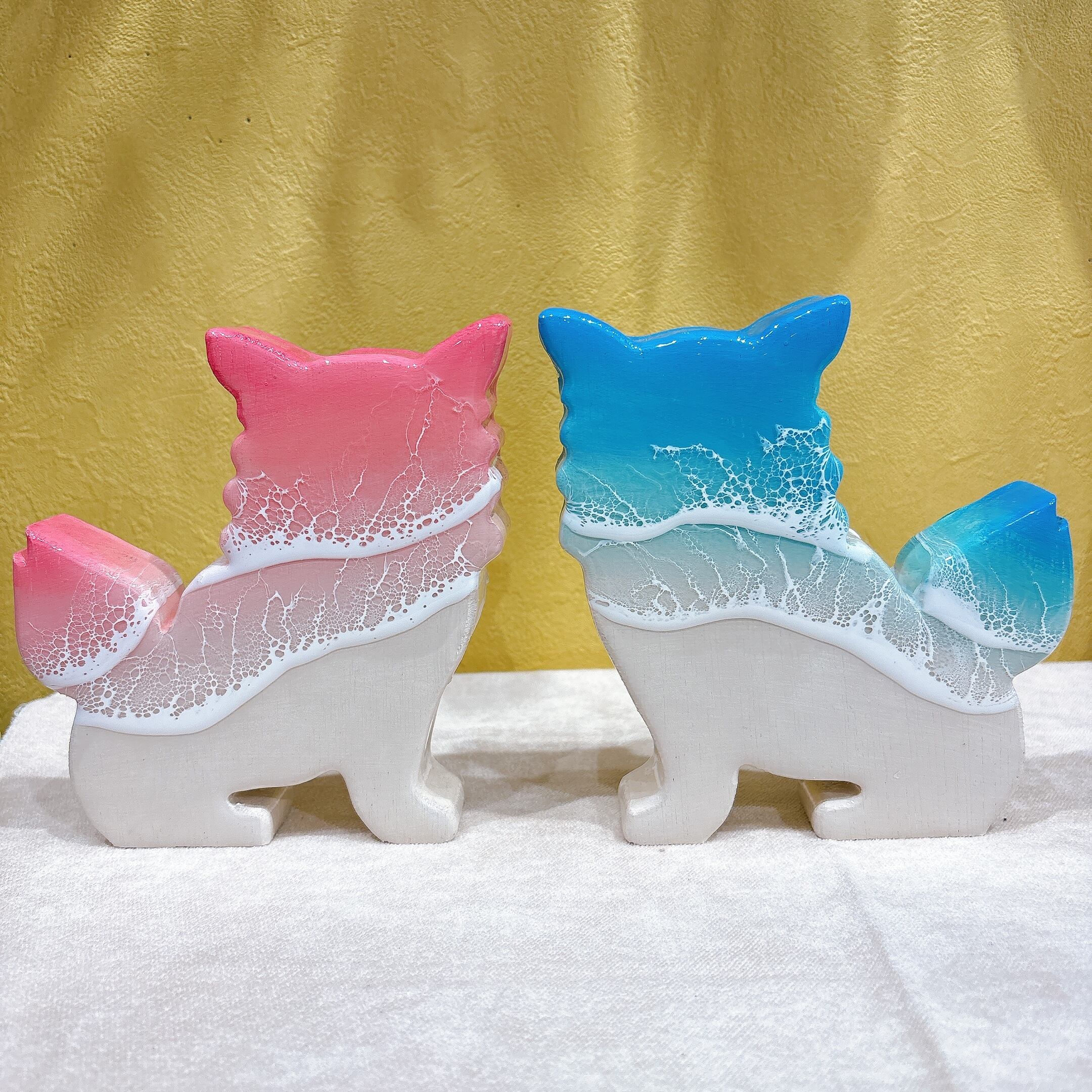 沖縄の海をイメージさせる波アートシーサー。シーサーは、沖縄で昔から家の魔物の侵入を防ぎ幸福をもたらすアイテムとして親しまれています。オスとメスのペアで飾ることが一般的です。