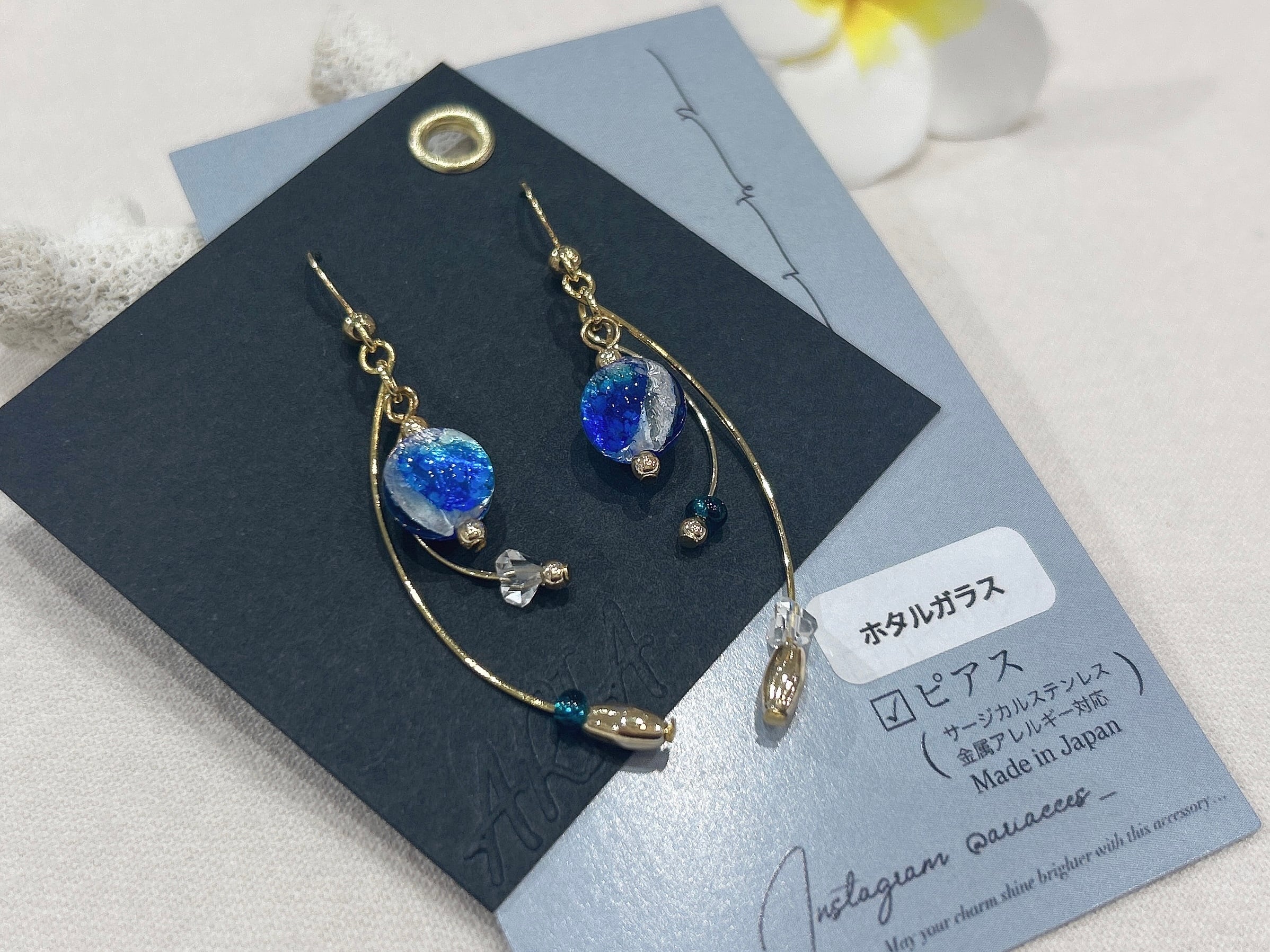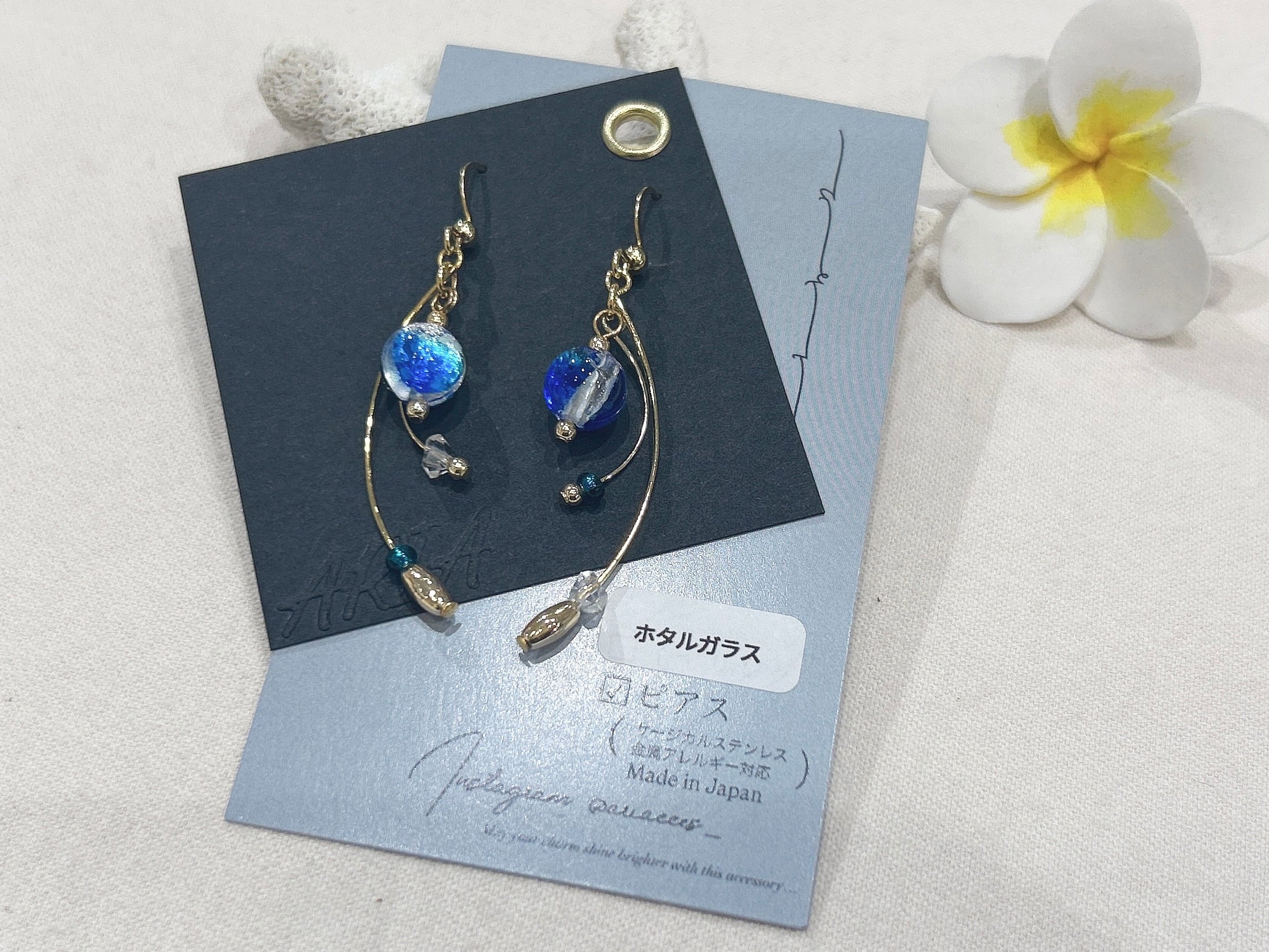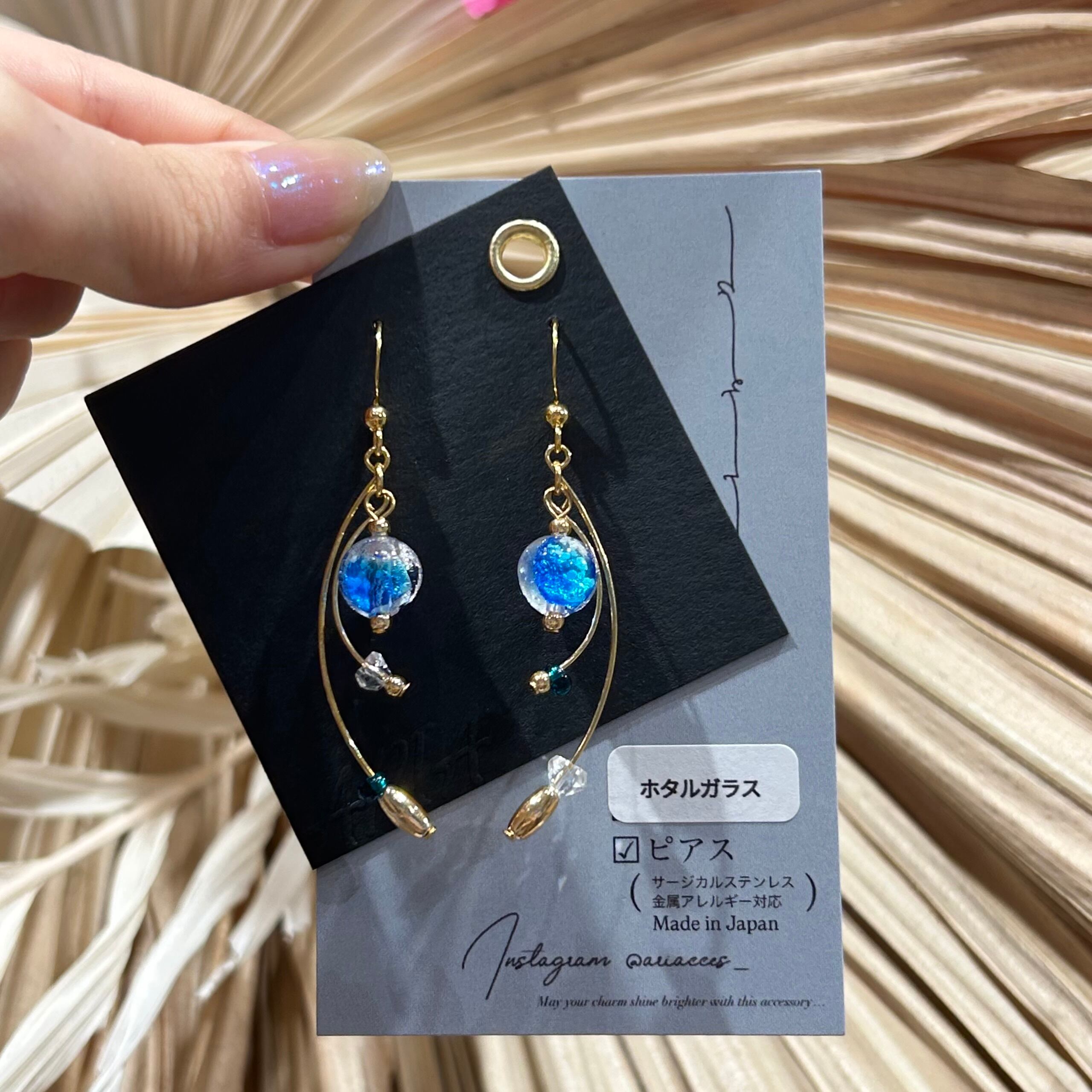 このホタルガラスピアスで、日常のコーディネートに爽やかな青を添えてみませんか?