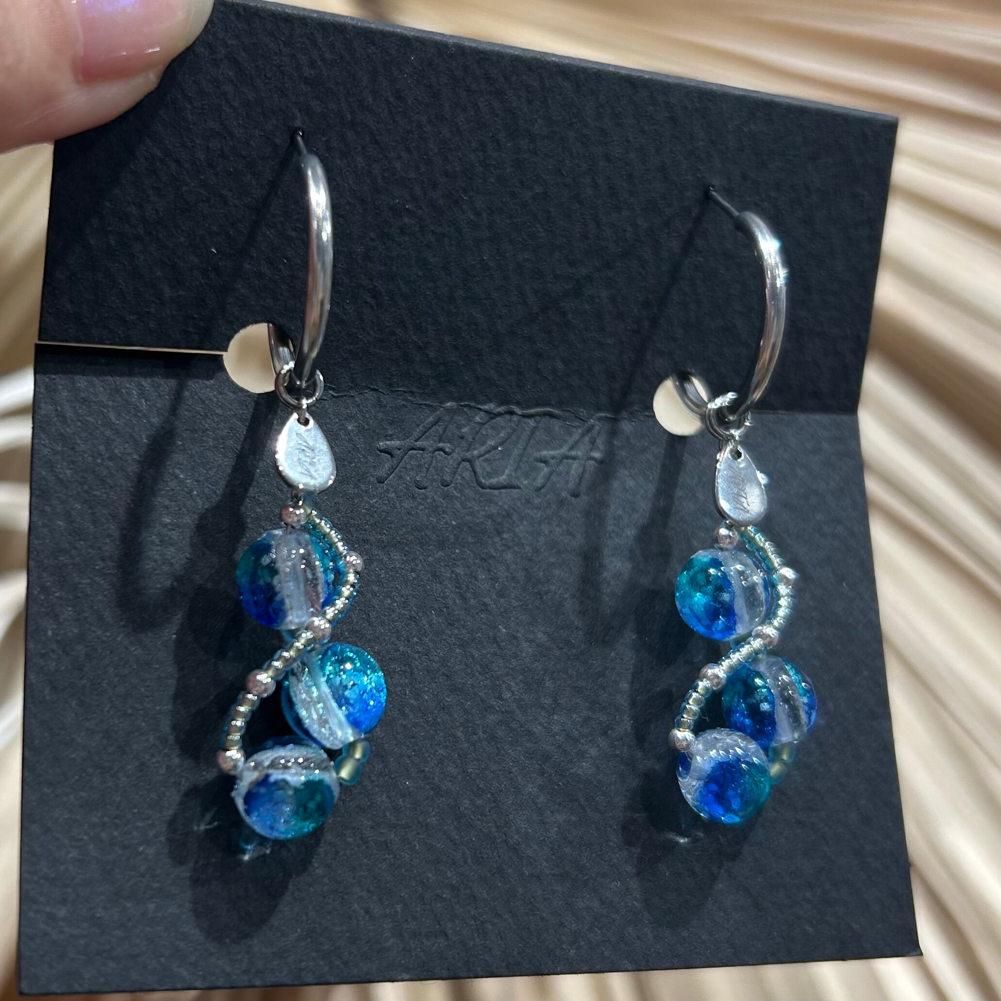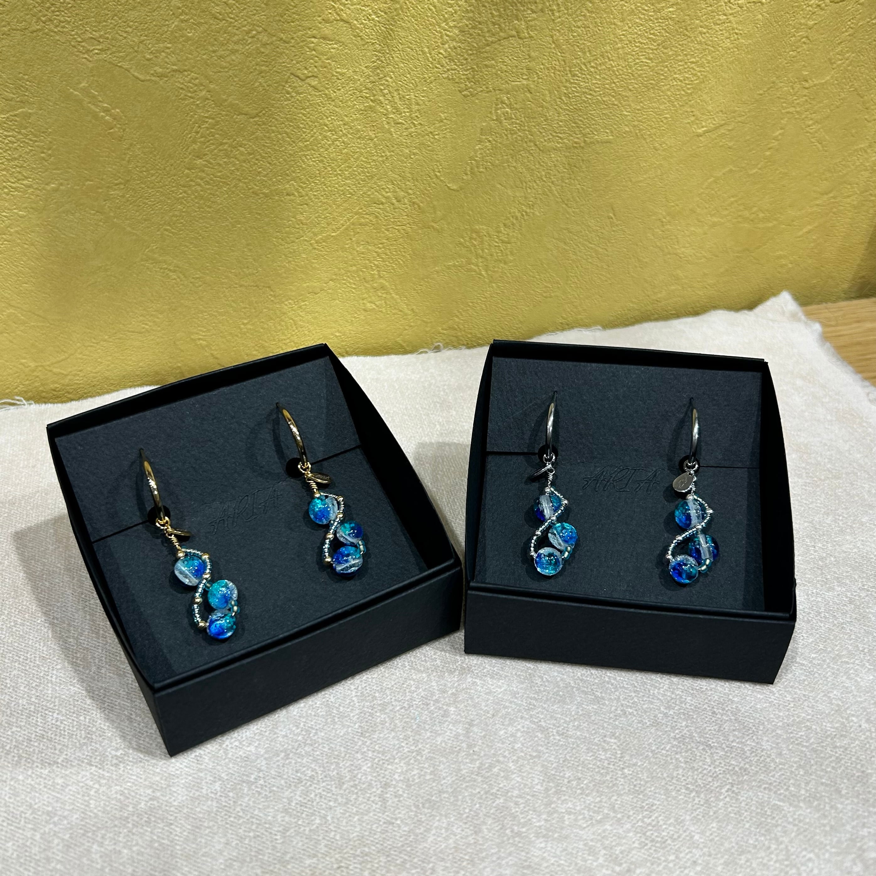 鮮やかな青色が印象的なARIAのホタルガラスサージカルピアスが「long」スタイルで登場しました!