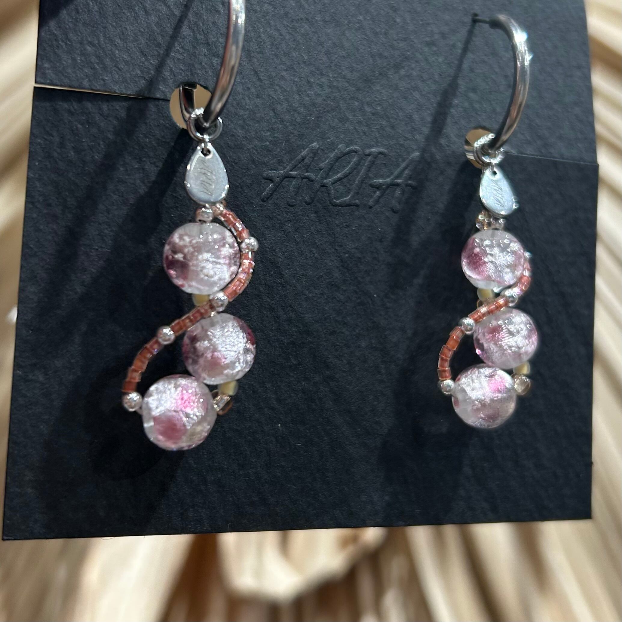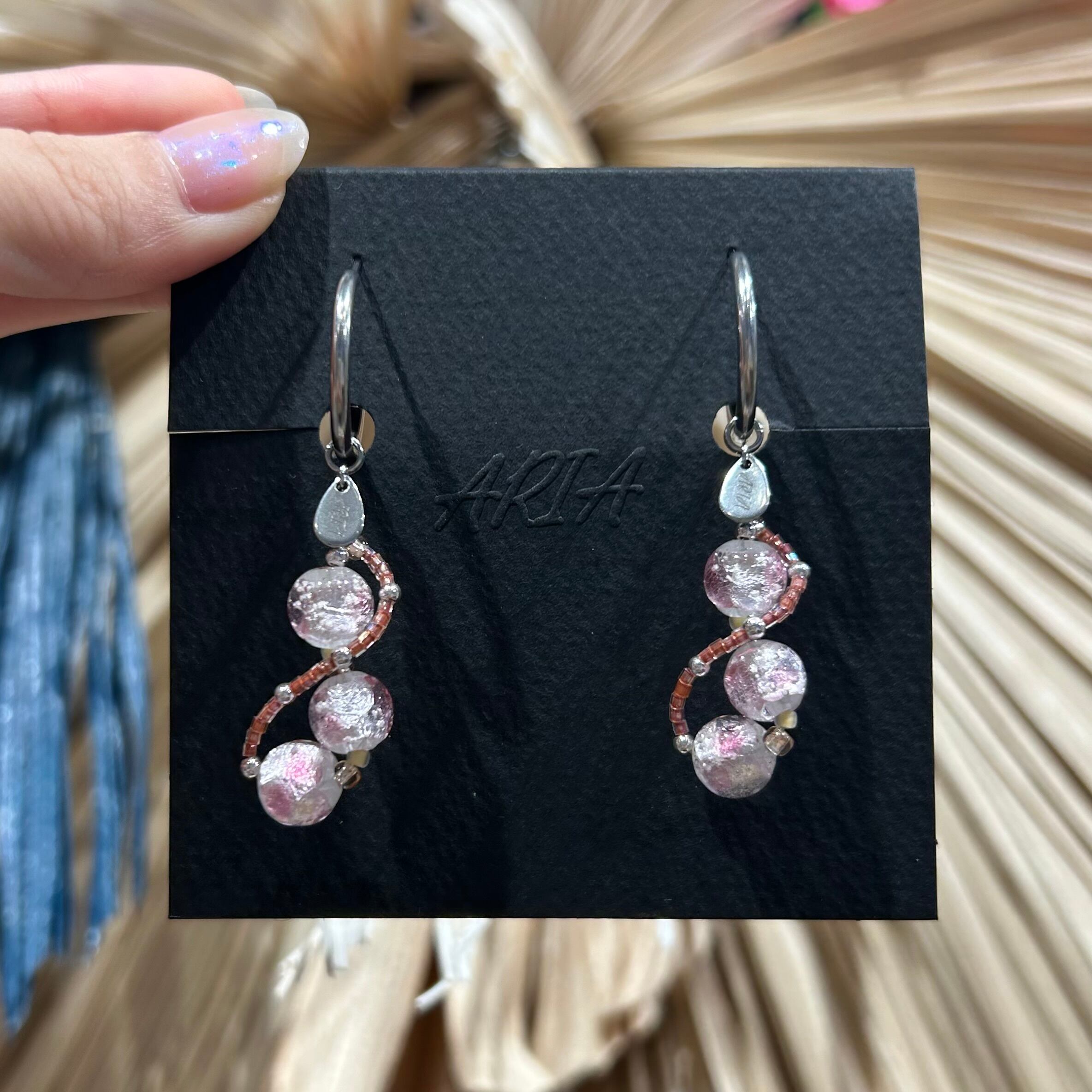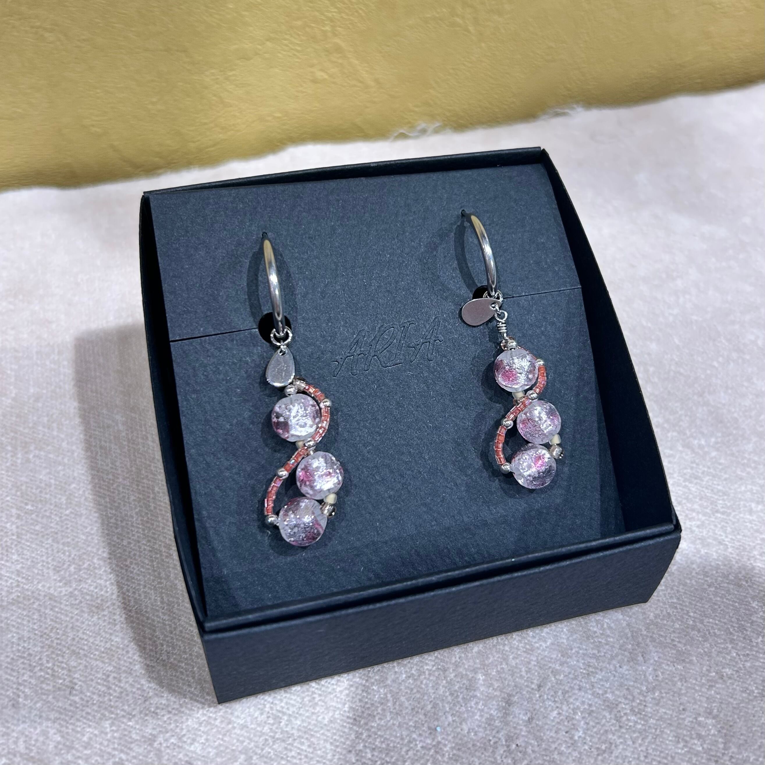 可愛らしいピンク色が印象的なARIAのホタルガラスピアス【long】が新登場しました!このピアスは、手作業で丁寧に作られたホタルガラスの繊細な輝きが特長です。サージカルステンレスのフックを使用しているため、安心して毎日お使いいただけるアイテムとなっています♪
