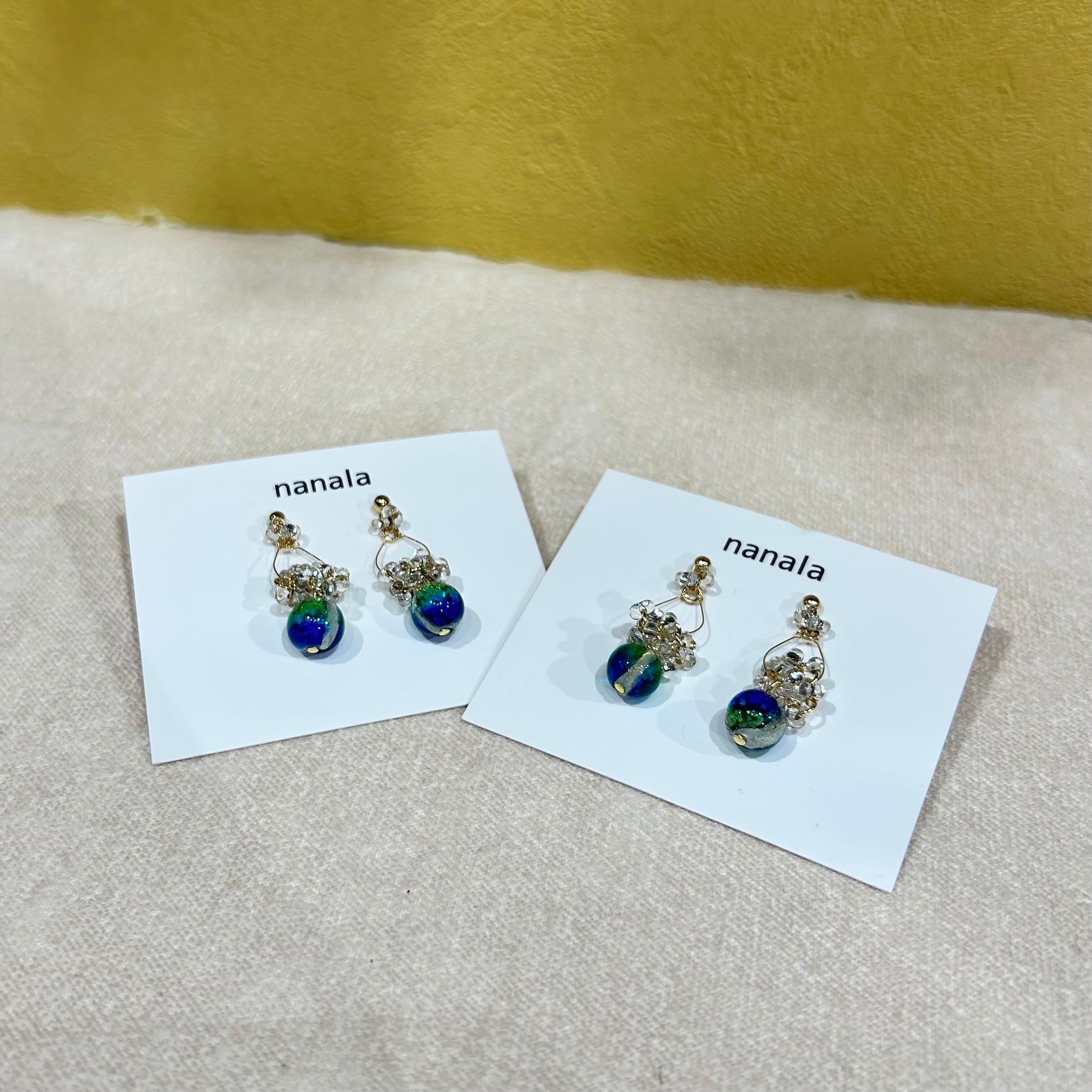 # nanala ホタルガラスピアス サージカルステンレス 雫青(T-A36-4)