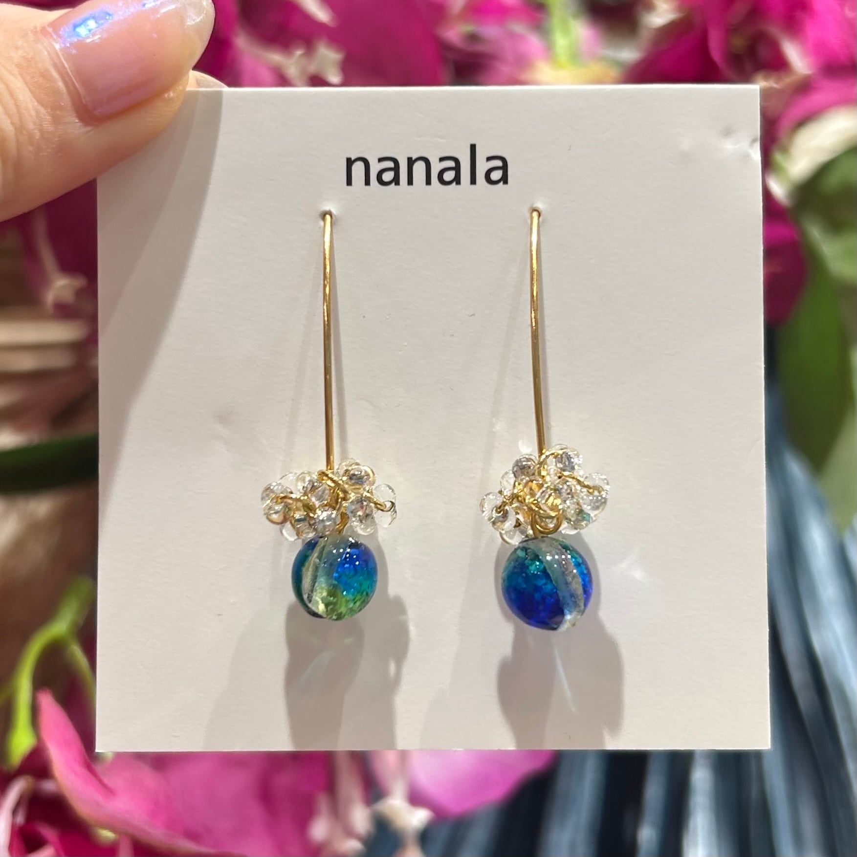「nanala ホタルガラスピアス 青長G」は、普段使いにぴったりなデザインでありながら、着けるだけでおしゃれ度をアップさせる存在感があります。大切な方へのギフトだけでなく、自分へのご褒美にもおすすめです☆