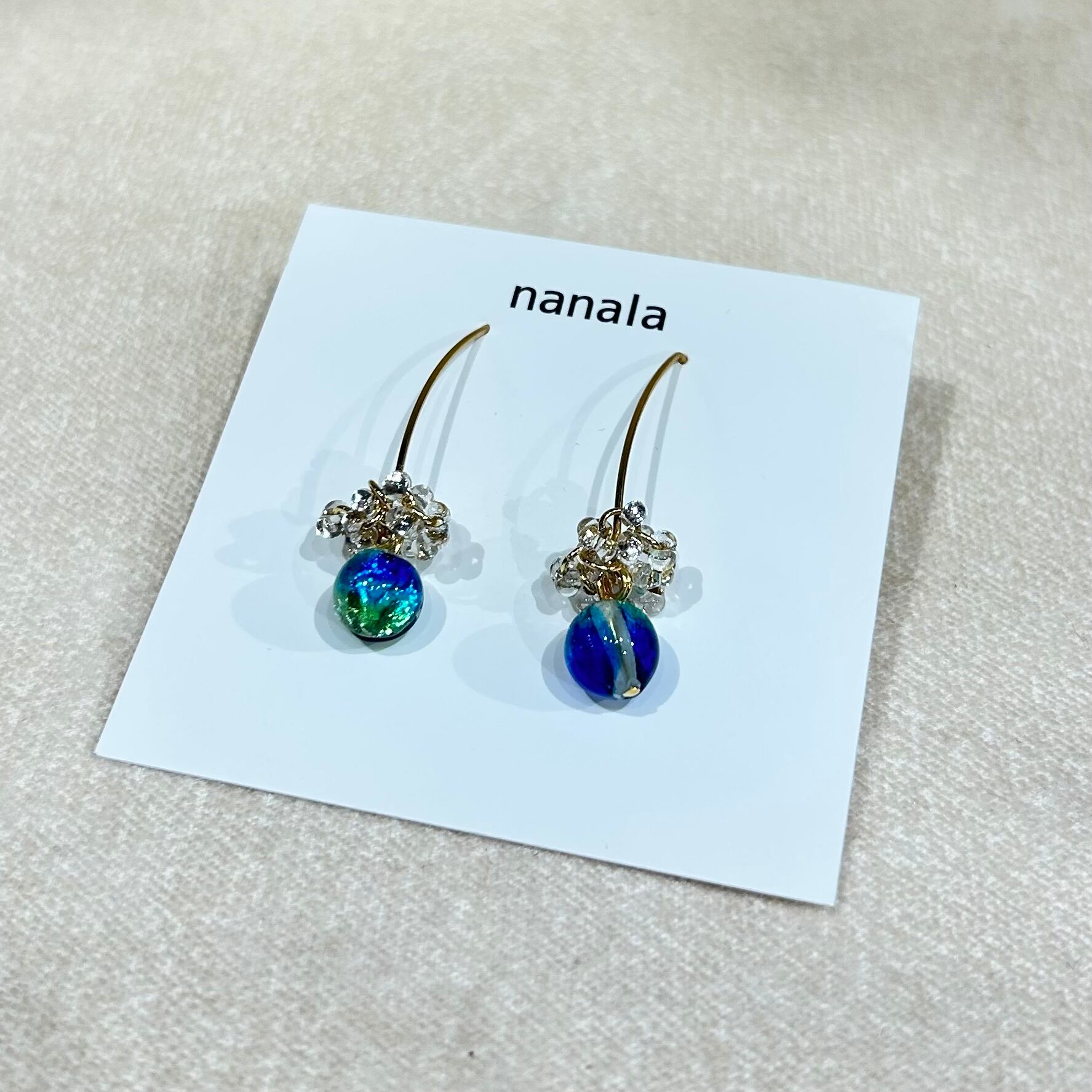 # nanala ホタルガラスピアス 青長G(T-A36-4)