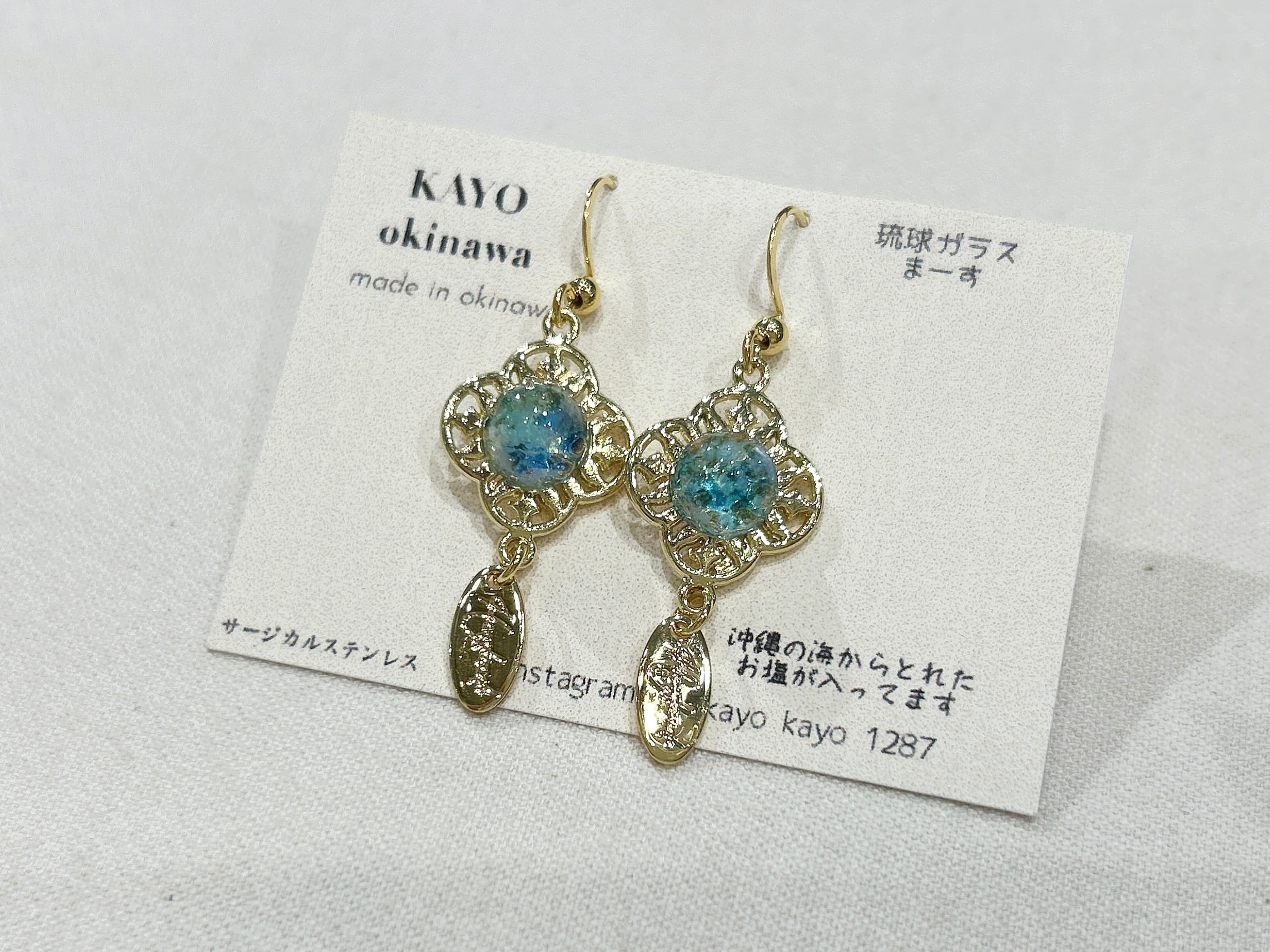 #琉球ガラスピアス #まーす入り #ハンドメイド #耳飾り #沖縄