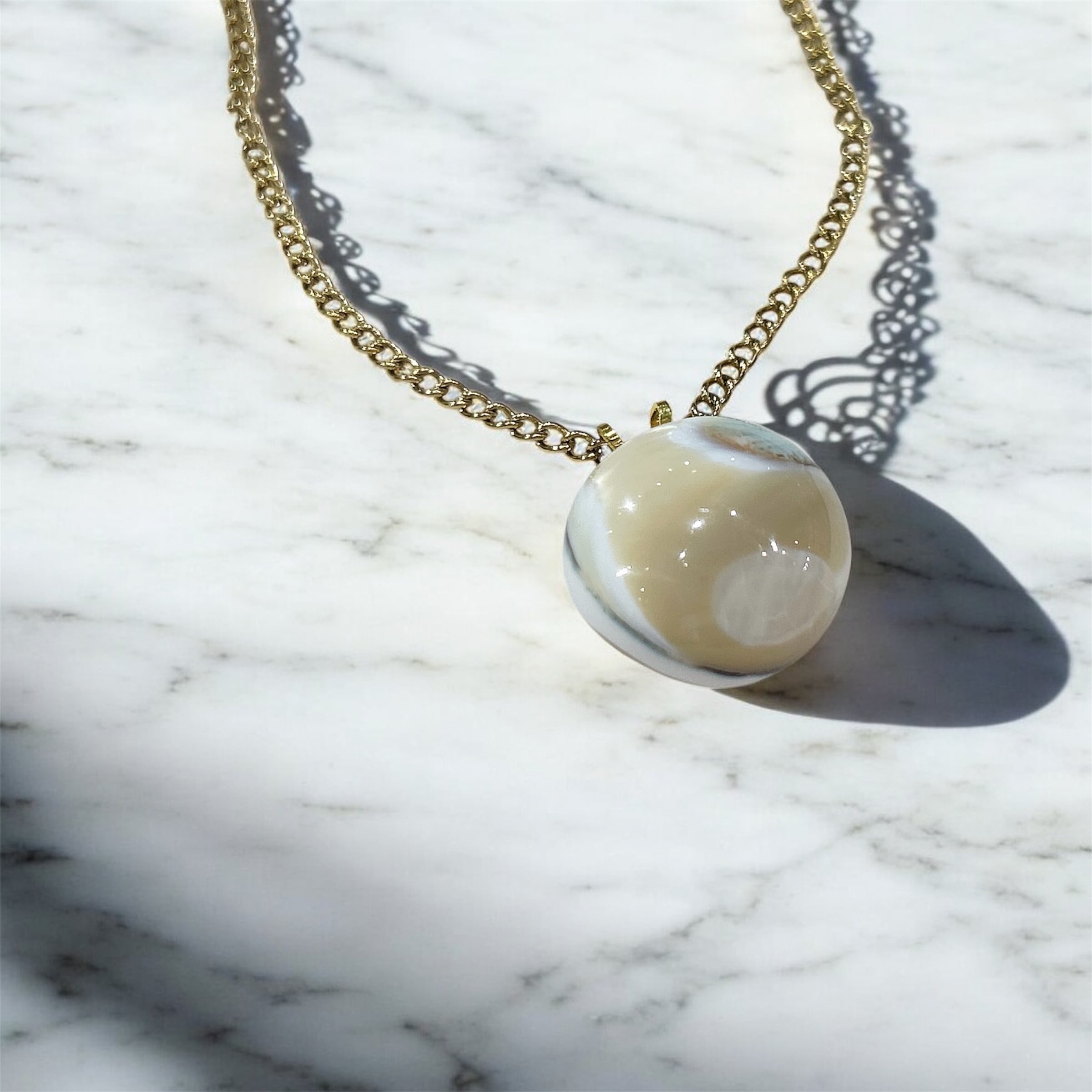 夜行貝ネックレスは、洗練されたゴールドのサージカルステンレスチェーンを使用した特別なアクセサリーです。美しい夜行貝の輝きが首元で華やかに映え、自然の美しさを引き立てます。このネックレスは、デイリースタイルにぴったりで、さまざまなお洋服に合わせやすい実用性を兼ね備えています!