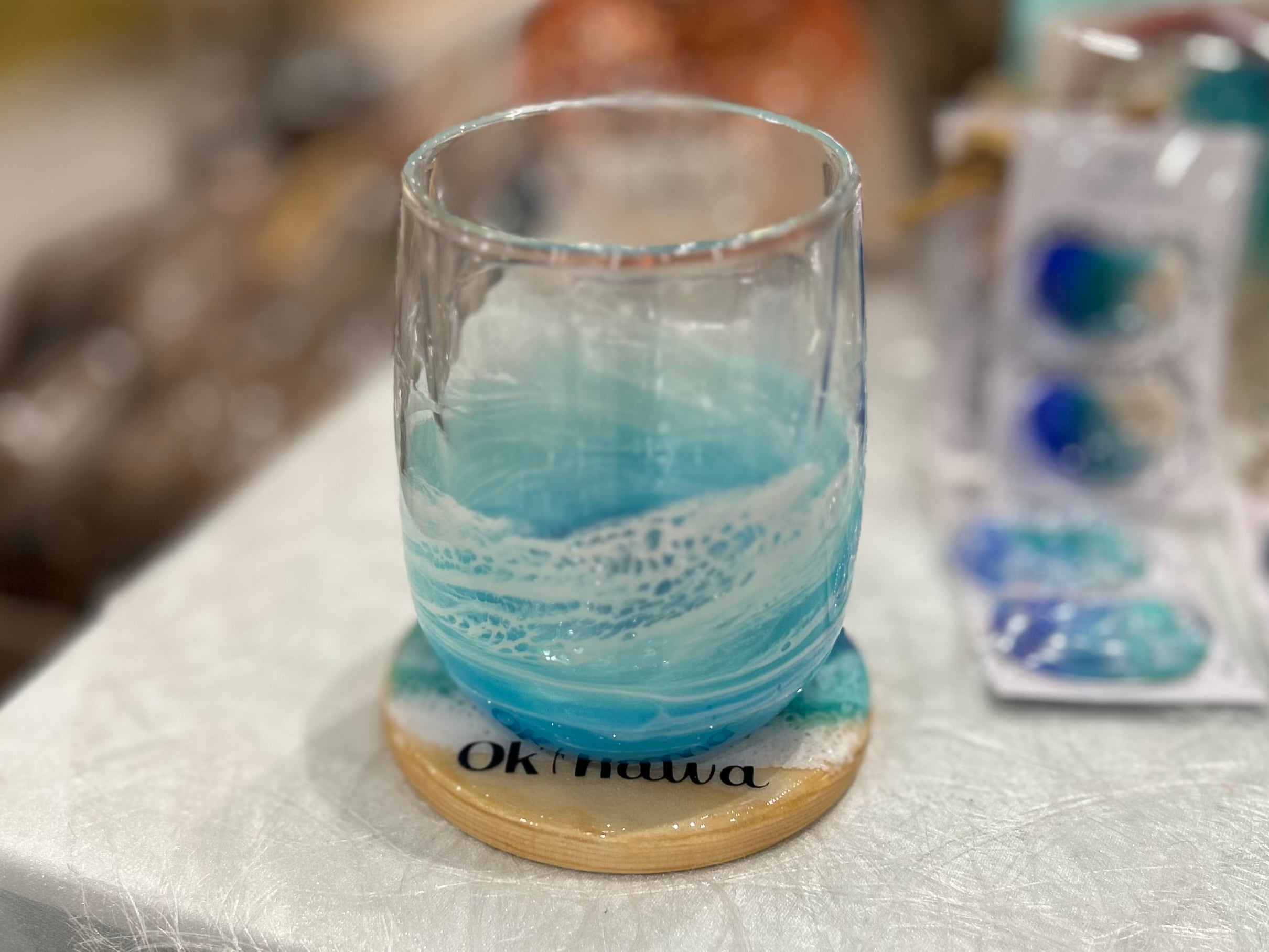レジンコースターは、波アートの美しいデザインと「okinawa」の文字が印象的な特別なアイテムです。独自のアートスタイルが自宅のテーブルを彩り、リラックスした雰囲気を演出します。このコースターは、日常の使い勝手を考えた実用性を兼ね備え、さまざまなインテリアスタイルに調和します!