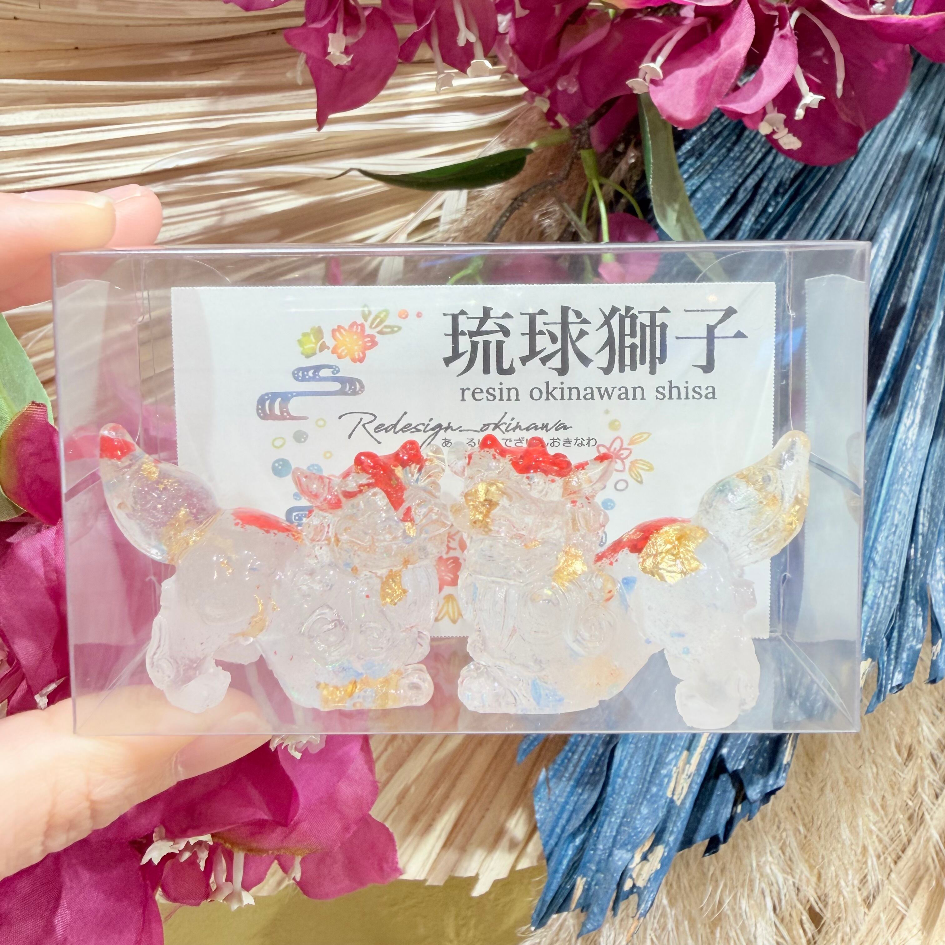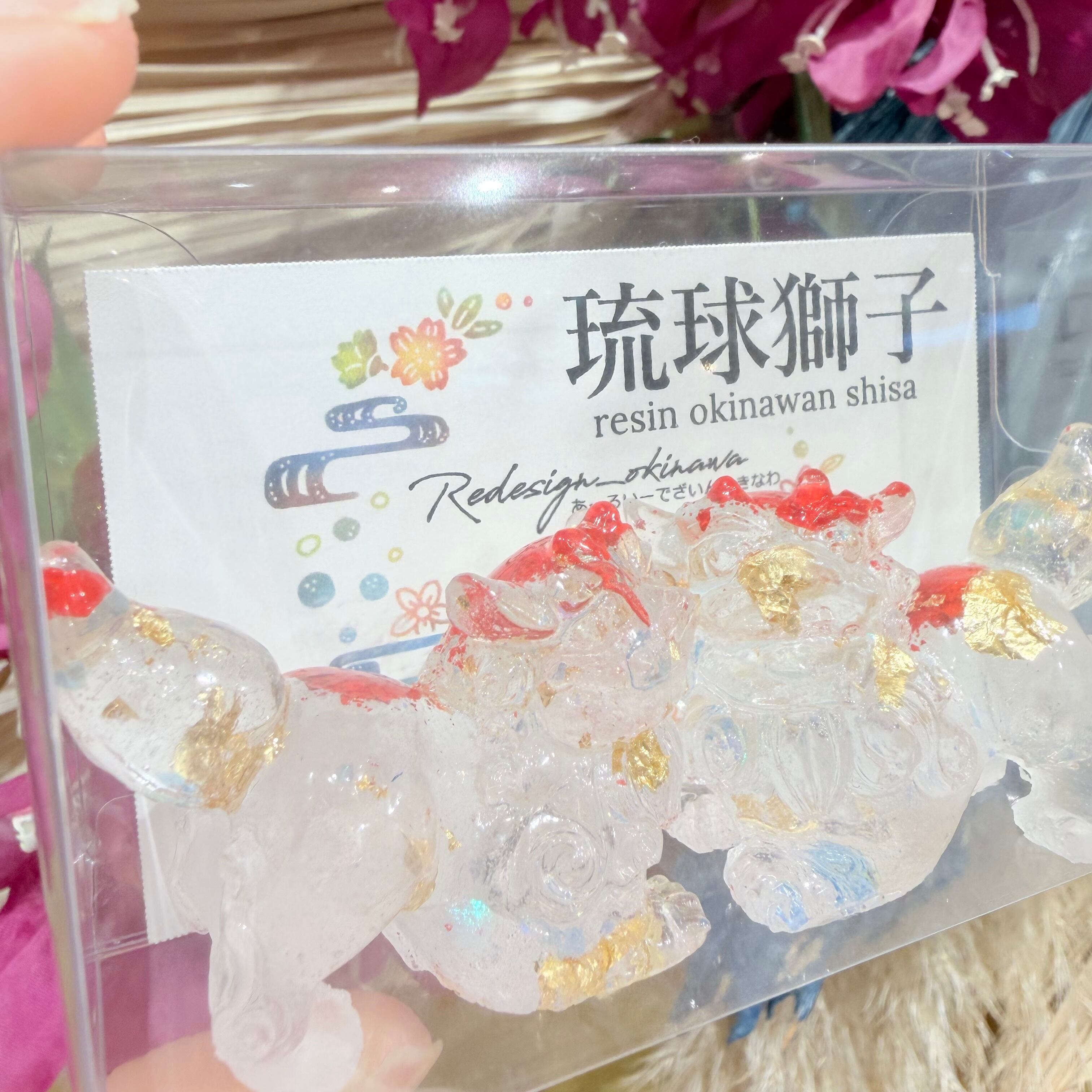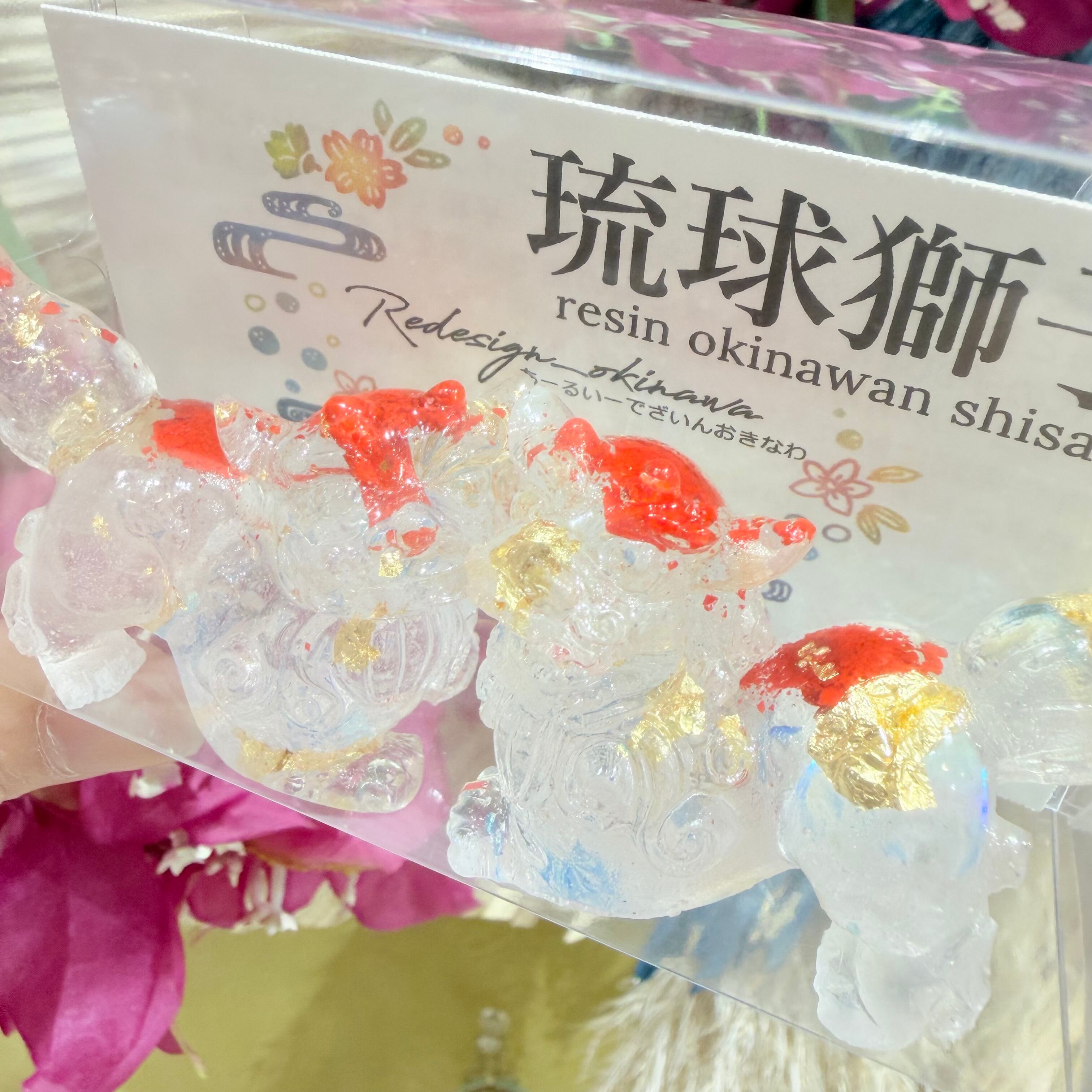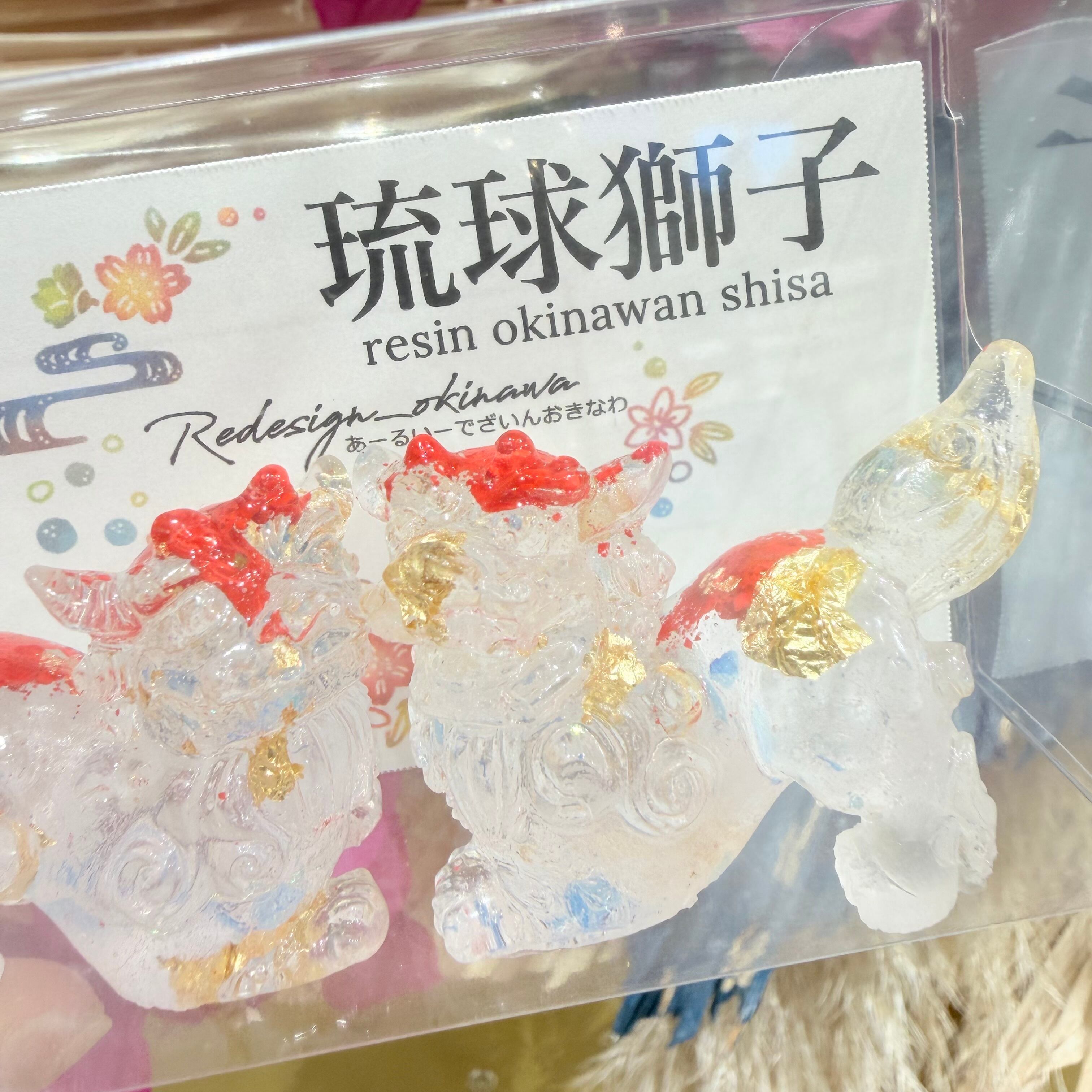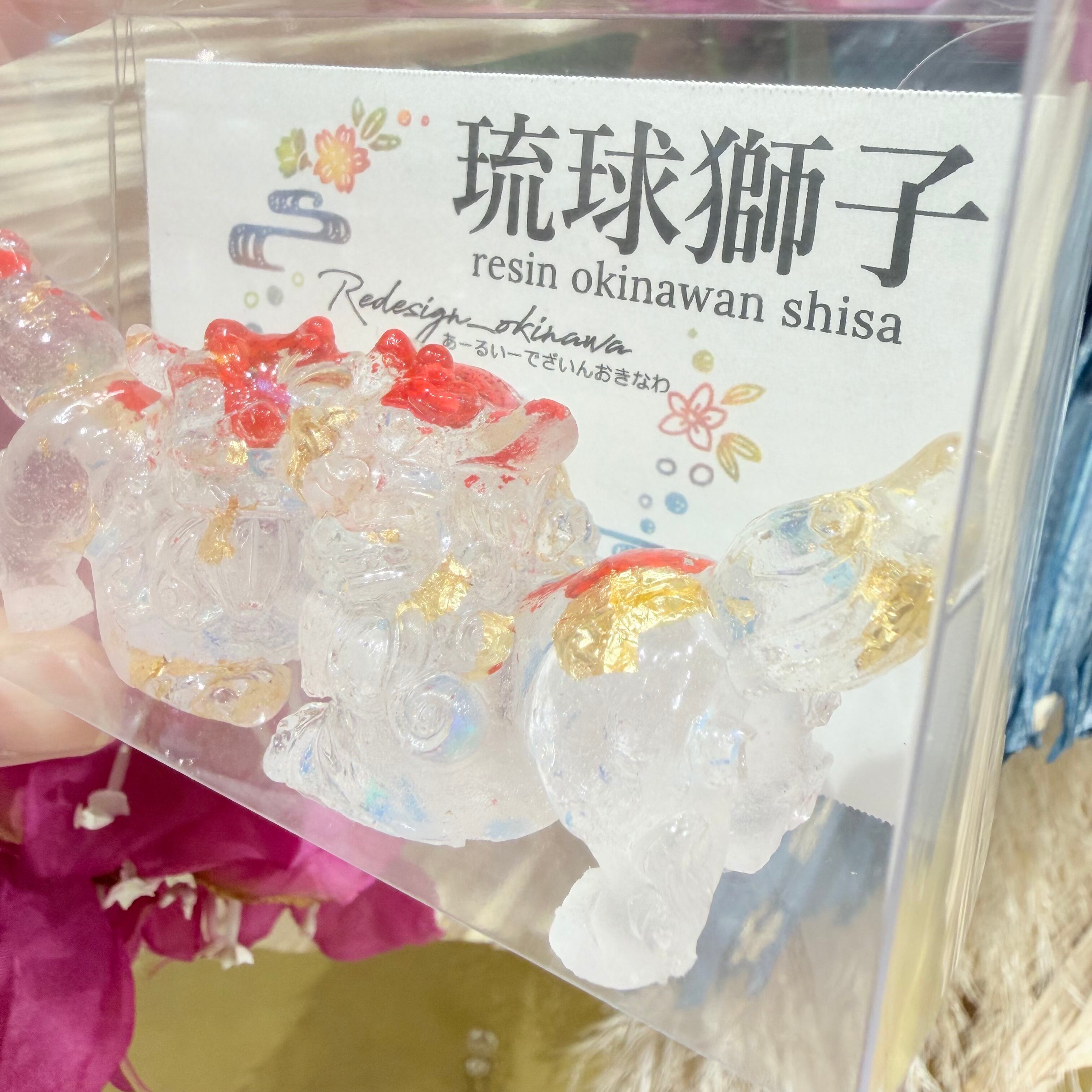 レジンシーサー は、あなたの空間に華やかさを加える特別なアイテムです!若干透明感もあり水色ラメが、シーサー本来の可愛らしさを一層引き立てています。この美しいデザインは、リビングや玄関など、さまざまな場所に溶け込み、見る人に癒しを提供することでしょう。