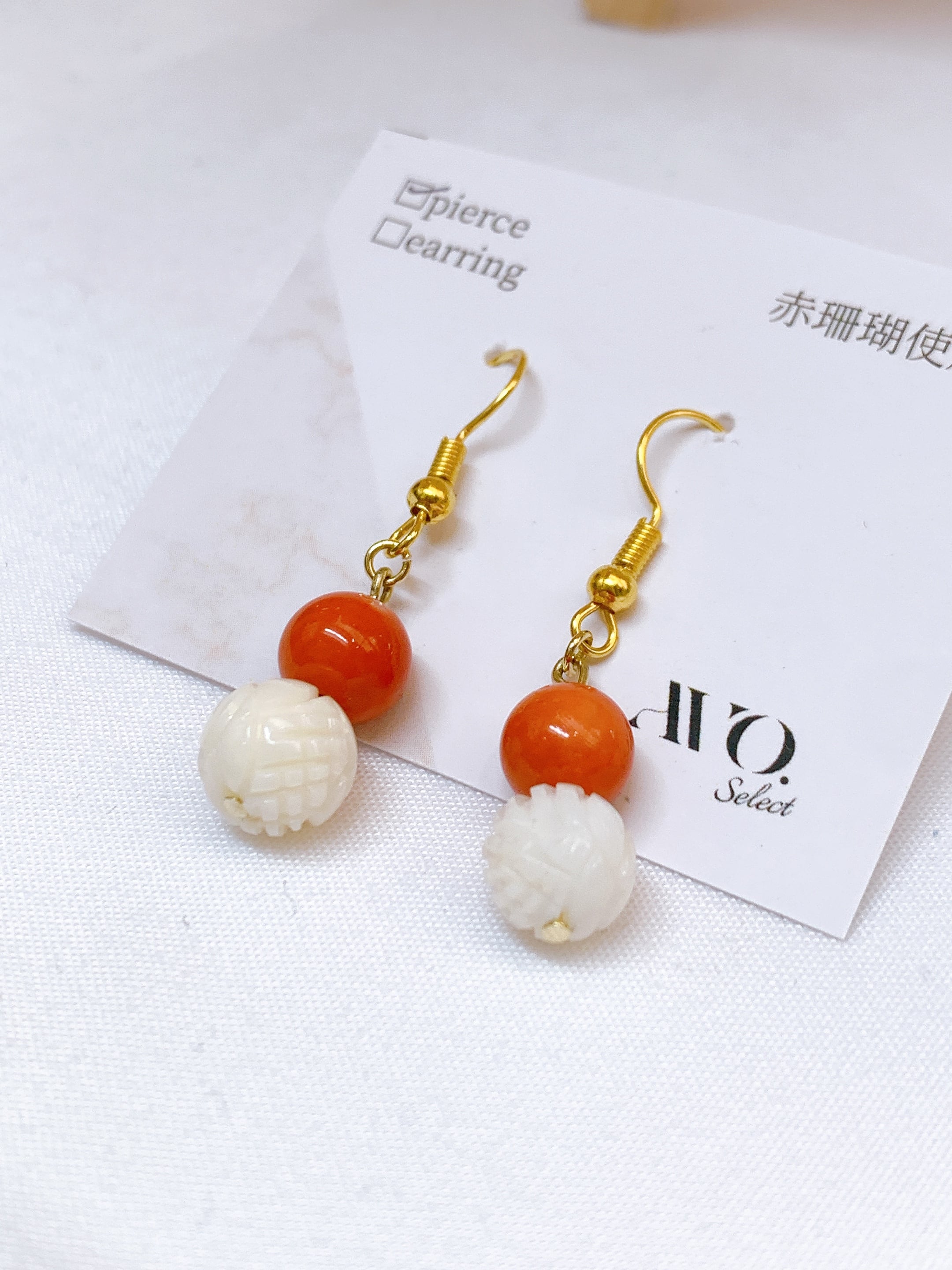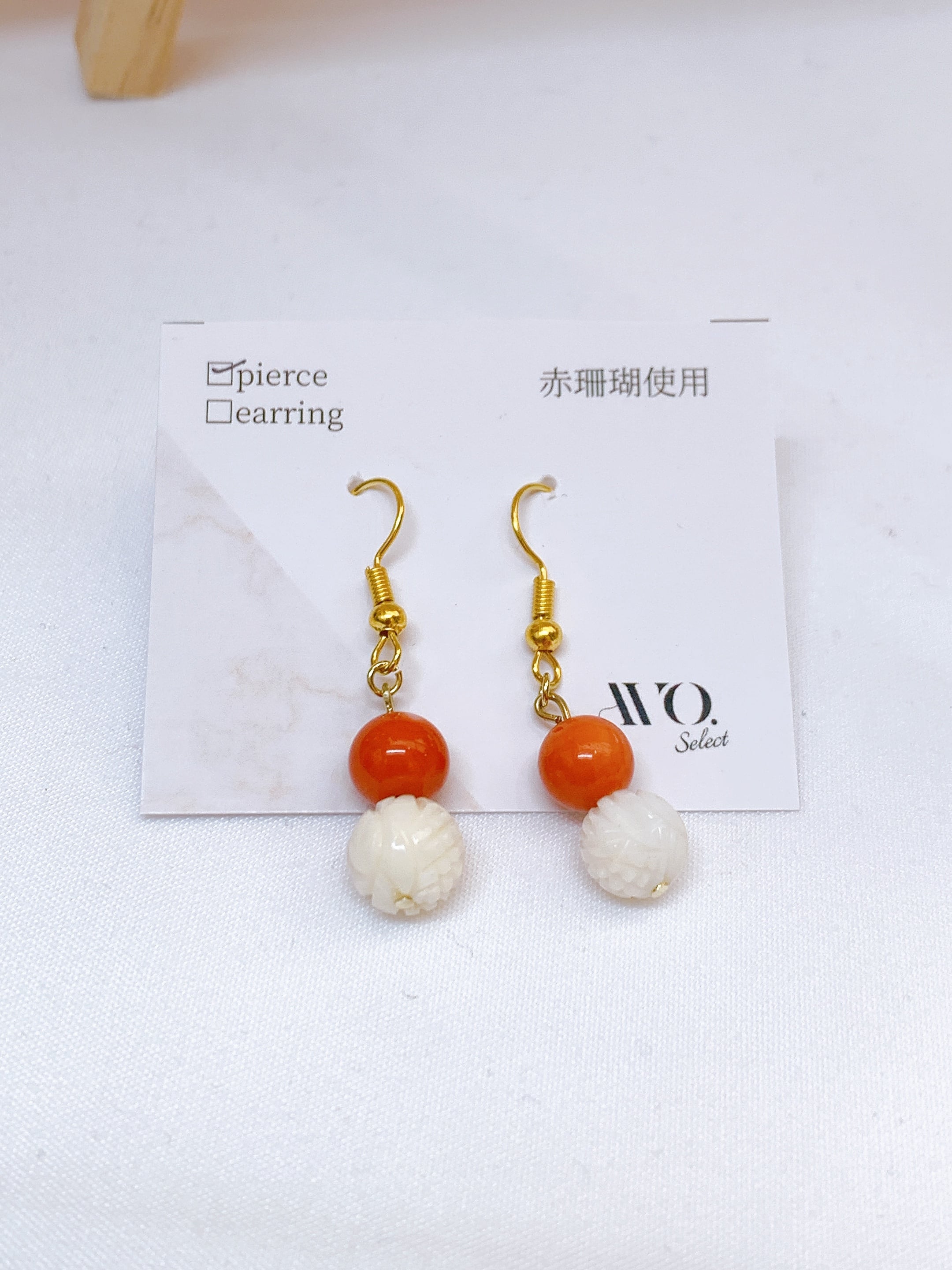 艶やかな赤珊瑚の深い赤色と柔らかな白が耳元にさりげない華やかさを添えてくれます。