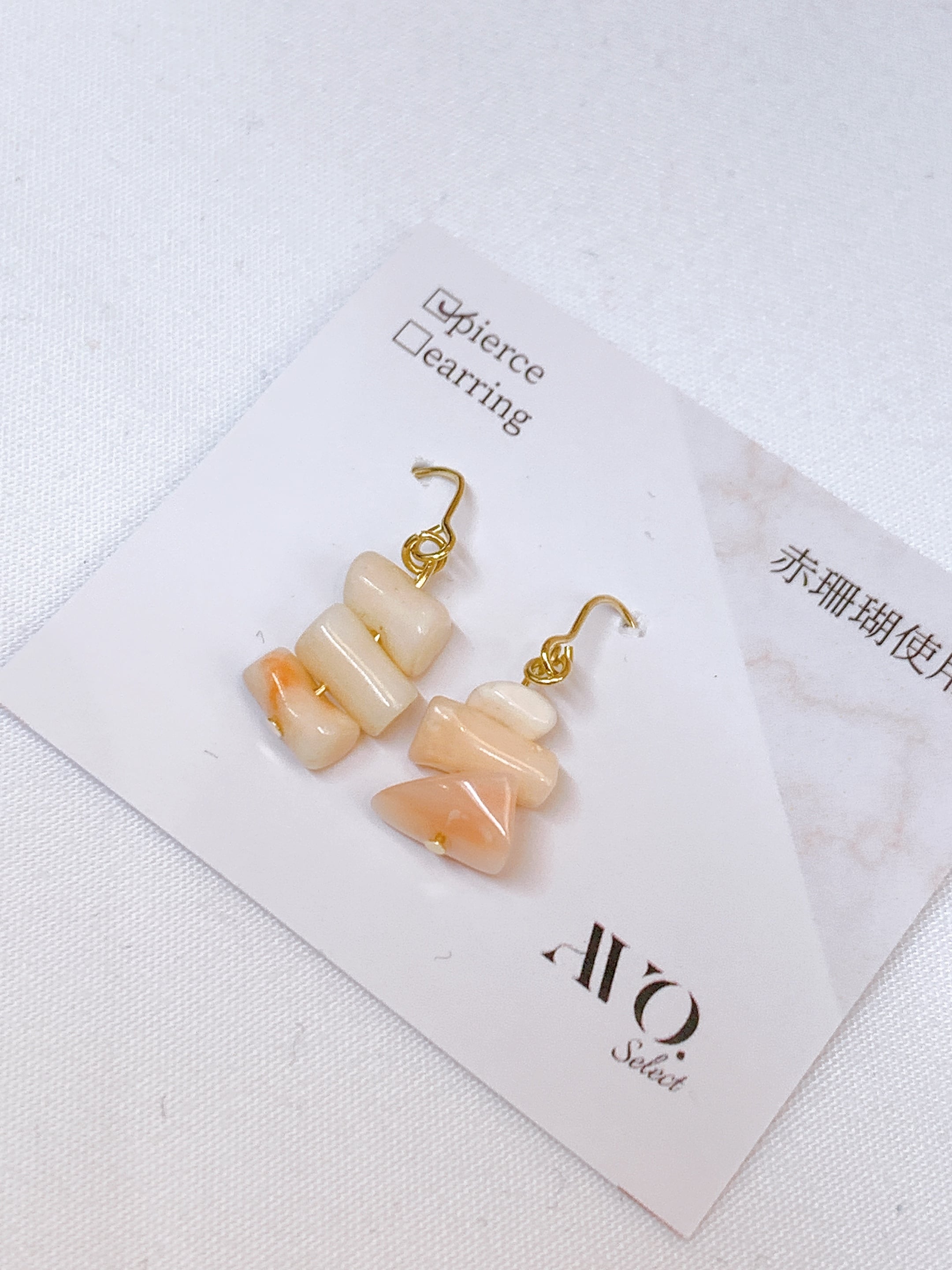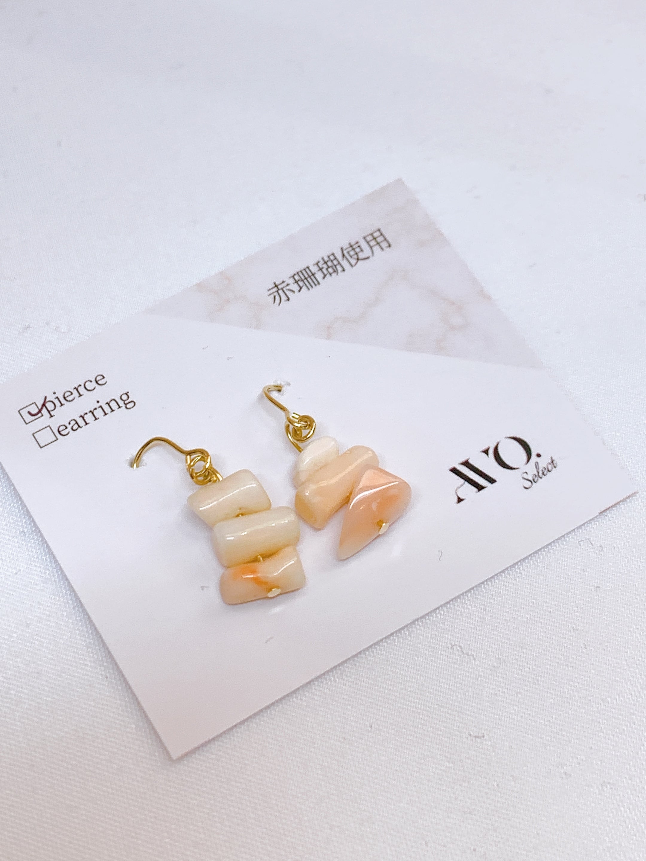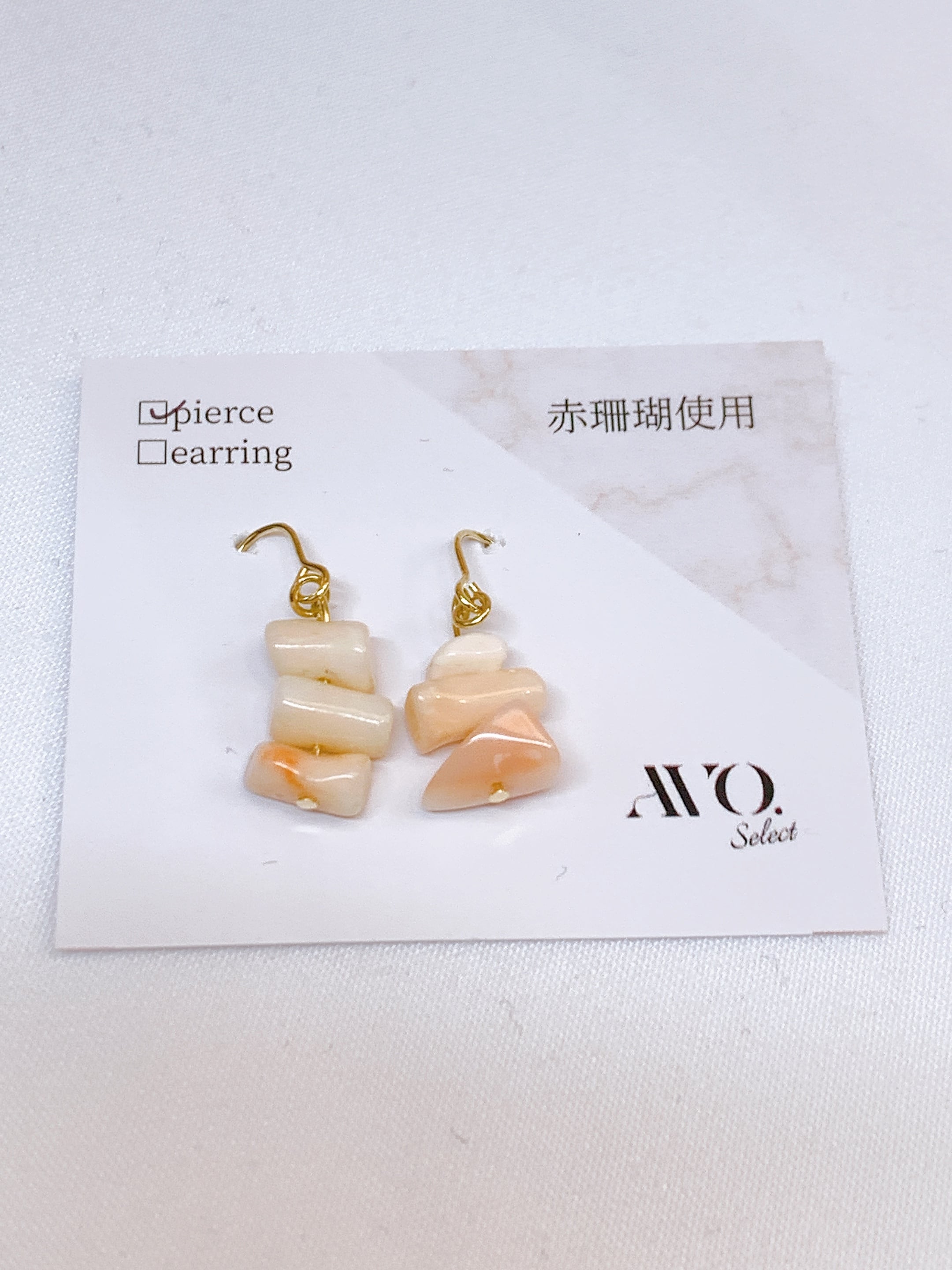 ほんのり桃色が混ざる、赤珊瑚の自然な表情を活かしたピアス/イヤリング。