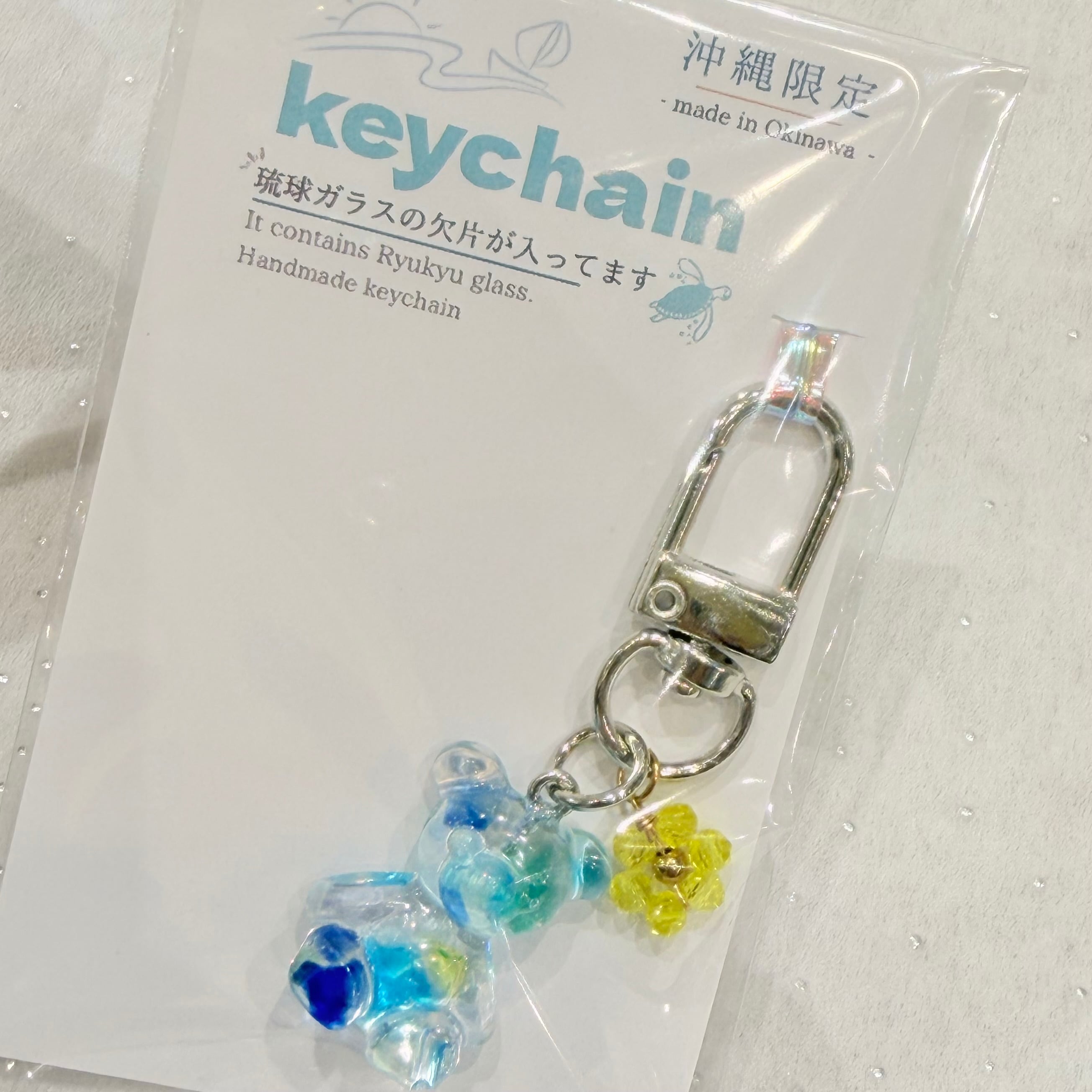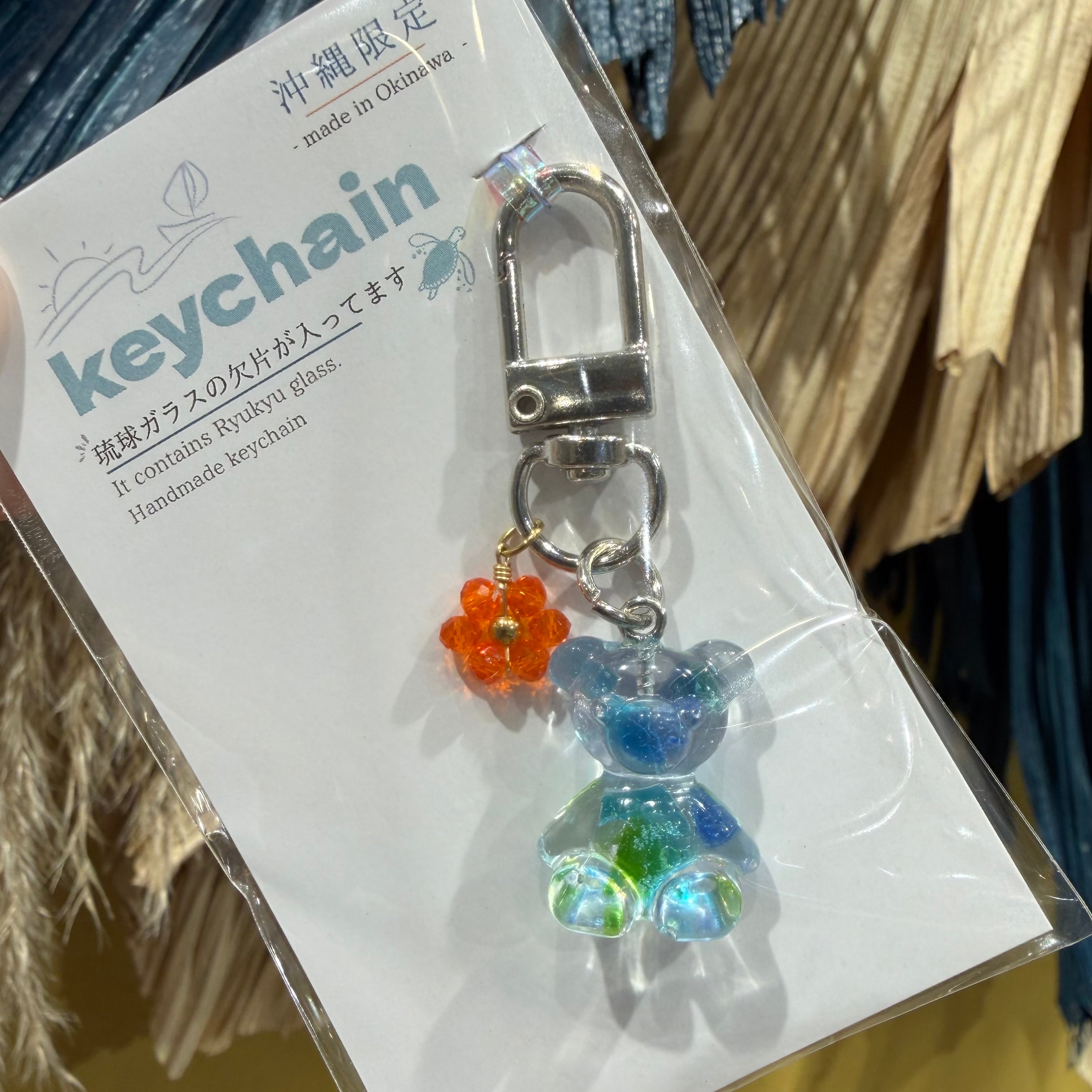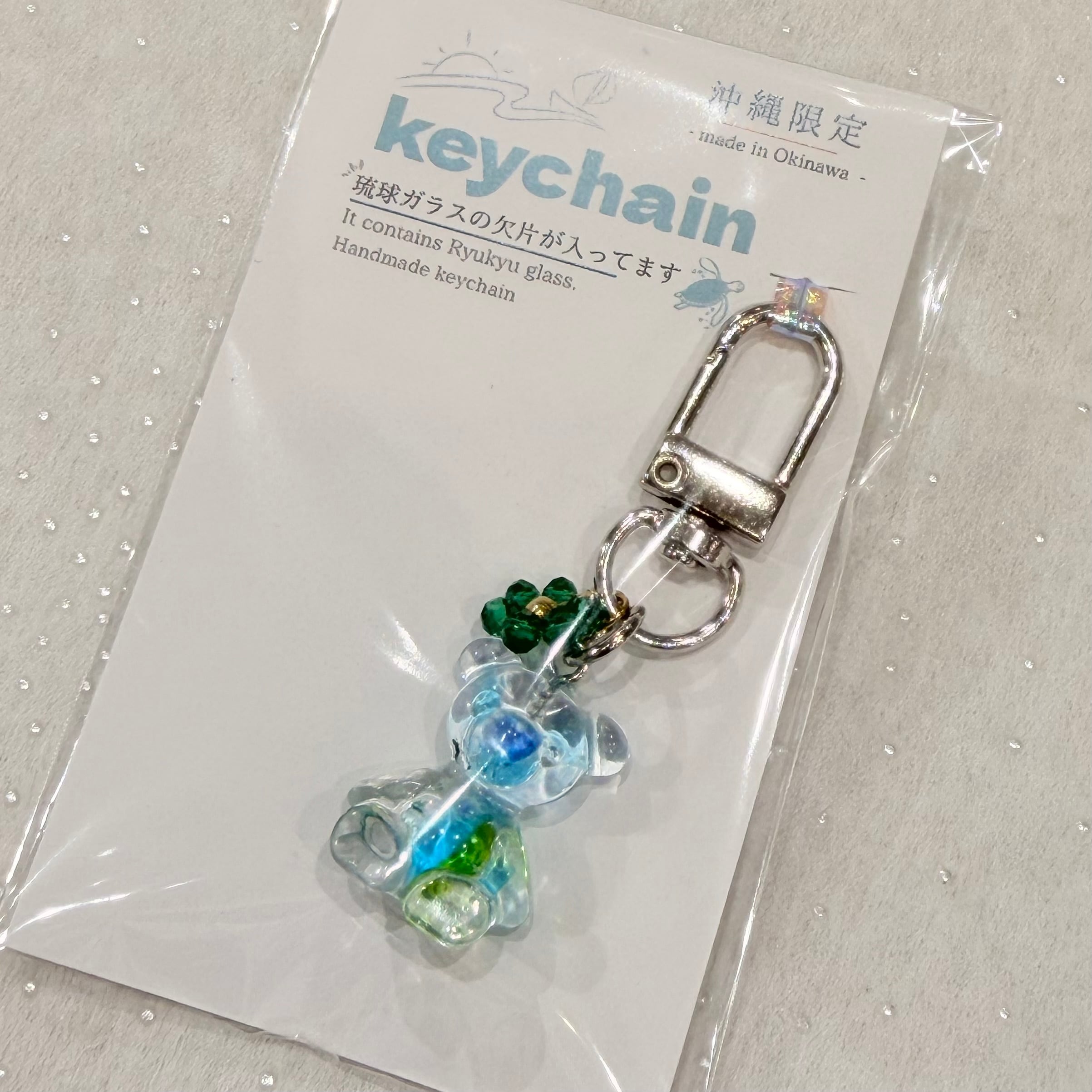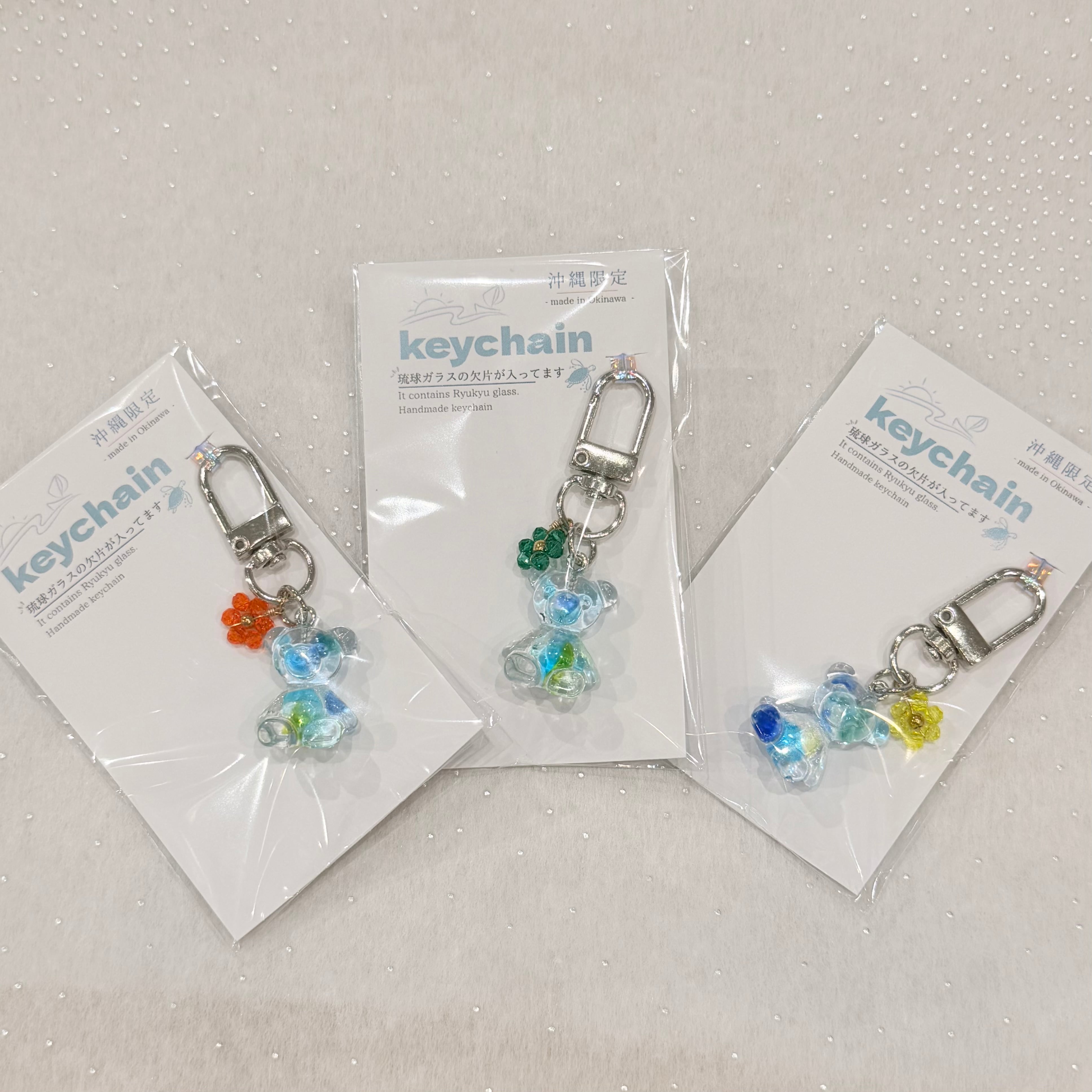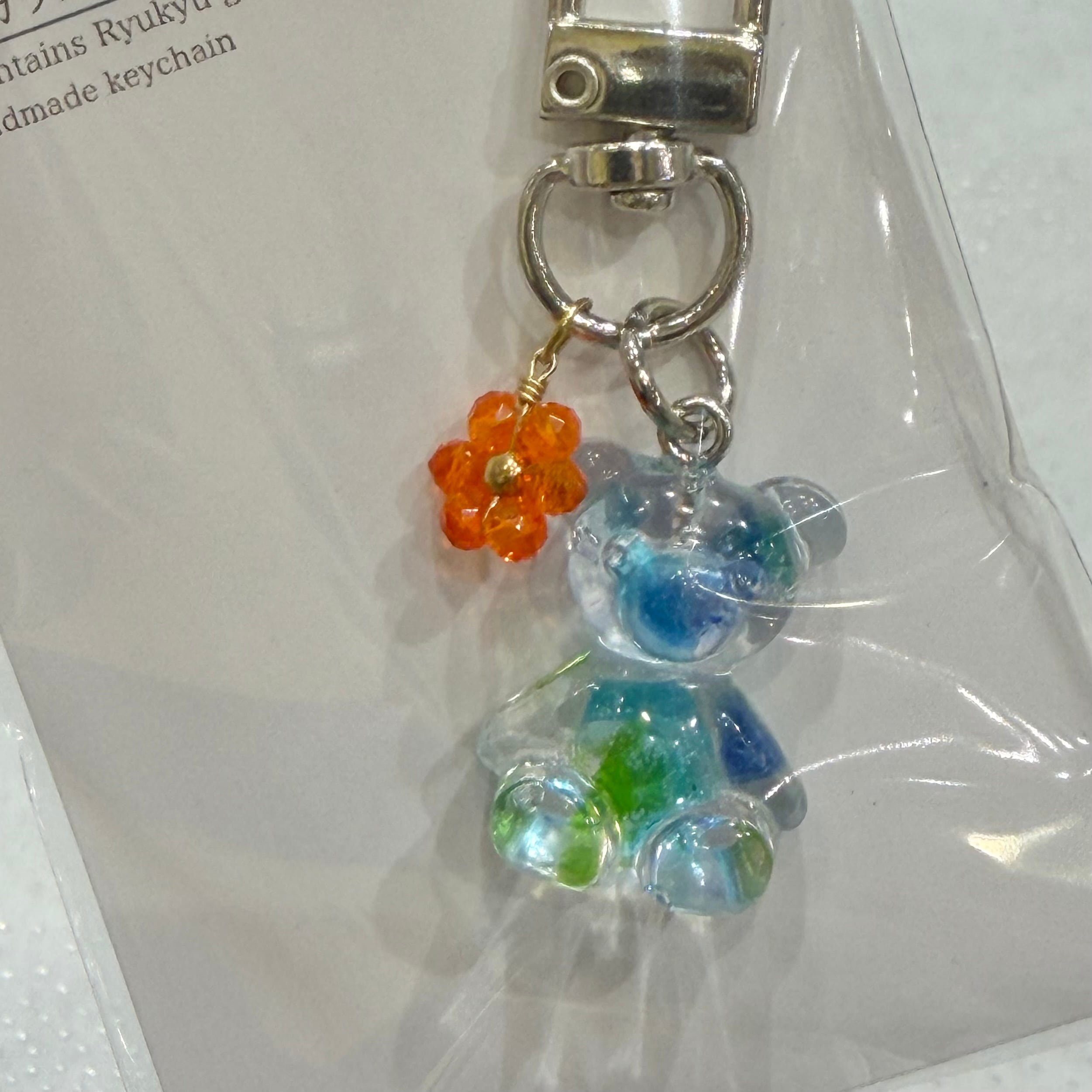 *琉球ガラス使用 くまキーホルダー(T-A76-3)