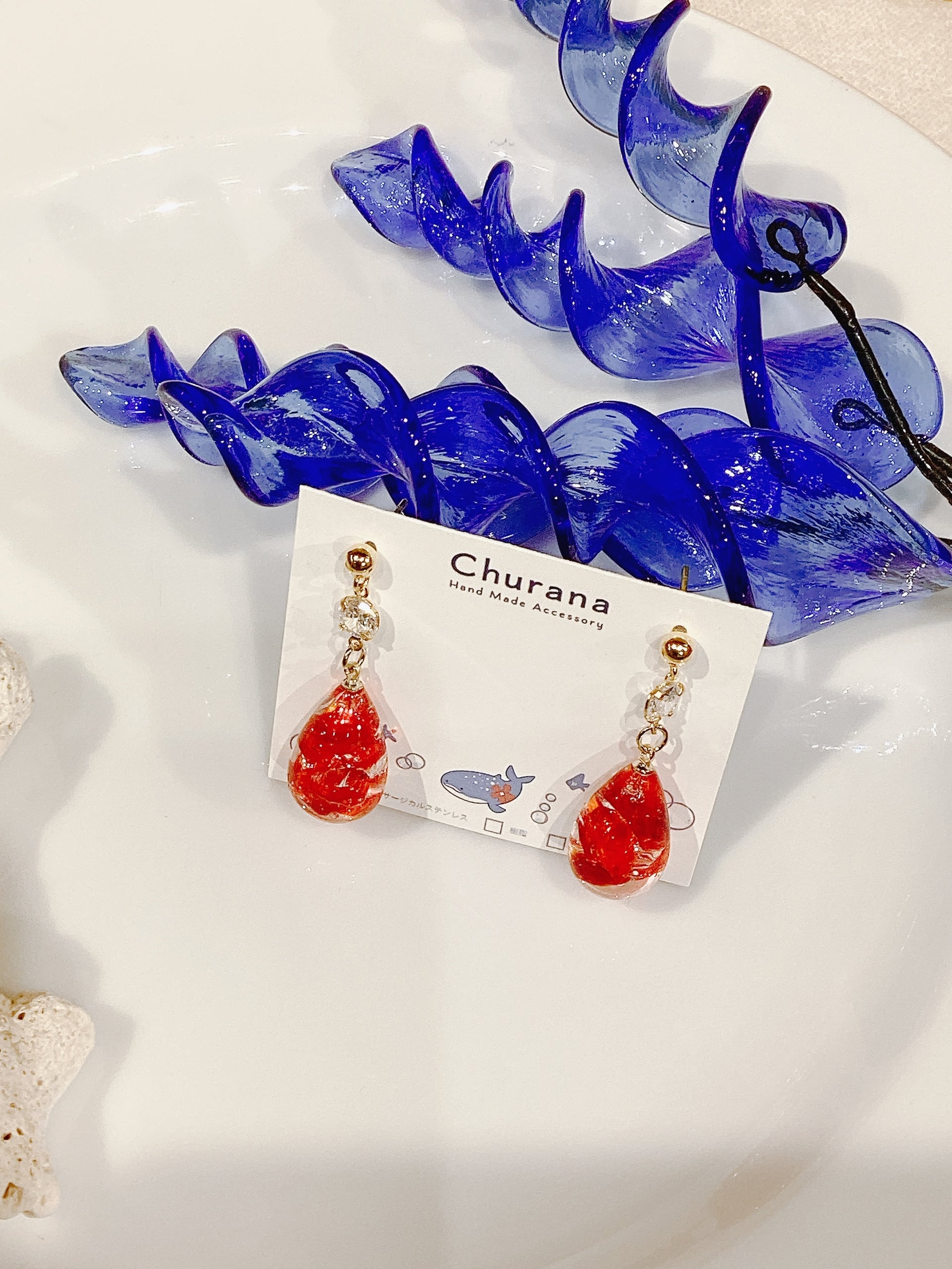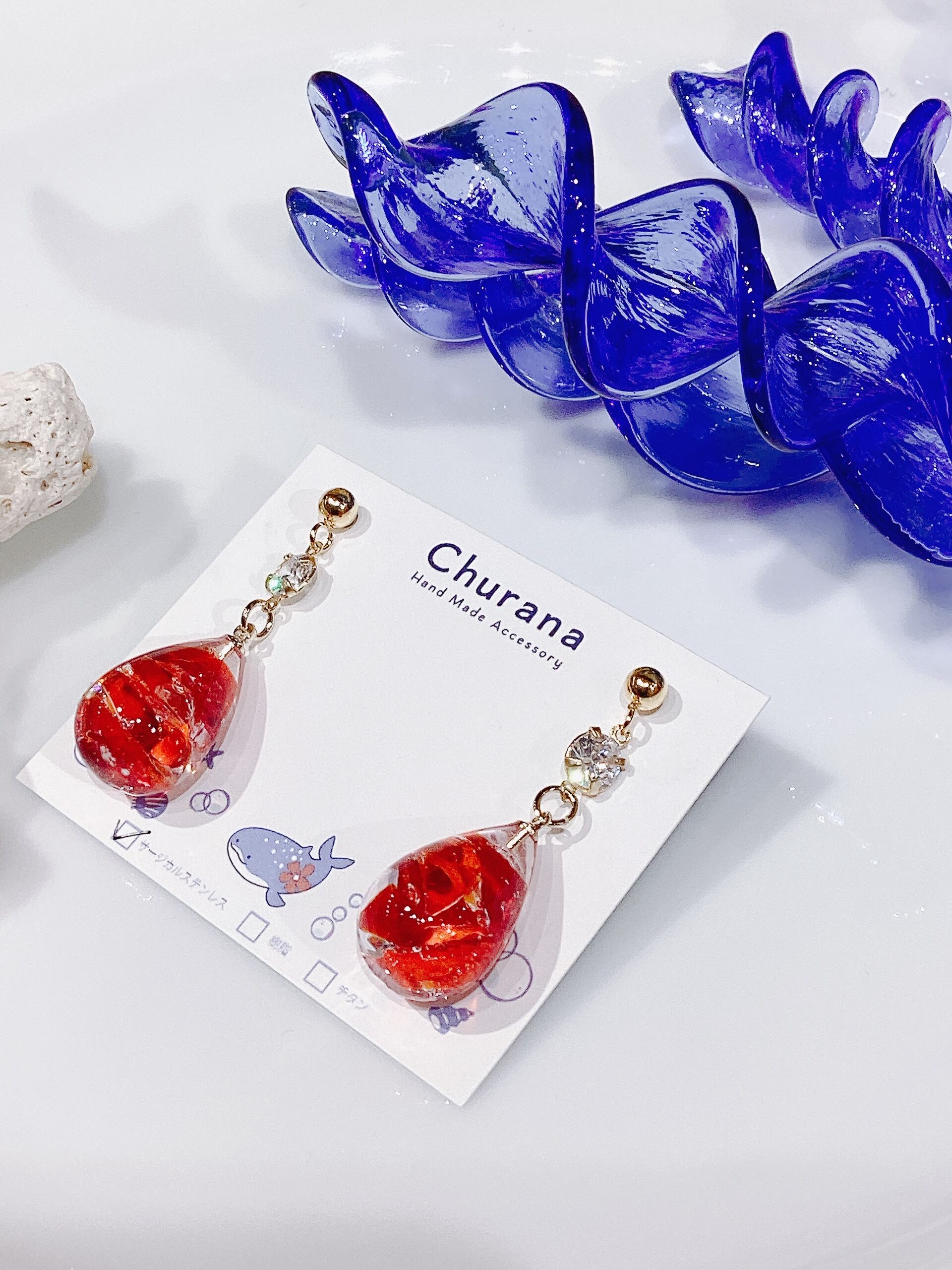 琉球ガラスのカケラを使用した繊細なデザイン。色とりどりの琉球ガラスは、まるで南国の海から生まれた宝石のように、さりげなく耳元を華やかにします。手作りの温もりが詰まったデザインは、光を受けてきらりと輝き、あなたの日常に特別な瞬間をもたらします!