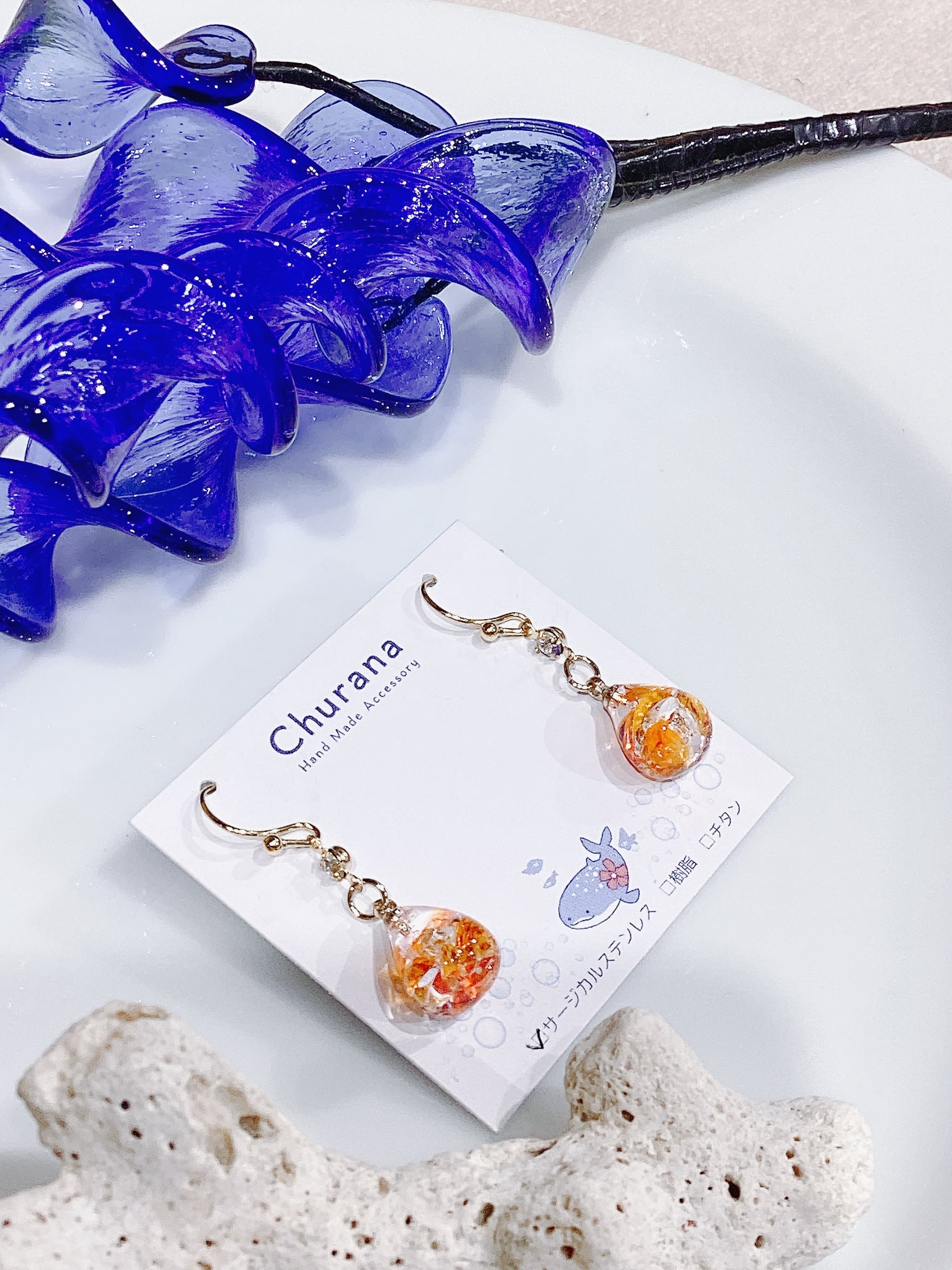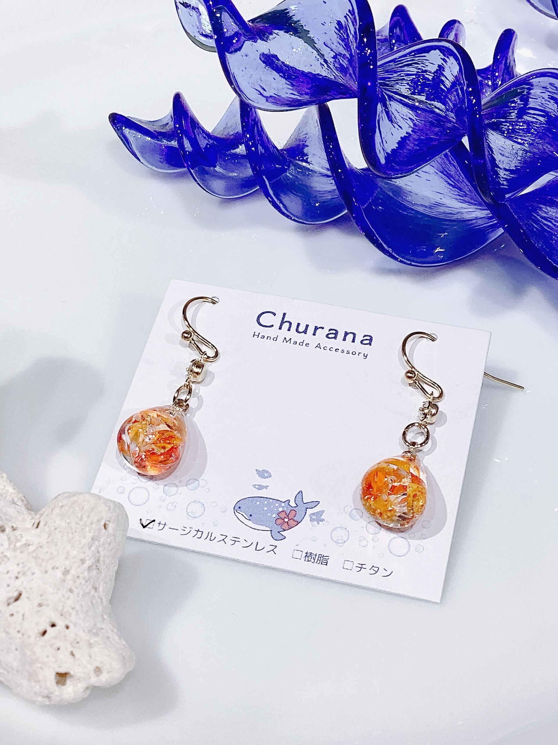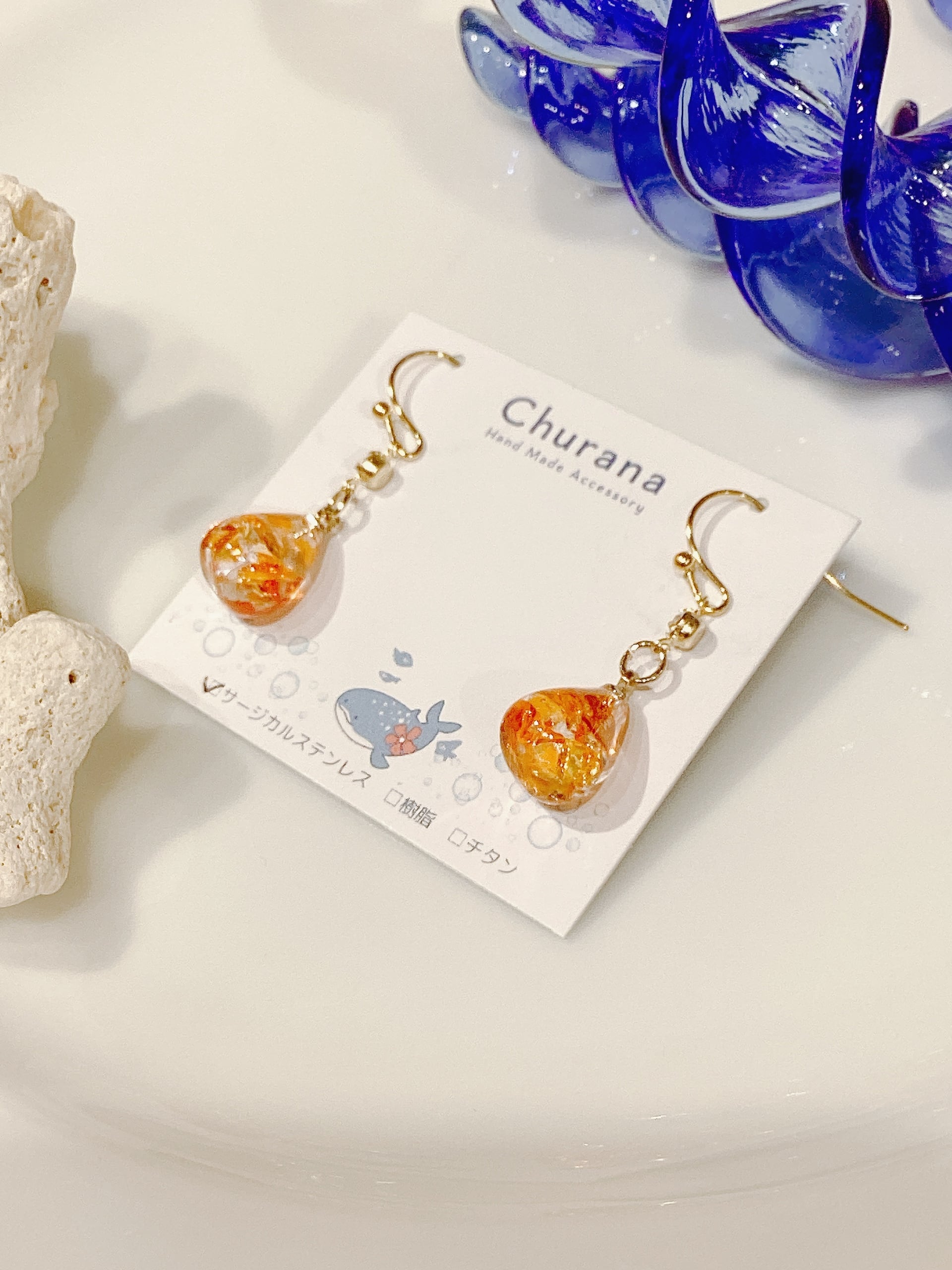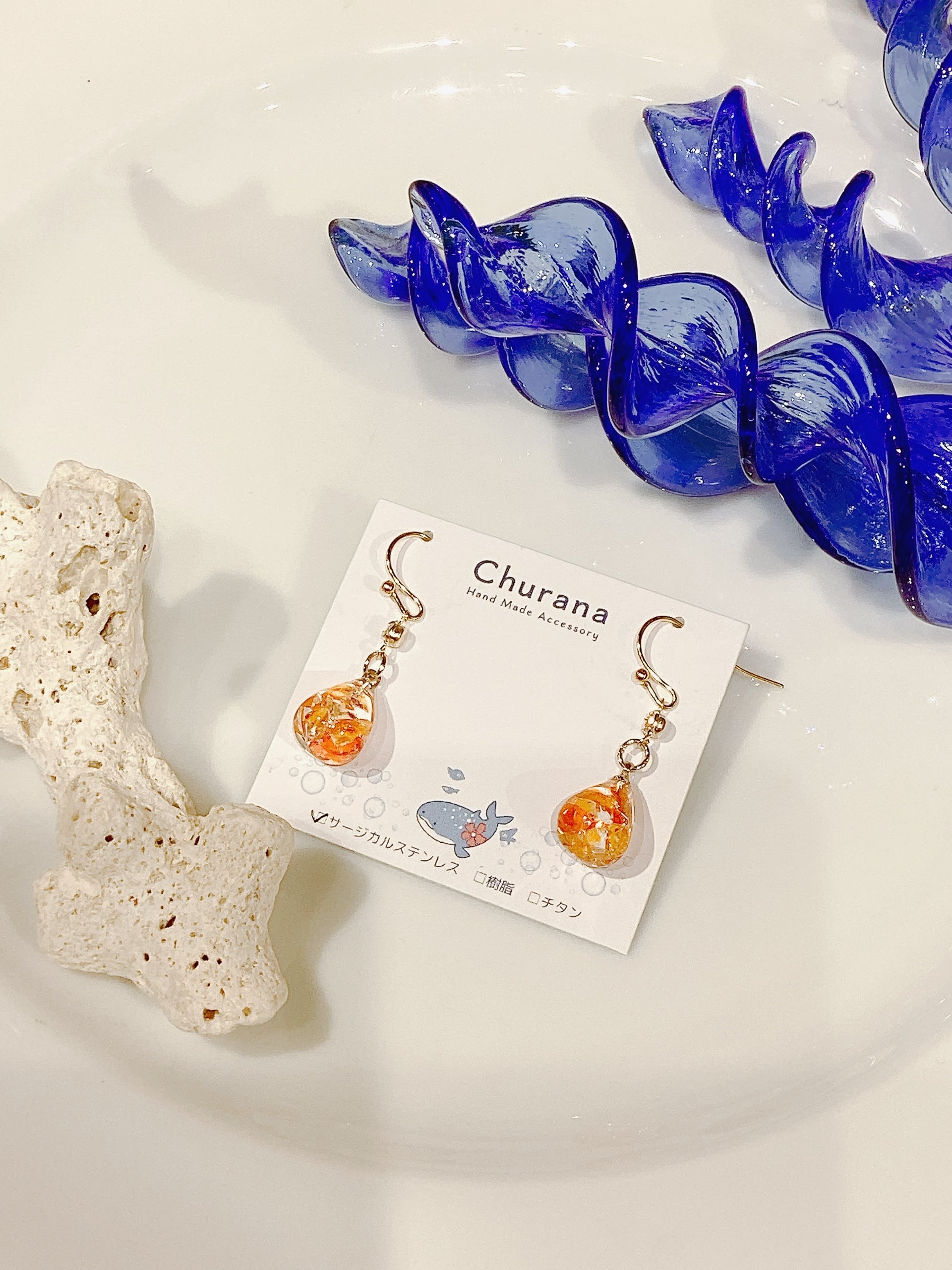 琉球ガラスのカケラを使用した繊細なデザイン。色とりどりの琉球ガラスは、まるで南国の海から生まれた宝石のように、さりげなく耳元を華やかにします。手作りの温もりが詰まったデザインは、光を受けてきらりと輝き、あなたの日常に特別な瞬間をもたらします!