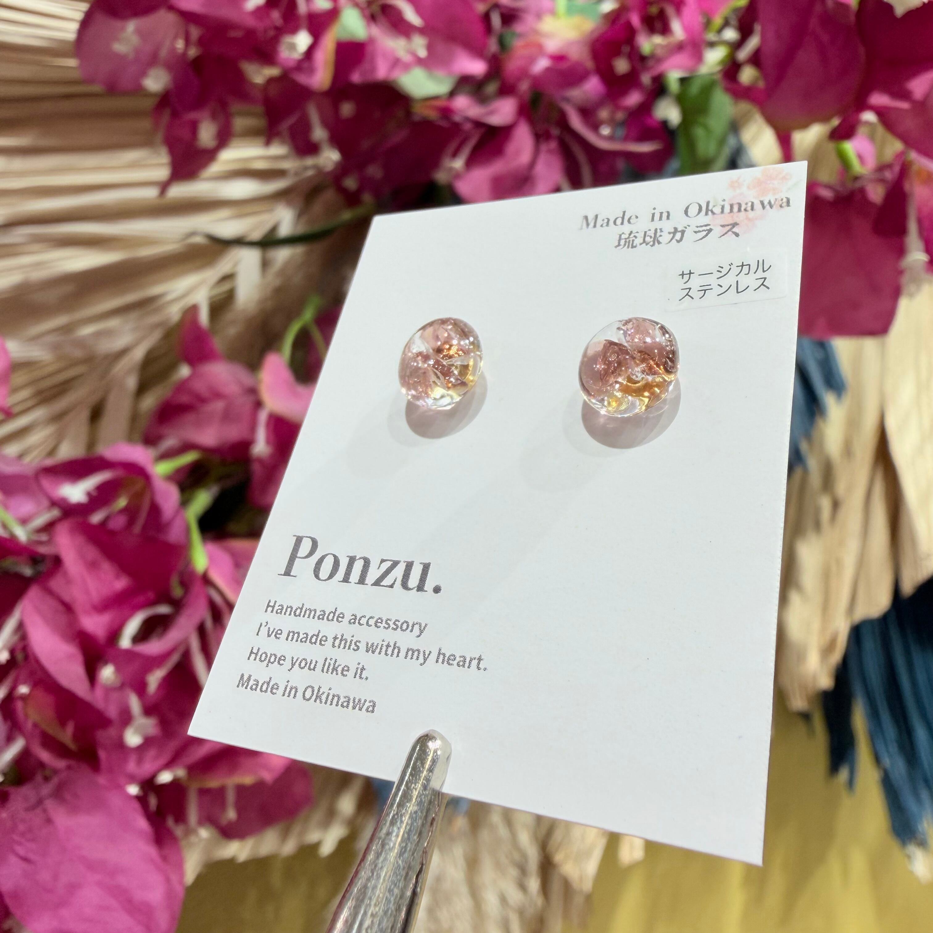 琉球ガラスを使用したハンドメイドアクセサリー。