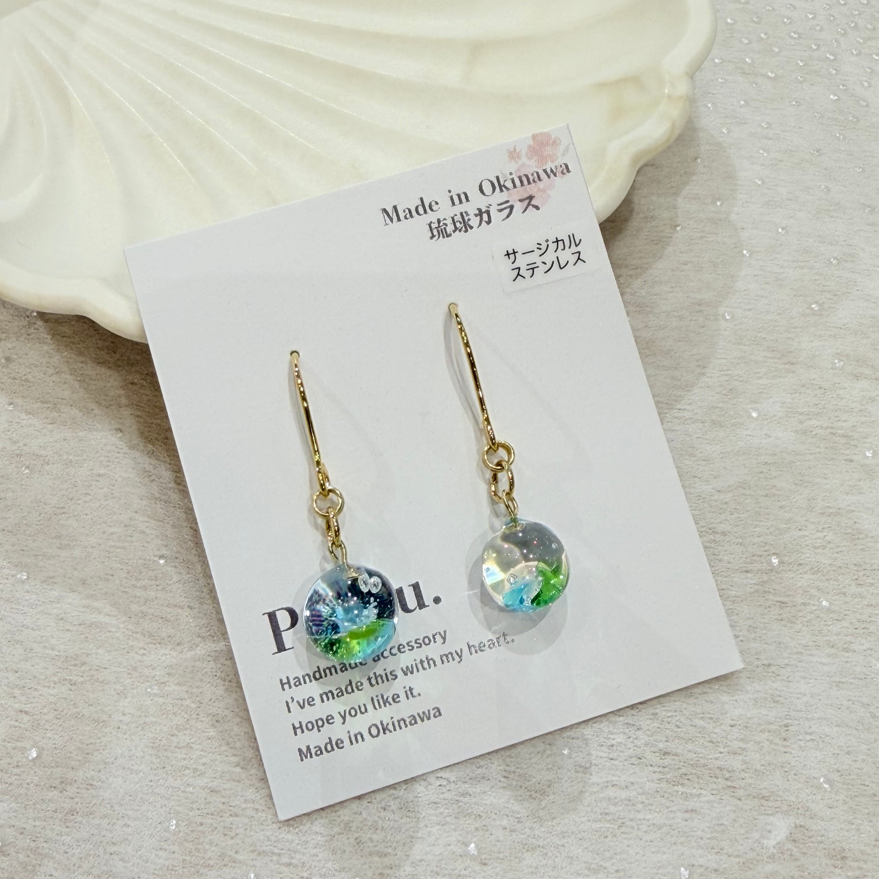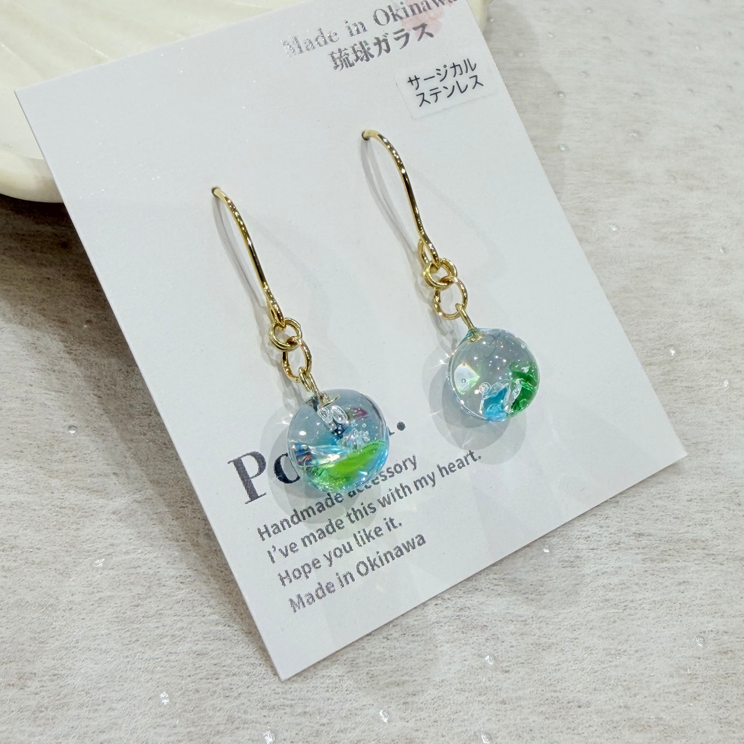 #琉球ガラス #ピアス #ハンドメイド #沖縄アクセサリー #ブルー #グリーン