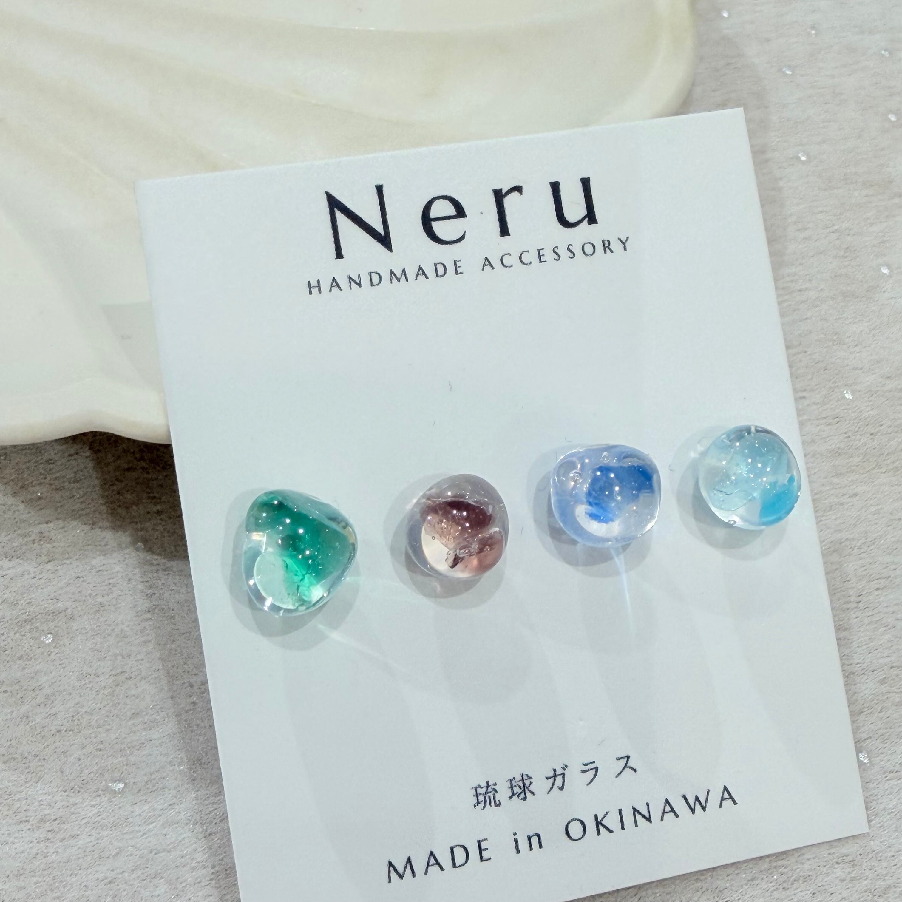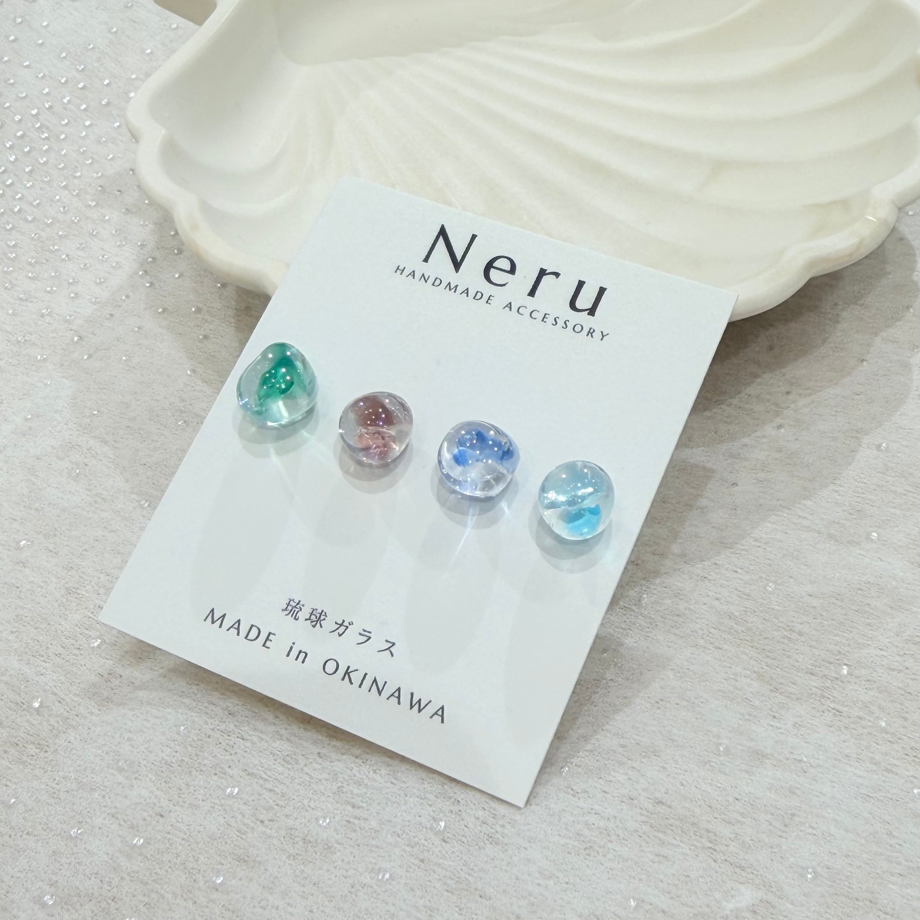わずか5ミリの琉球ガラスのカケラを使用した繊細なデザイン。色とりどりの琉球ガラスは、まるで南国の海から生まれた宝石のように、さりげなく耳元を華やかにします。手作りの温もりが詰まったデザインは、光を受けてきらりと輝き、あなたの日常に特別な瞬間をもたらします!
