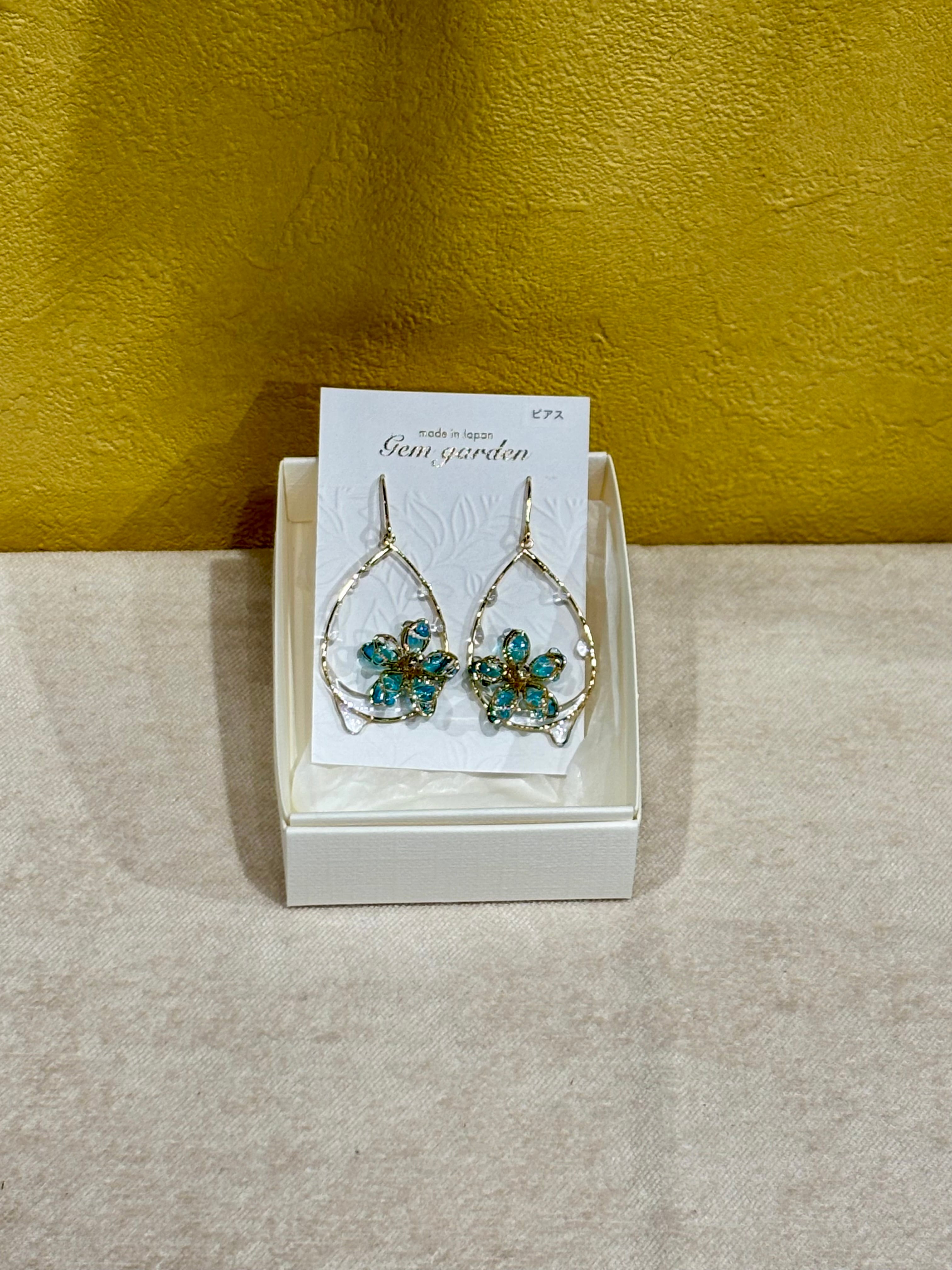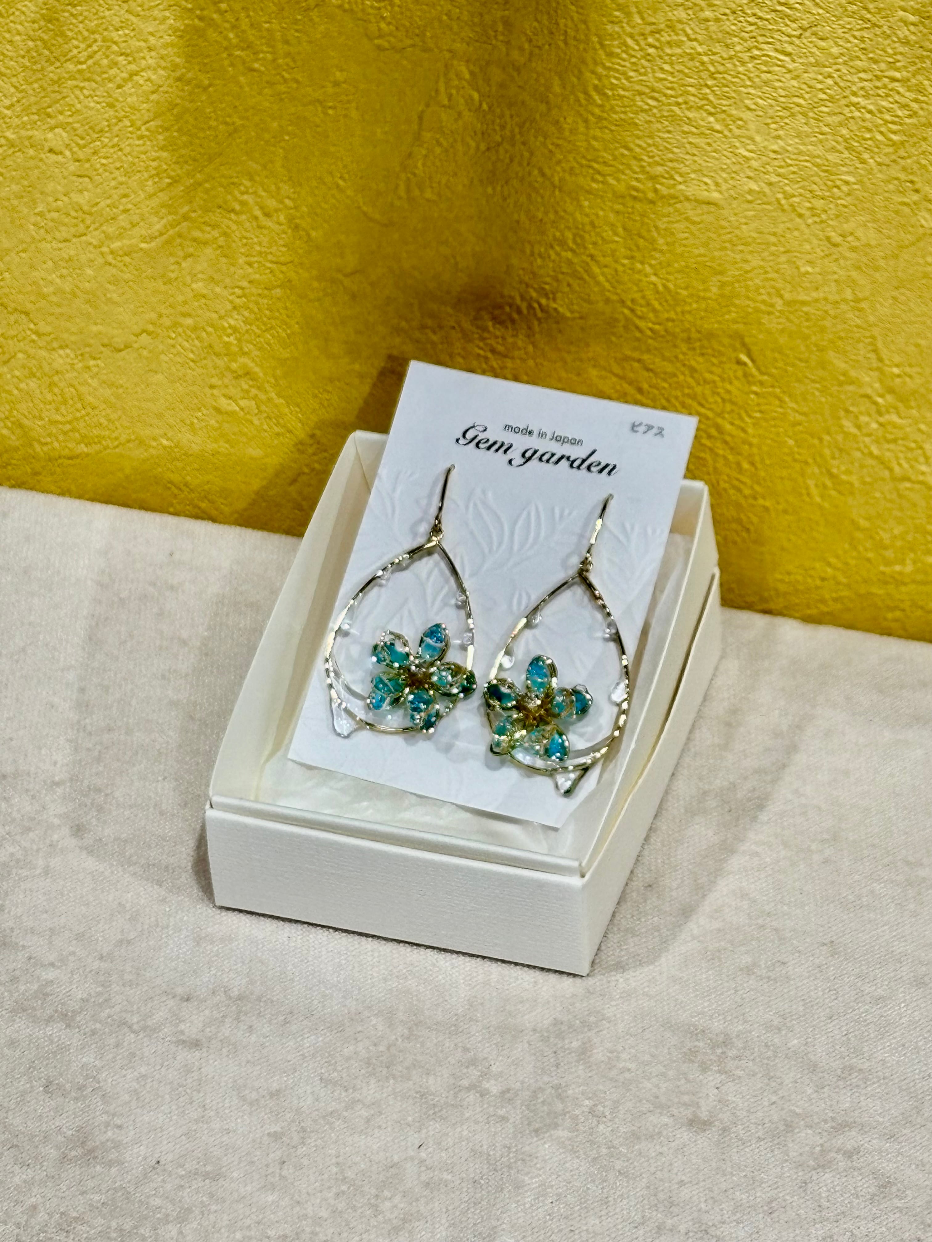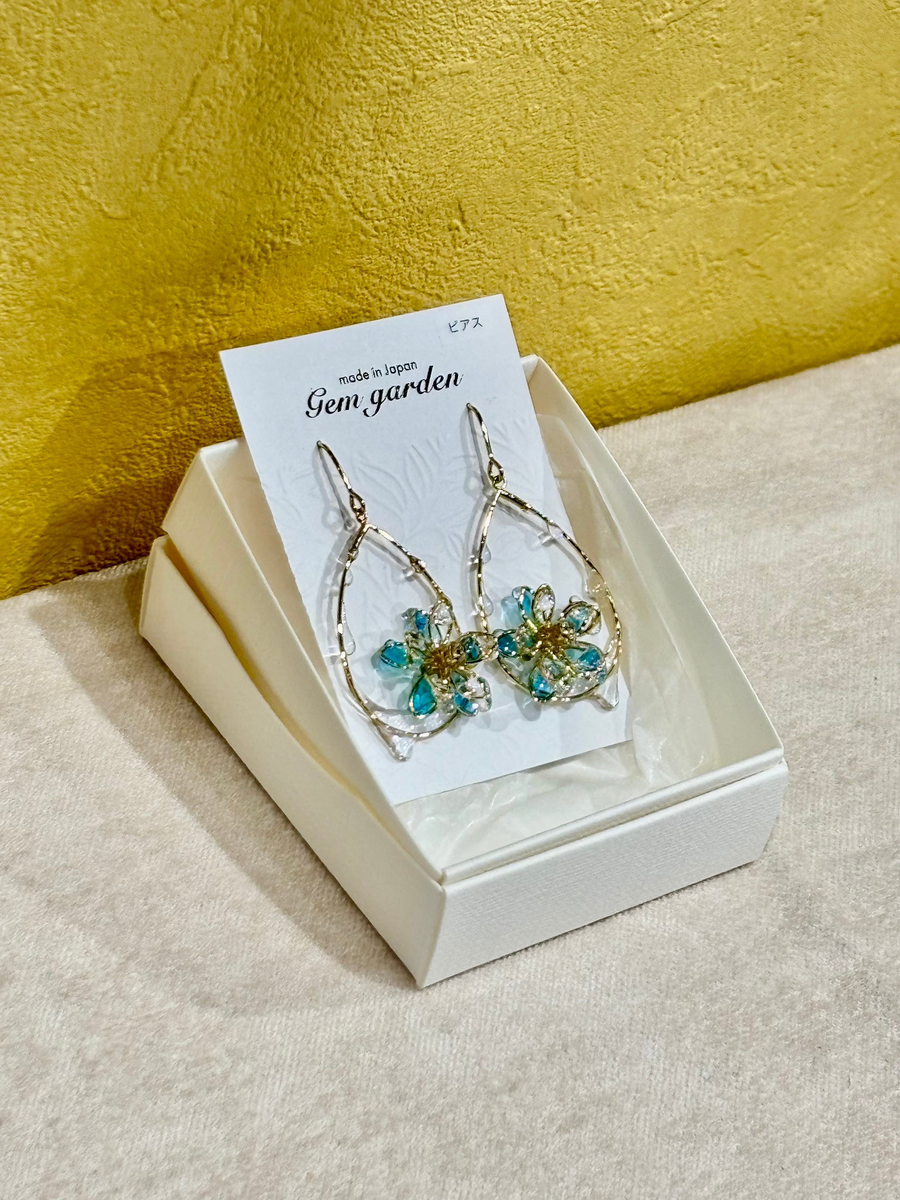 透明感のあるブルーは光を受け優しく輝き、耳元に上品な華やかさをプラスしてくれます。