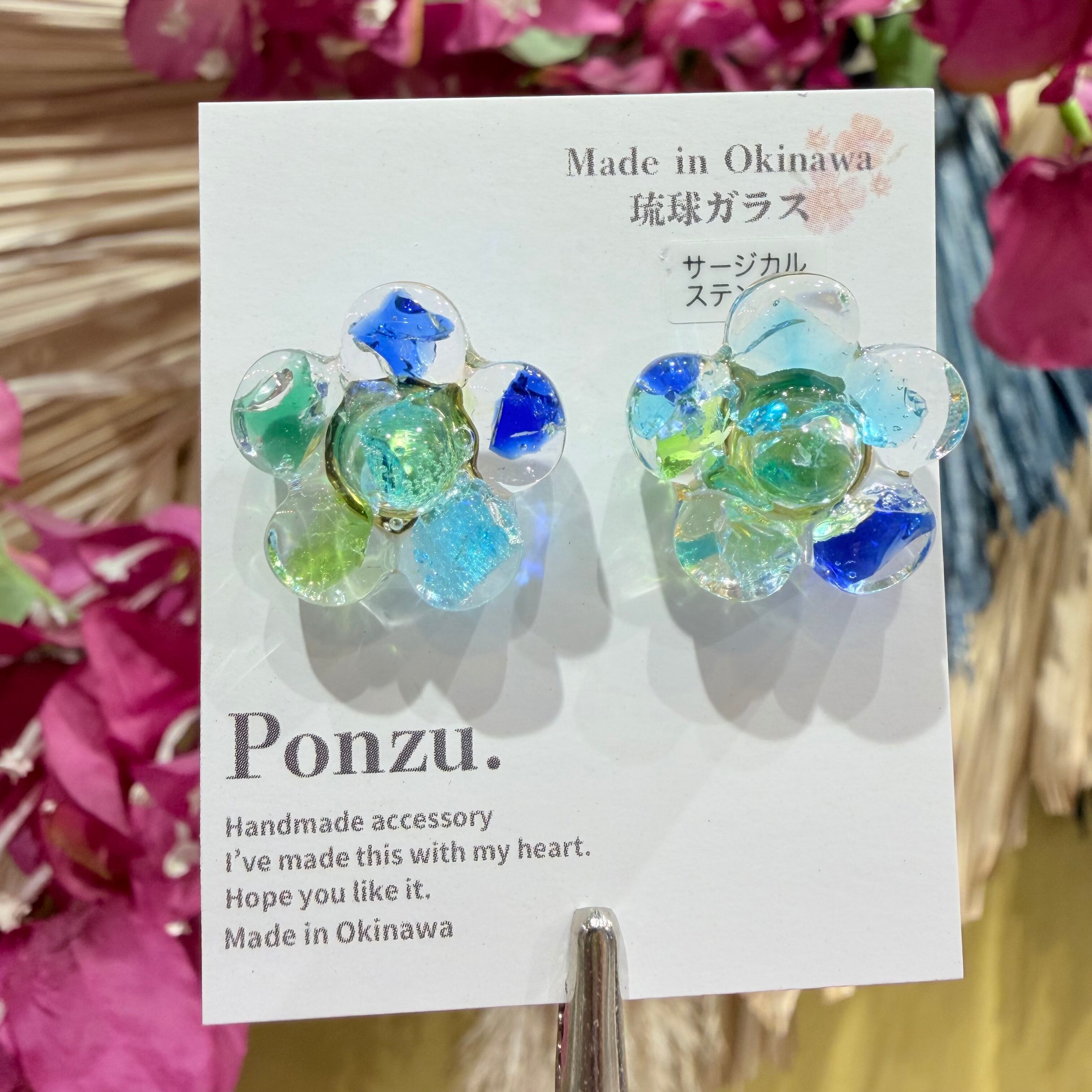 #琉球ガラス #ピアス #ハンドメイド #沖縄アクセサリー #ブルー #グリーン