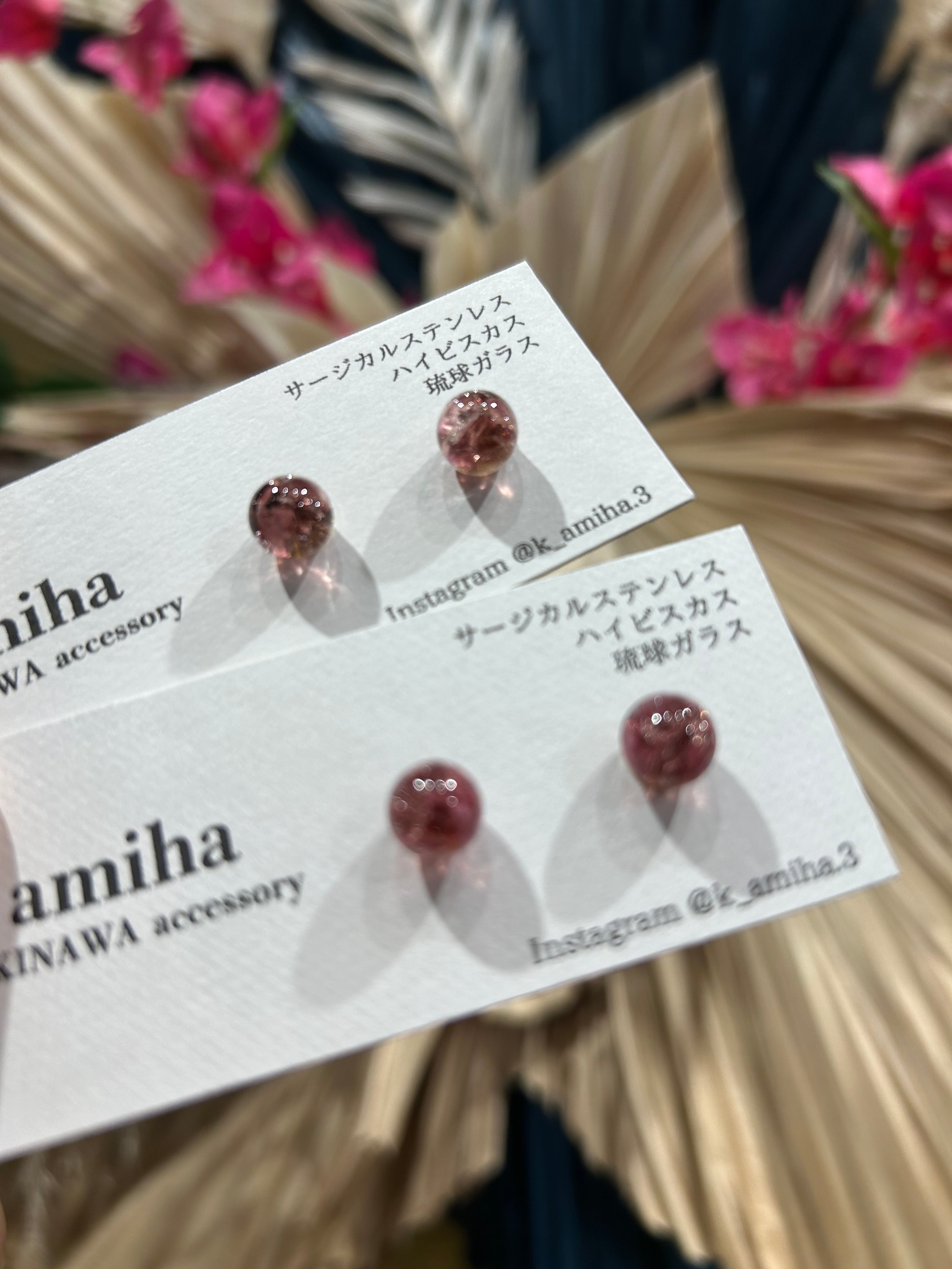 沖縄の自然を感じる、ハイビスカスと琉球ガラスを使用した可愛らしいピアスが登場しました!