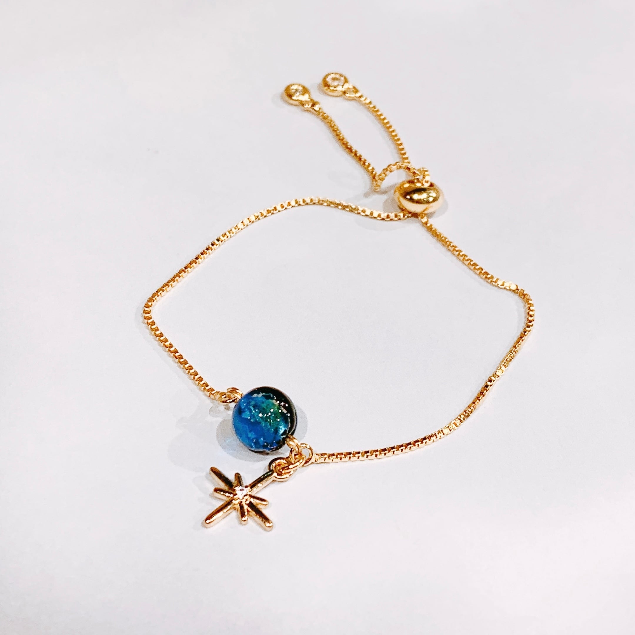 ゴールドチェーンと北極星モチーフのチャームが、上品さと可憐さをプラス。