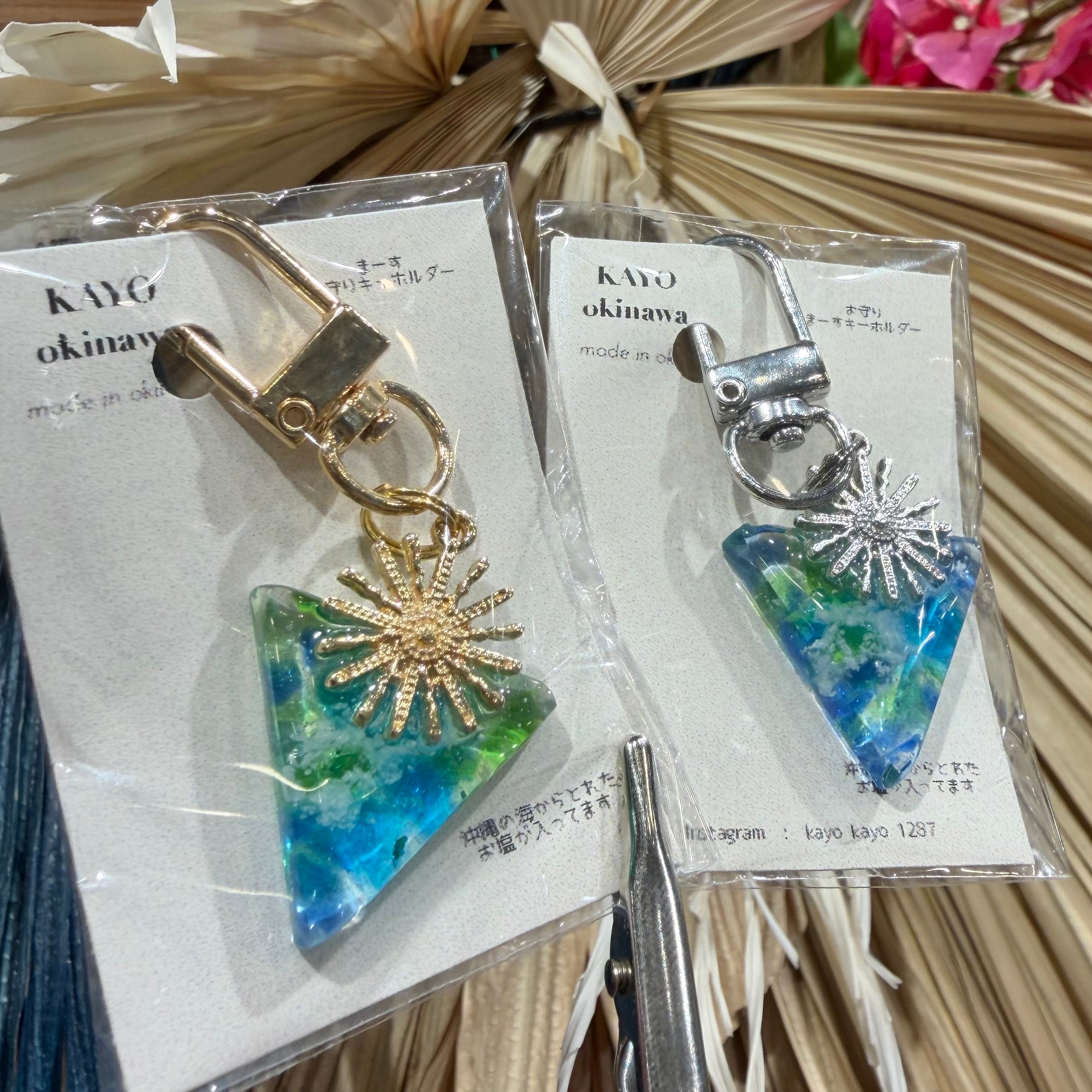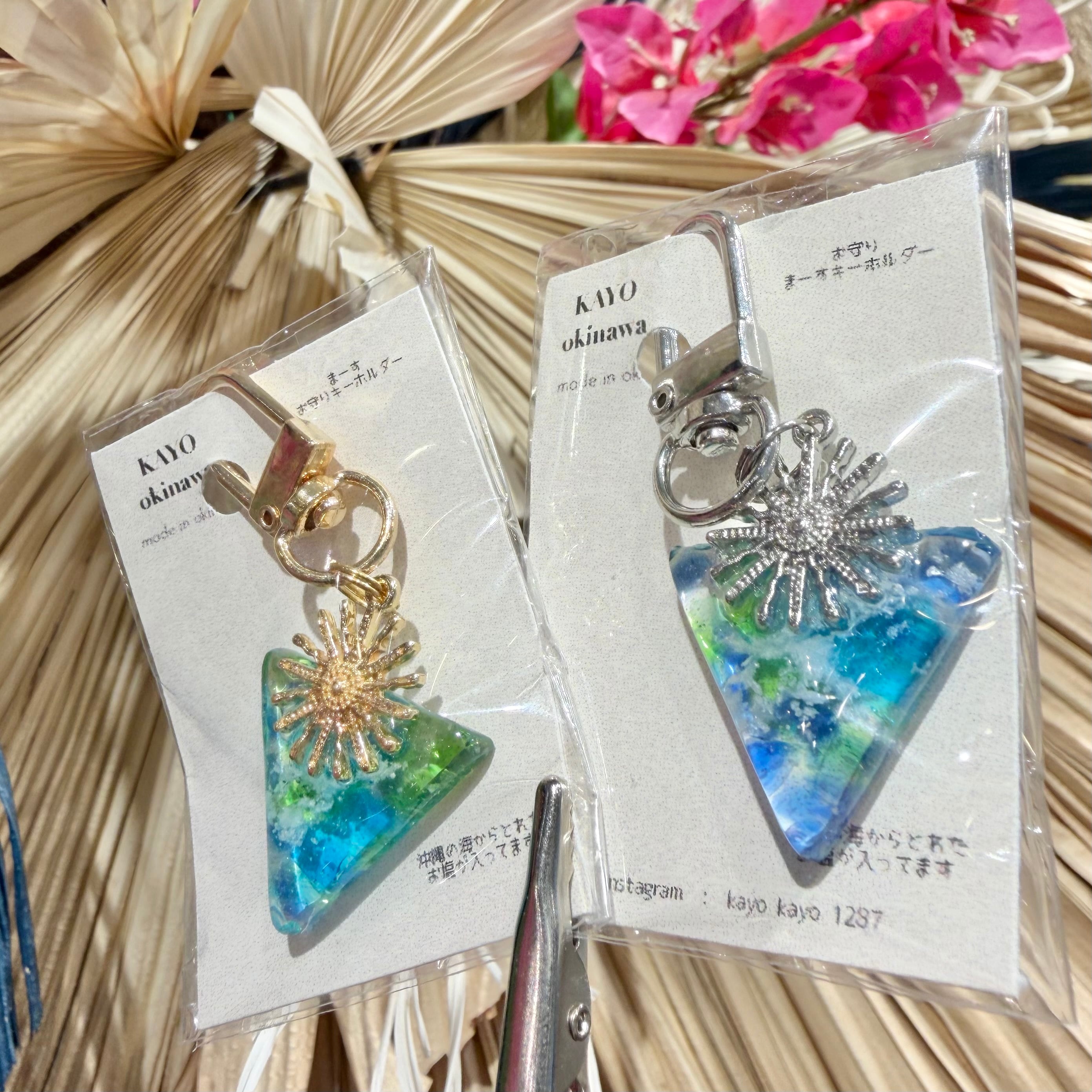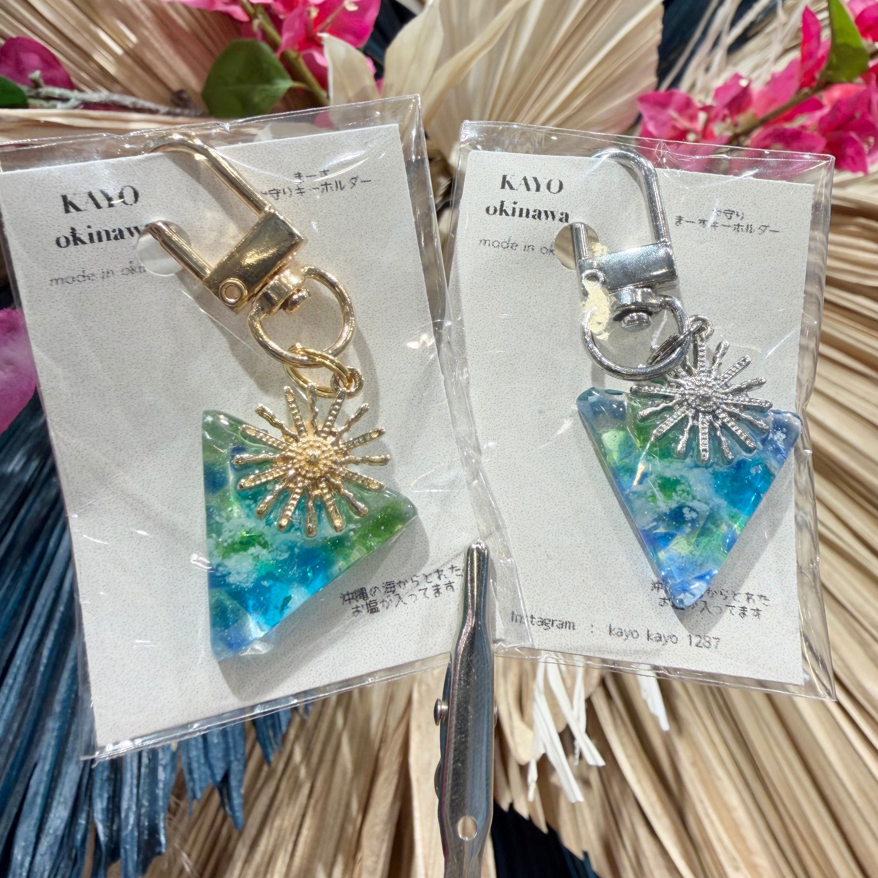 まるで沖縄の大自然を閉じ込めたような美しいデザインのキーホルダーです。