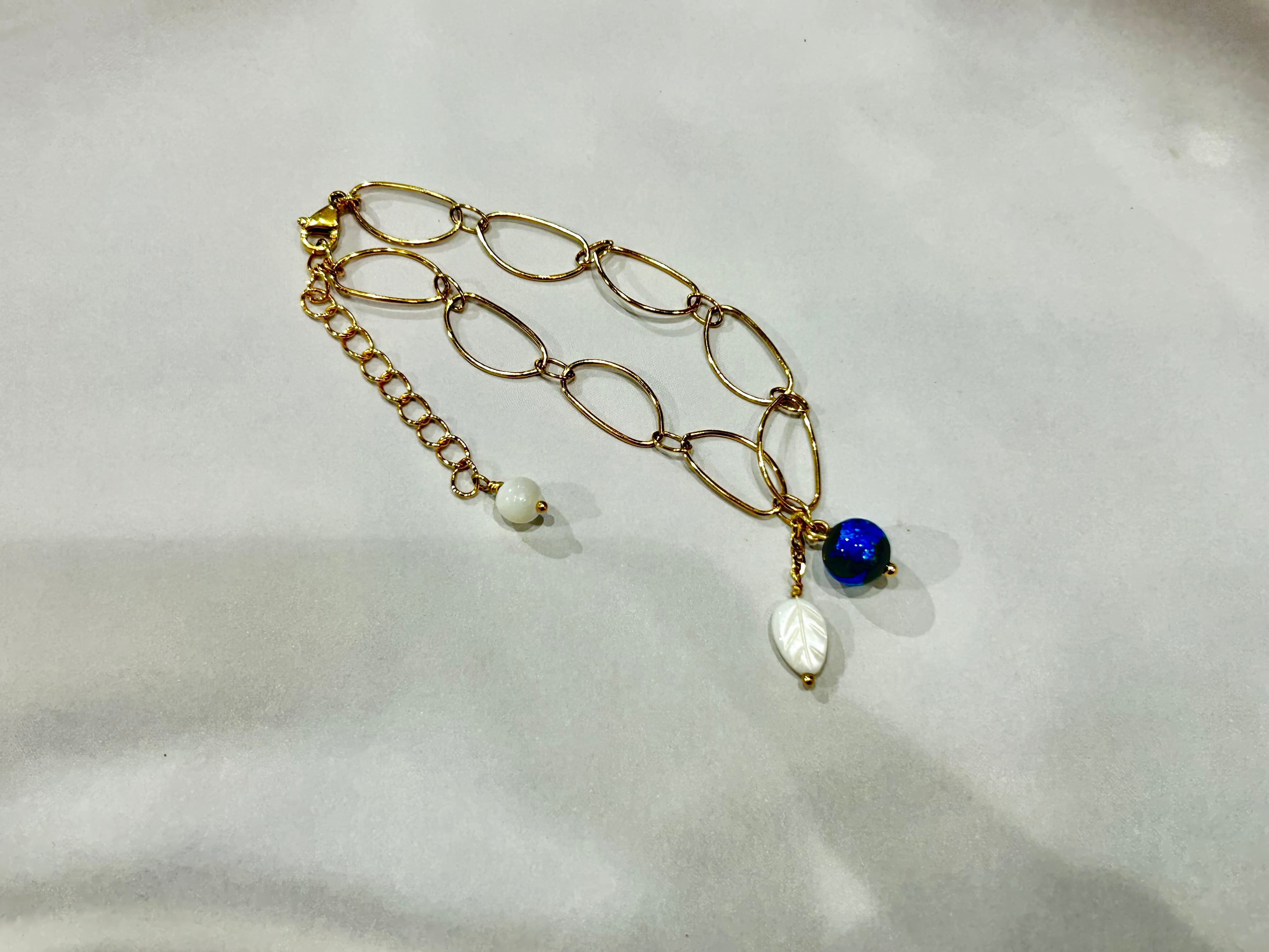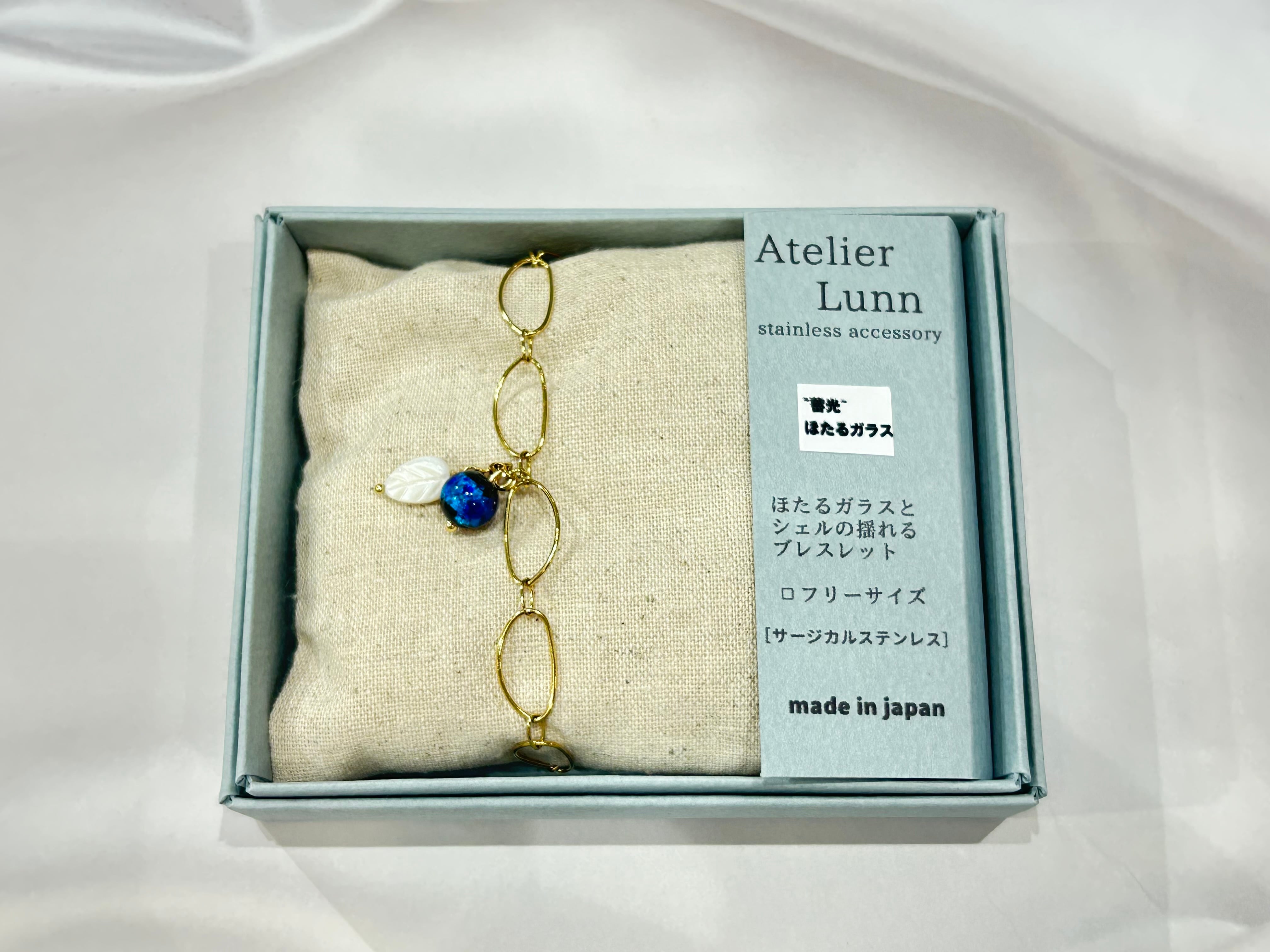 沖縄の美しい海を感じさせる、シェルブレスレット ホタルガラス リーフが登場しました!ホタルガラスとシェルが織りなす揺れるデザインは、まるで海のそよ風を感じるかのように、優雅な雰囲気を演出します。