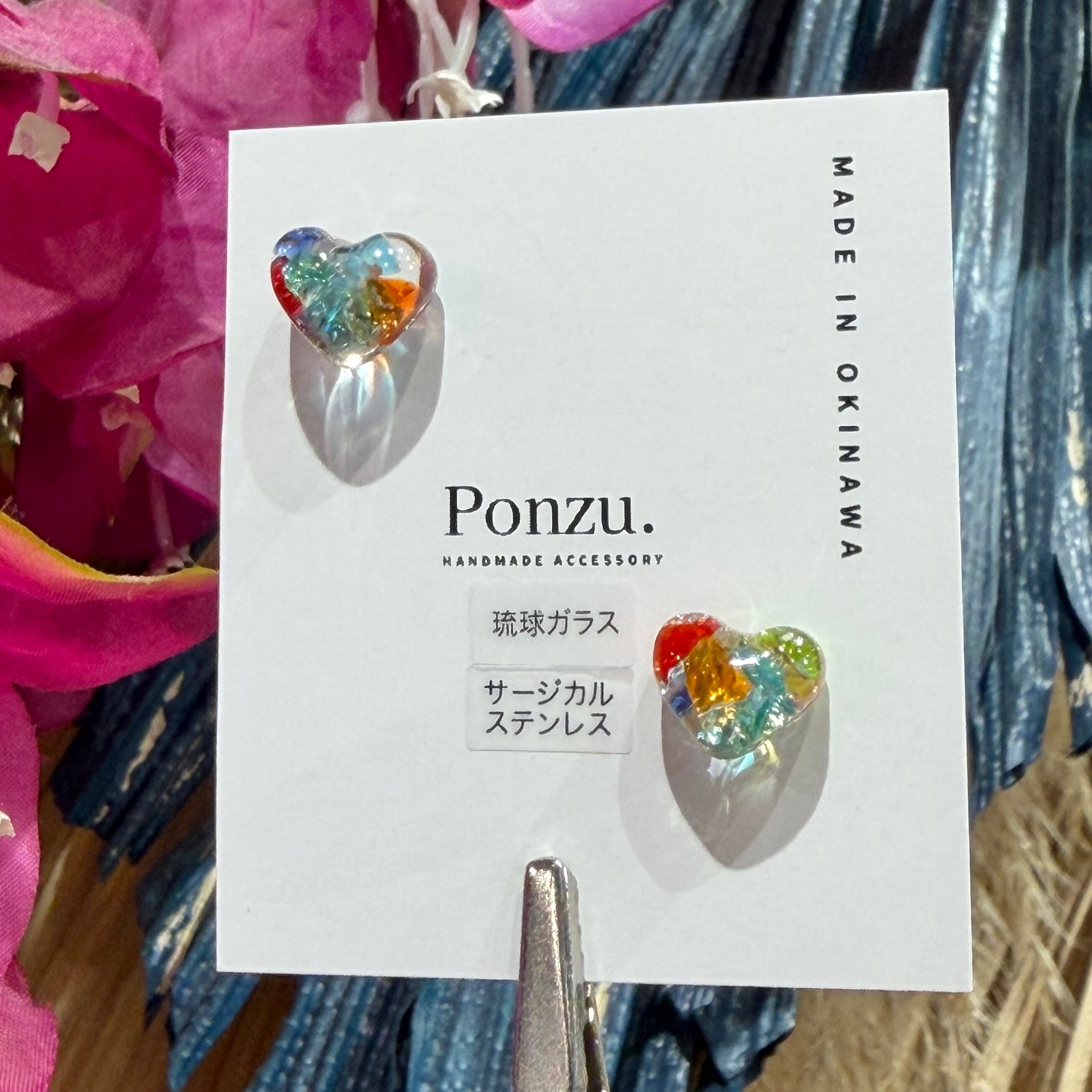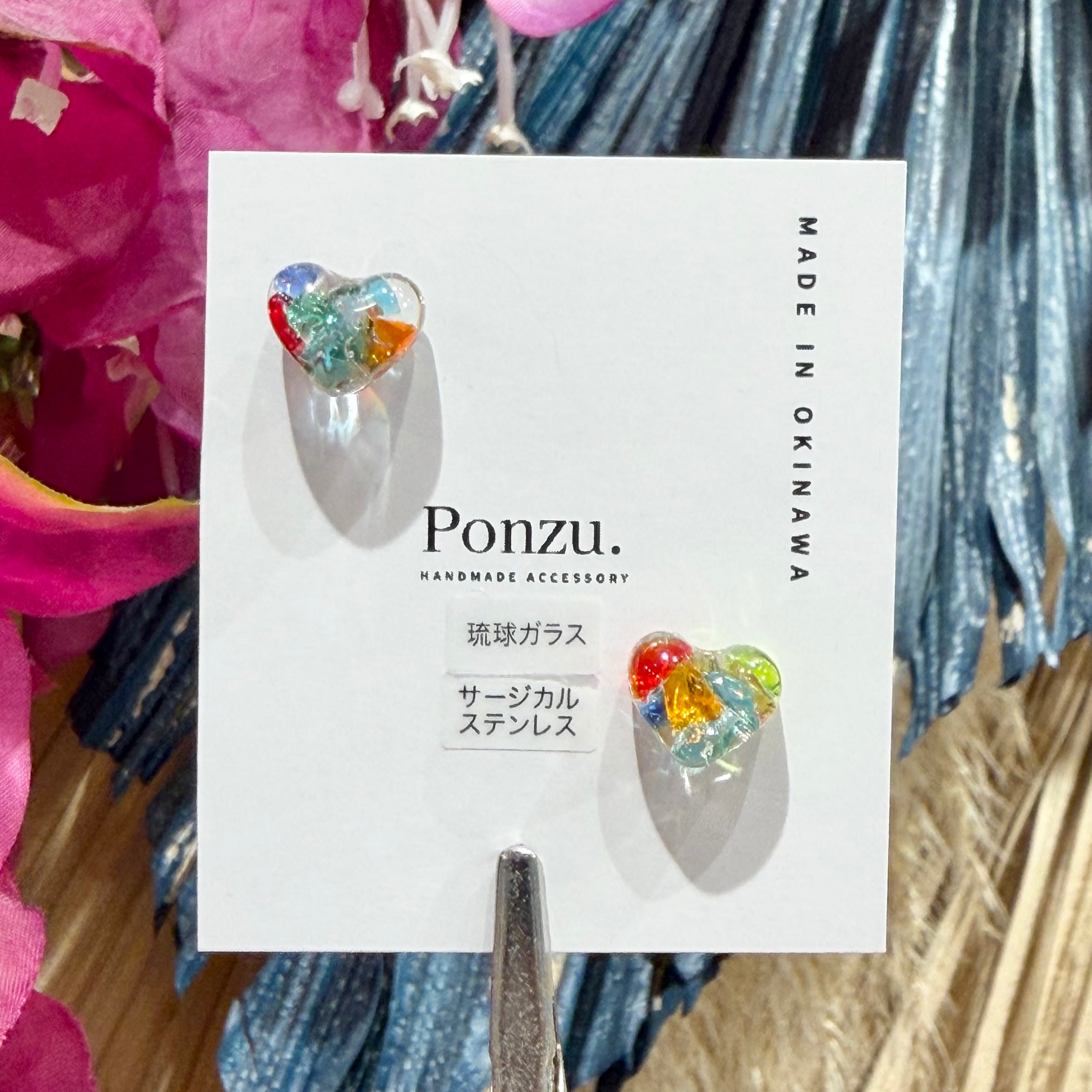 【琉球ガラス使用】ハートピアス 花笠(T-A27-88)④