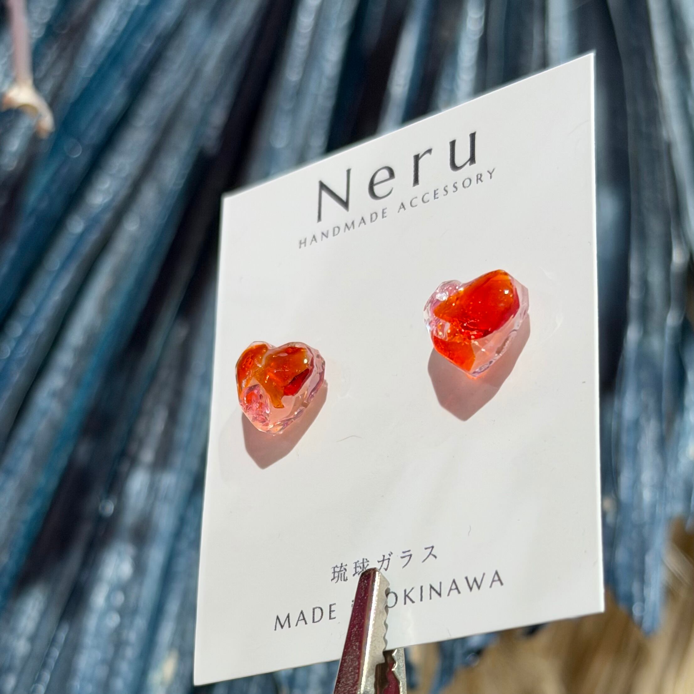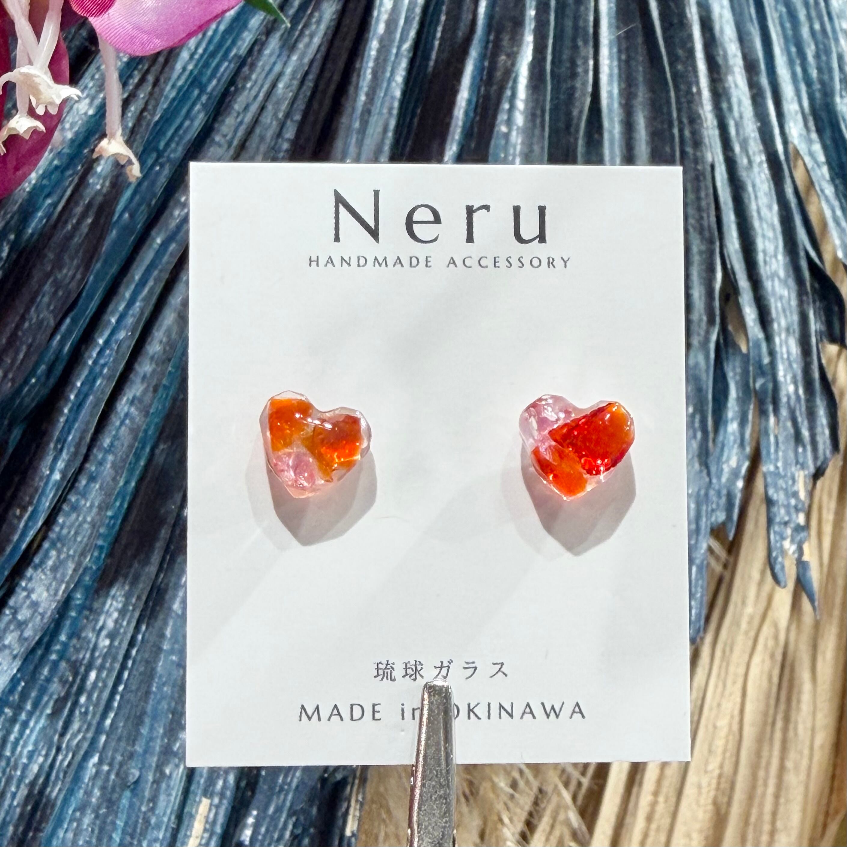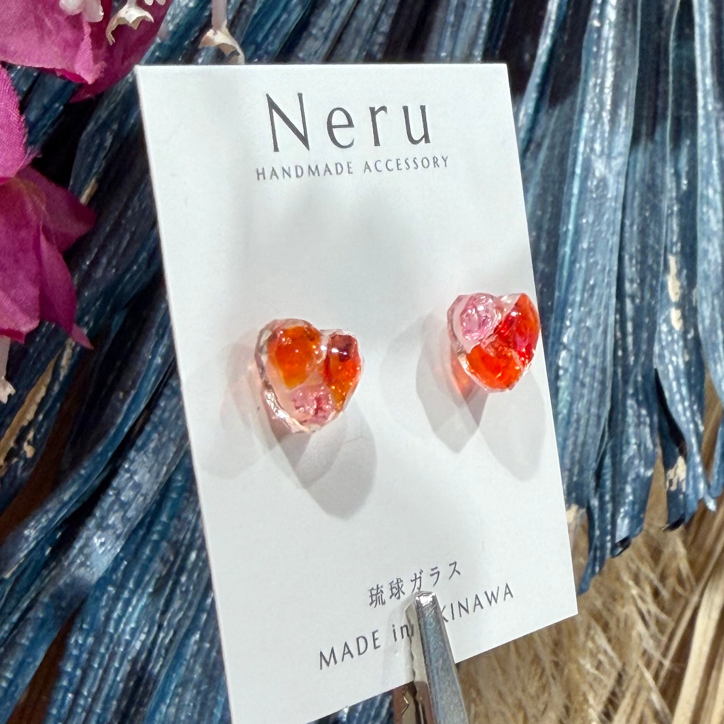 【琉球ガラス使用】ハート ピアス(T-A28-68)①