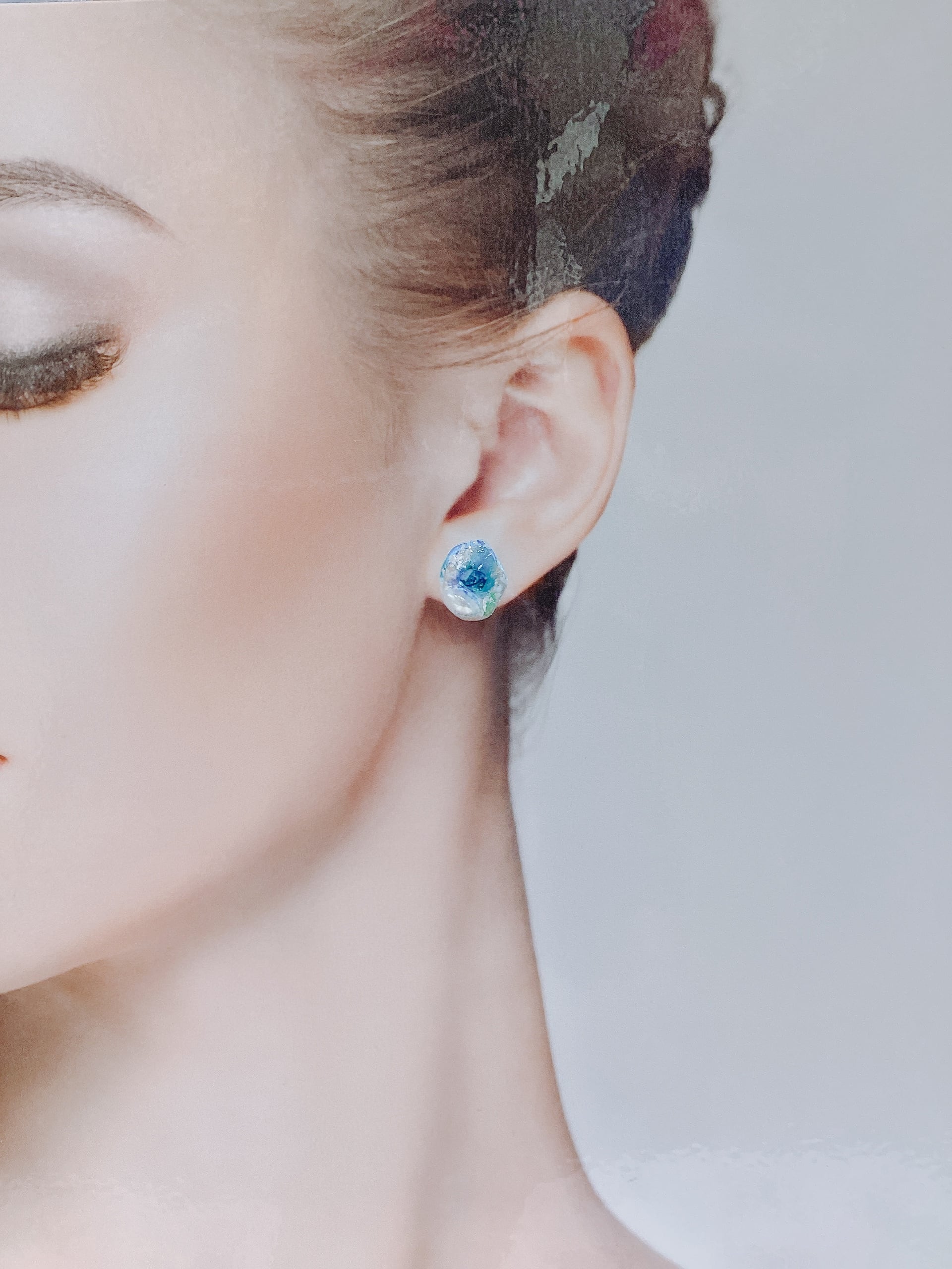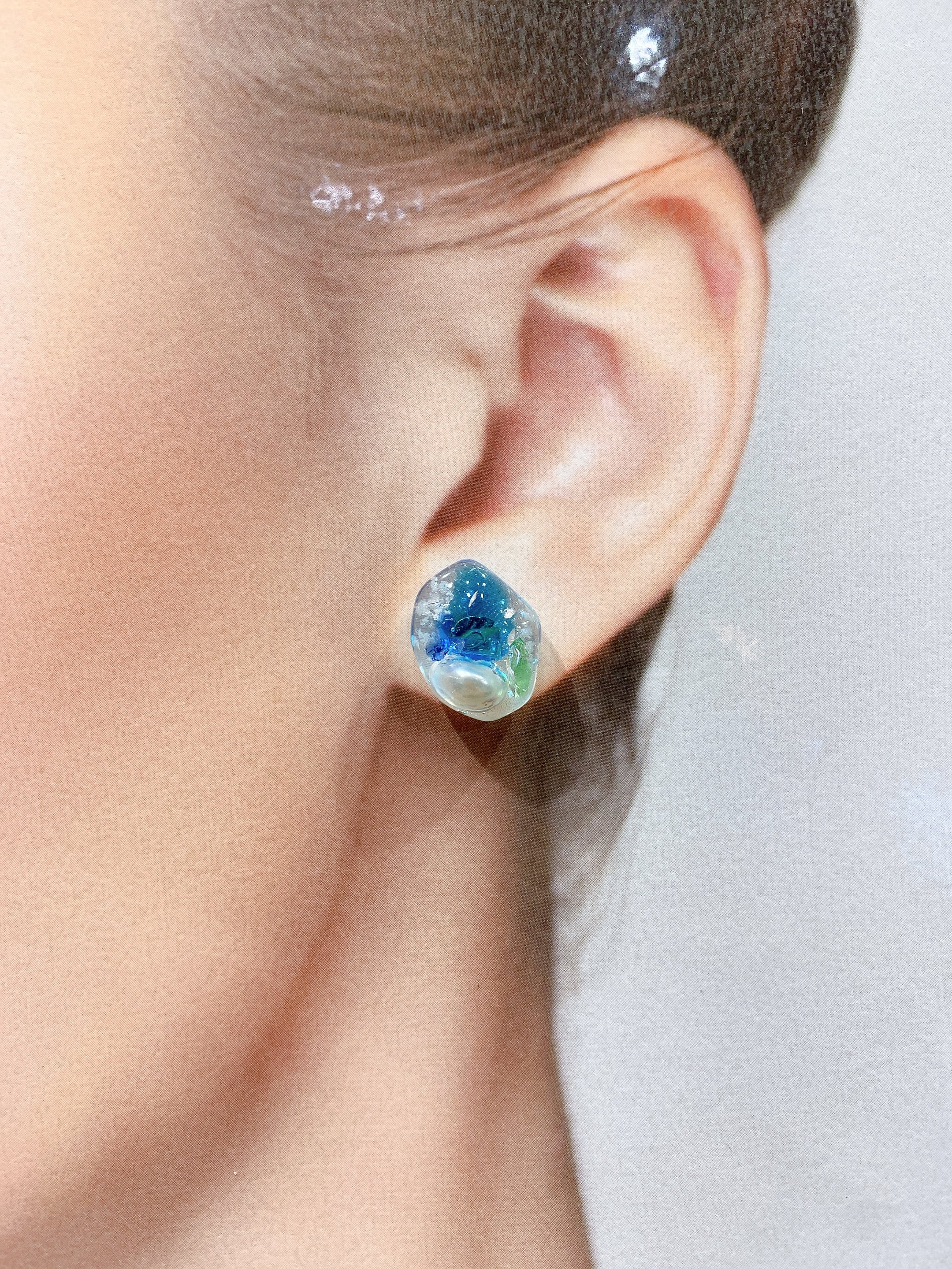 沖縄の海を思わせる美しい琉球ガラスのかけらが使用されたピアスが登場しました!